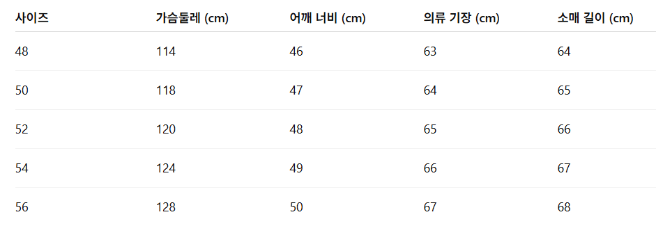 사이즈: 48 / 50 / 52 / 54 / 56