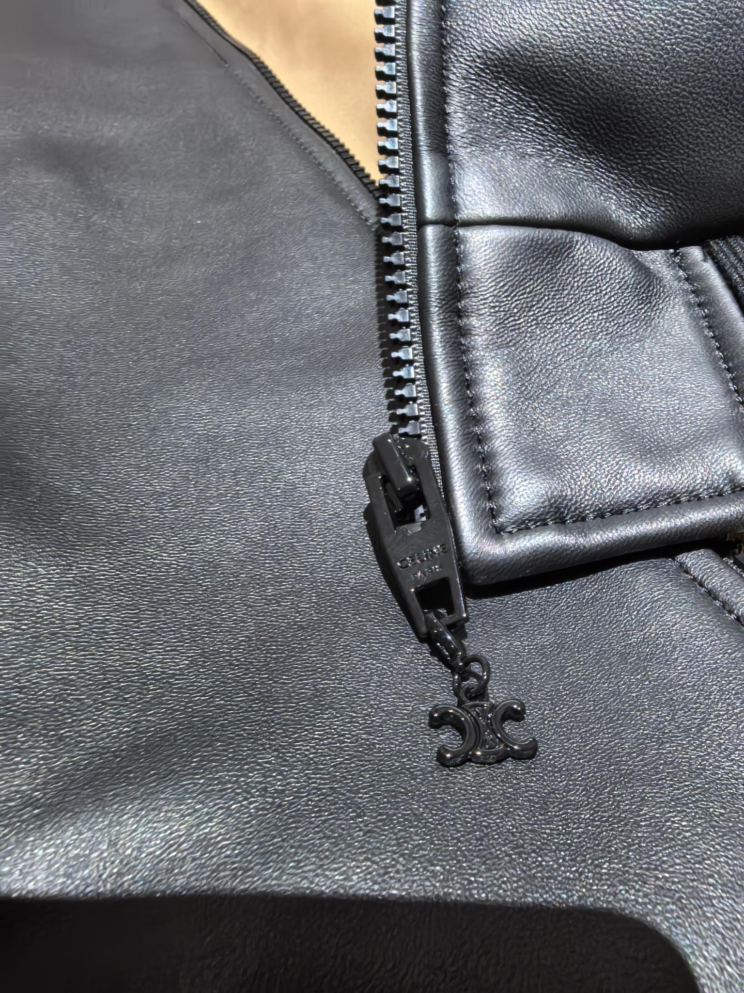 CELINE 2025 봄·여름 남성 컬렉션에서 선보이는 램스킨 테디 재킷. 부드럽고 유연한 프리미엄 램스킨 가죽을 사용해 제작되어 자연스러운 광택과 매끄러운 촉감을 자랑하며, 고급스러운 분위기를 한층 강조한다.