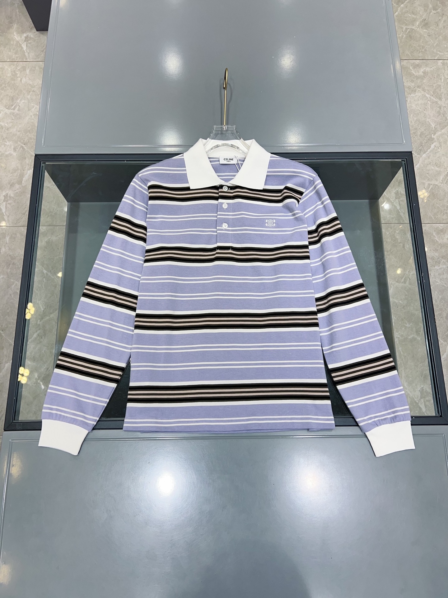 [셀린느] 스트라이프 코튼 폴로 스웨터 RY0HV886Z.GBT9