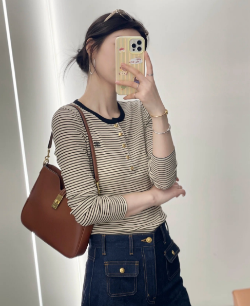 [셀린느] 스트라이프 트리오페 티셔츠 RX03H0243