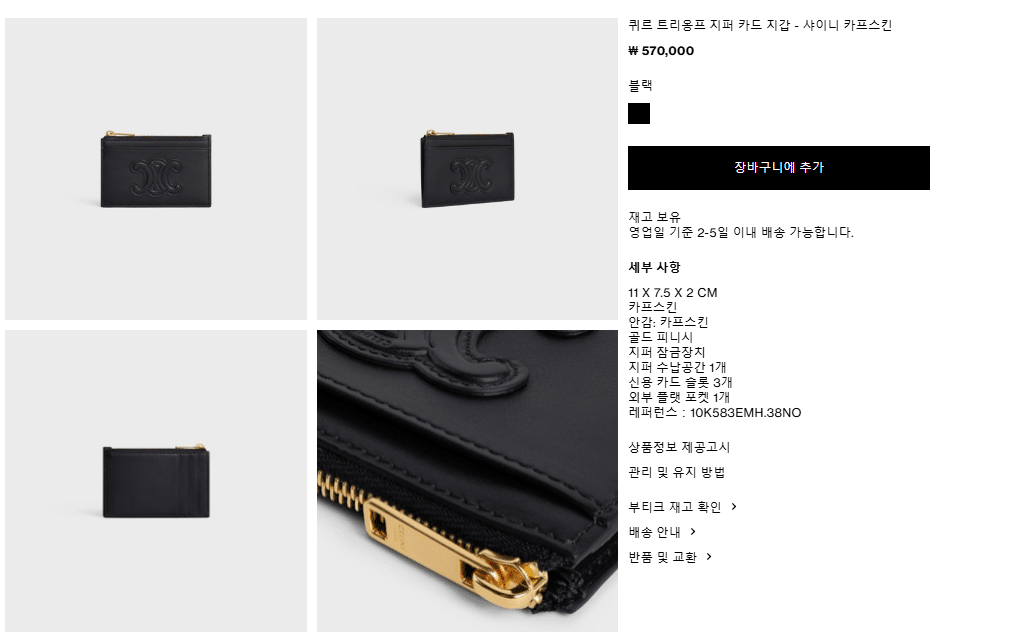 “[셀린느] 퀴르 트리옹프 지퍼 카드 지갑 – 샤이니 카프스킨/블랙 10K583EMH.38NO”의 첫 상품평을 남겨 주세요