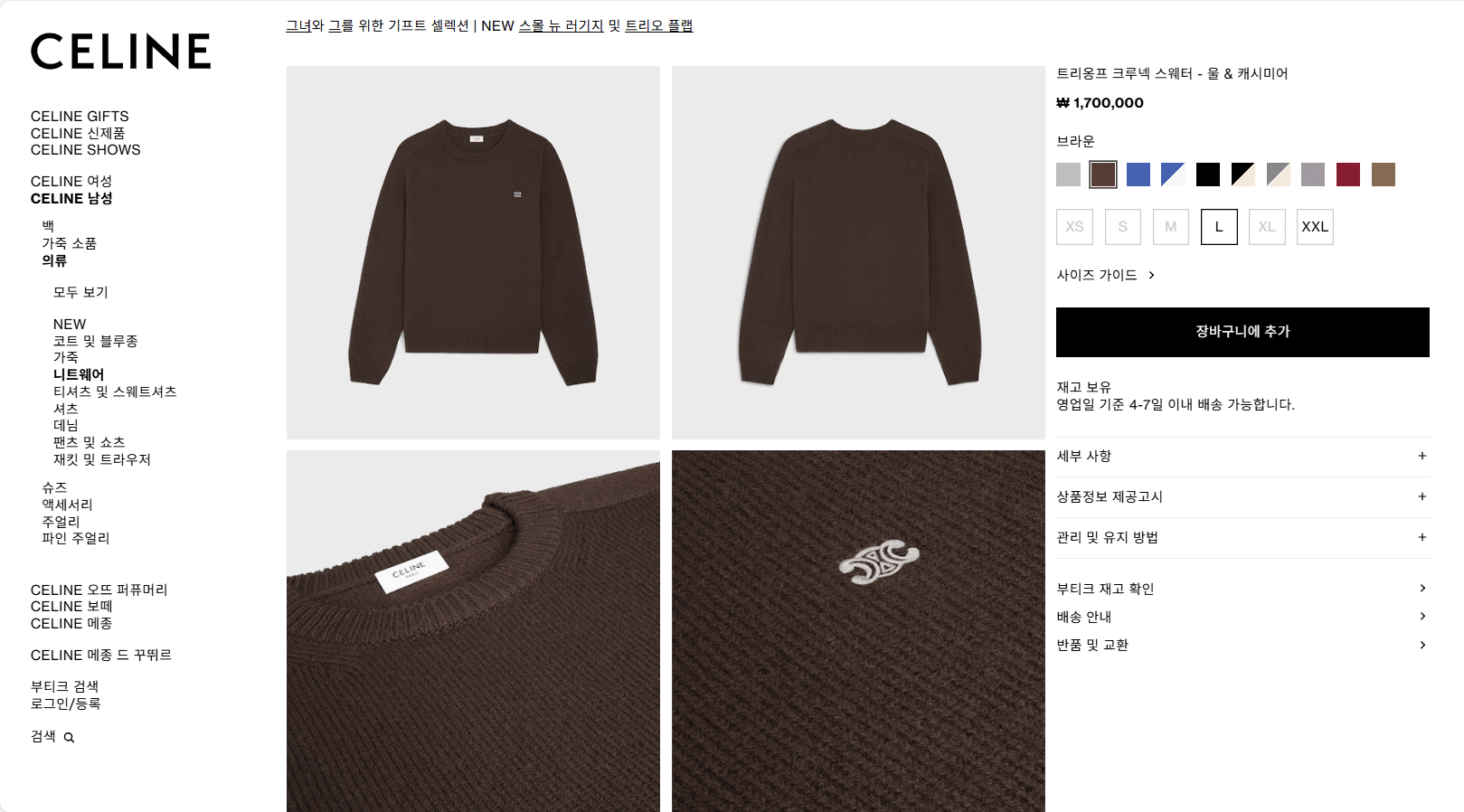 “[셀린느] 트리옹프 크루넥 스웨터 2AC85048T”의 첫 상품평을 남겨 주세요 응답 취소