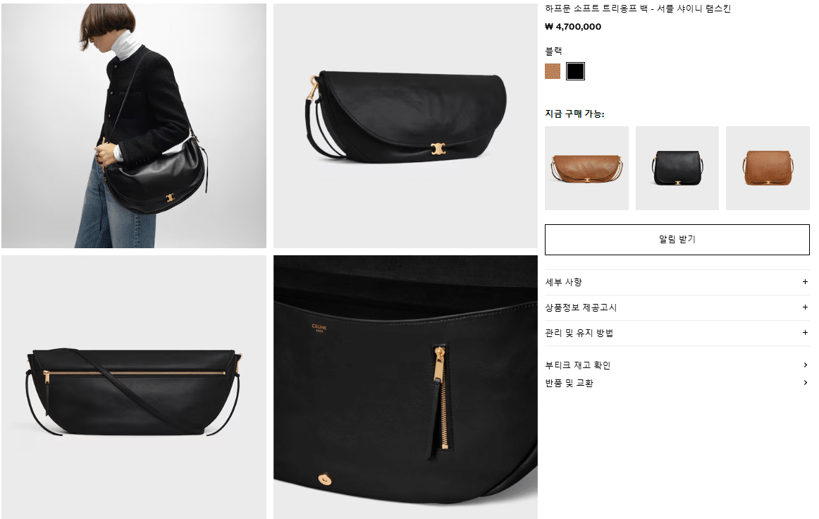 “[셀린느] 하프문 소프트 트리옹프 백 – 서플 샤이니 램스킨 124142T88”의 첫 상품평을 남겨 주세요 응답 취소