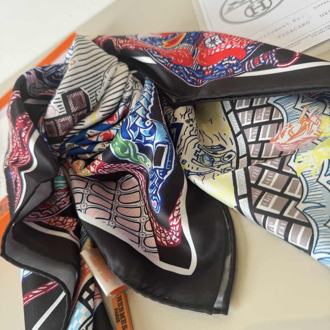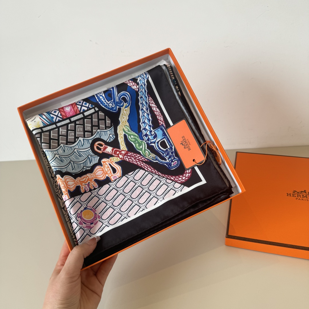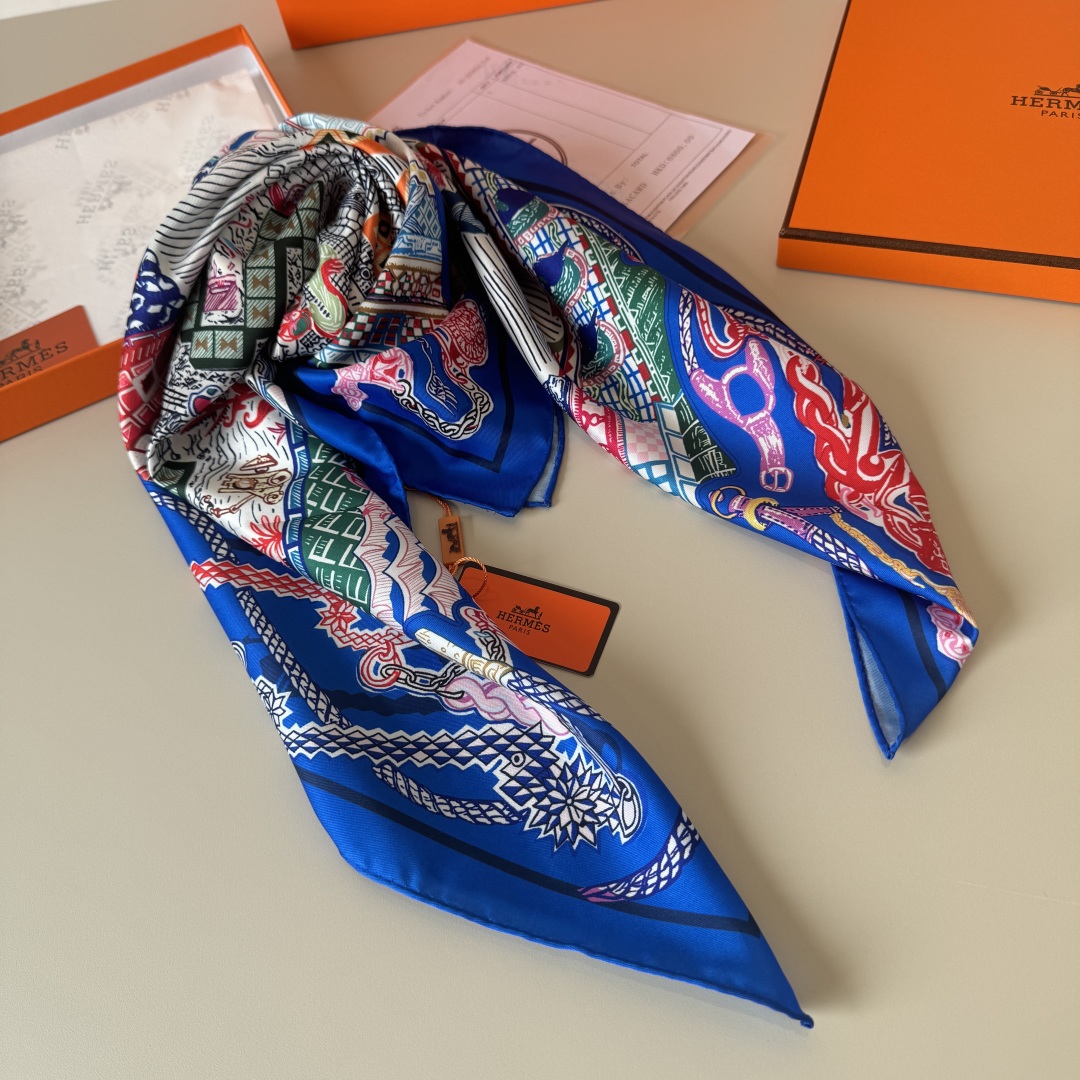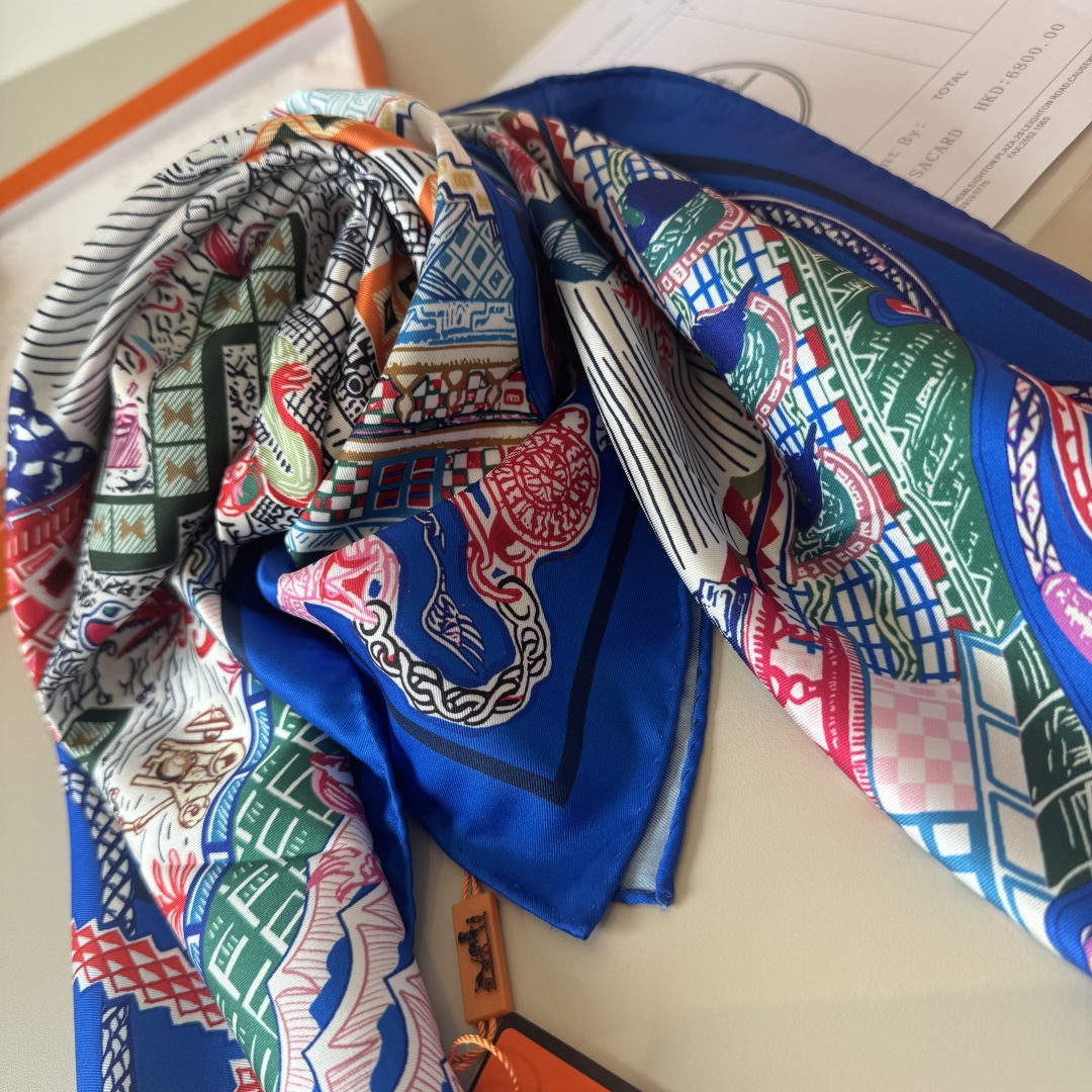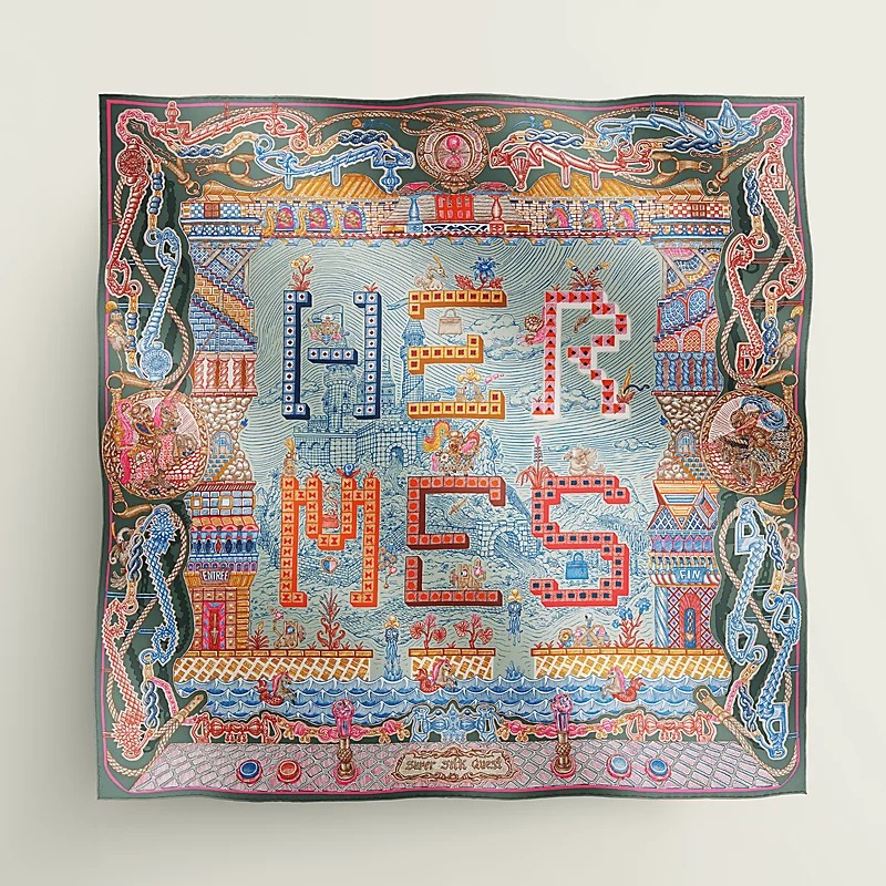 [에르메스] 슈퍼 실크 퀘스트 스카프 90 H004011S (3 COLORS)
