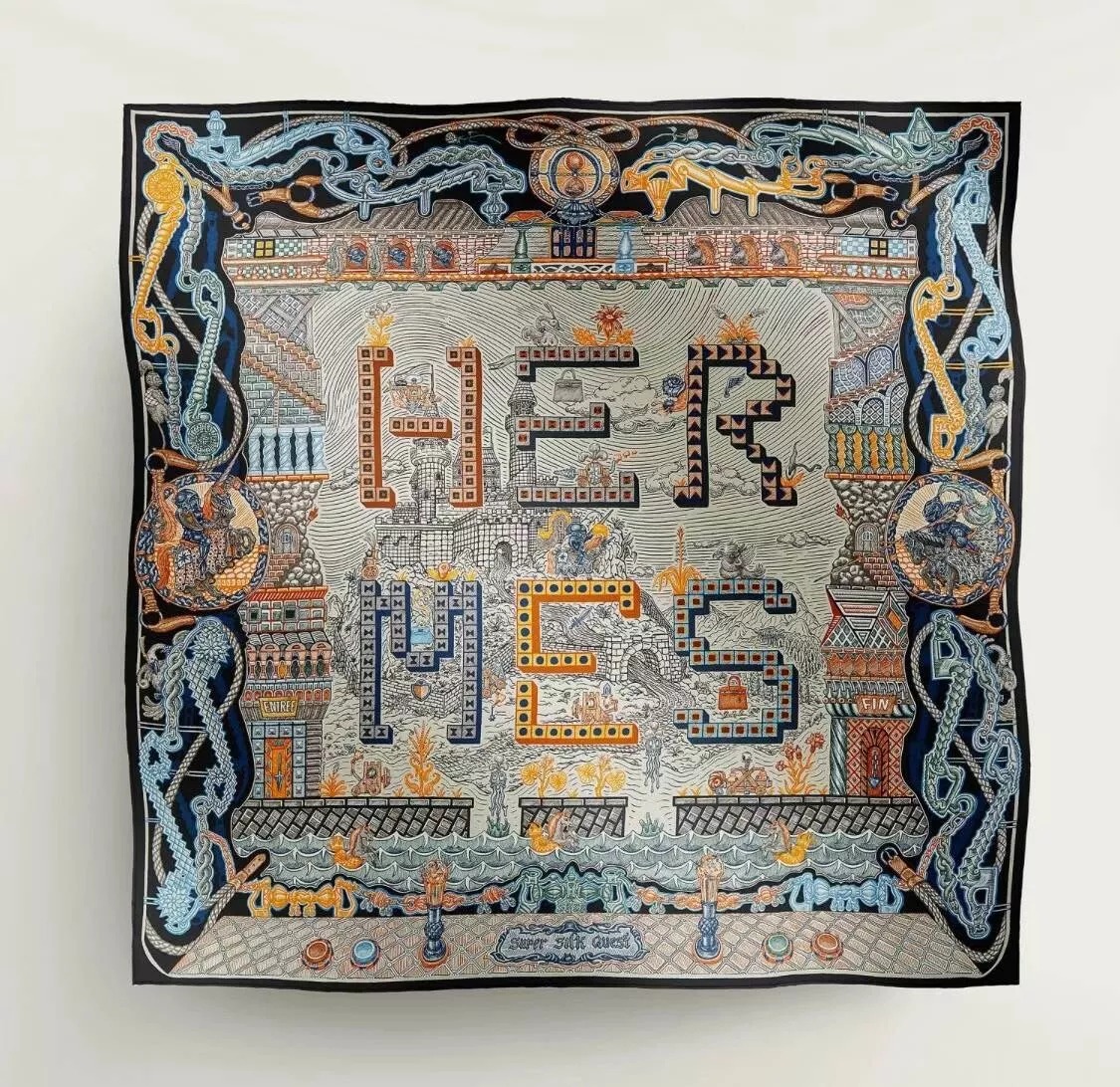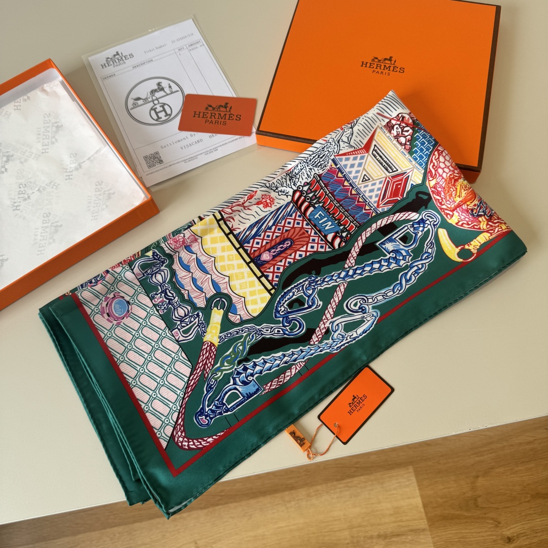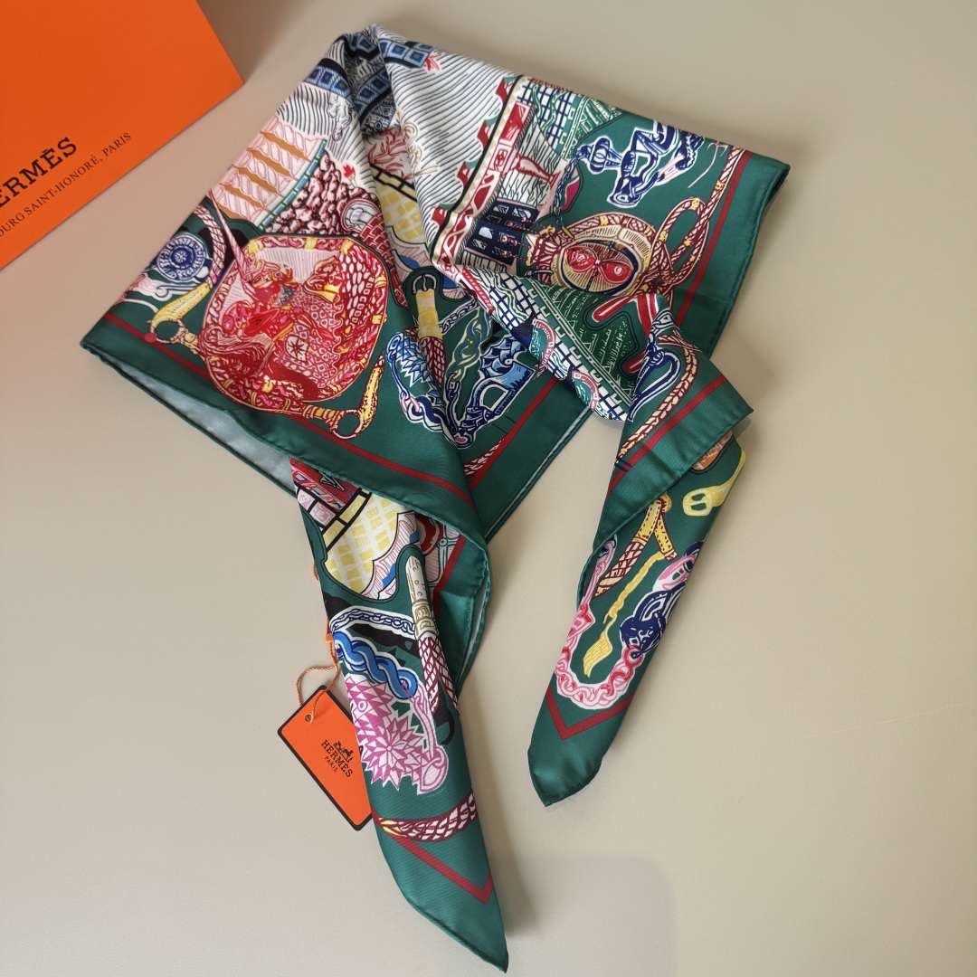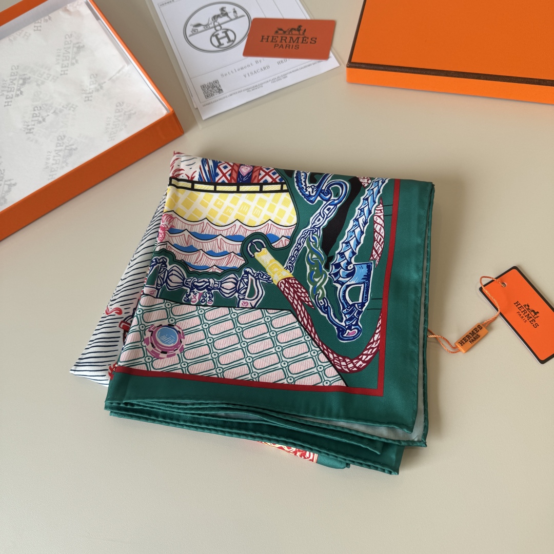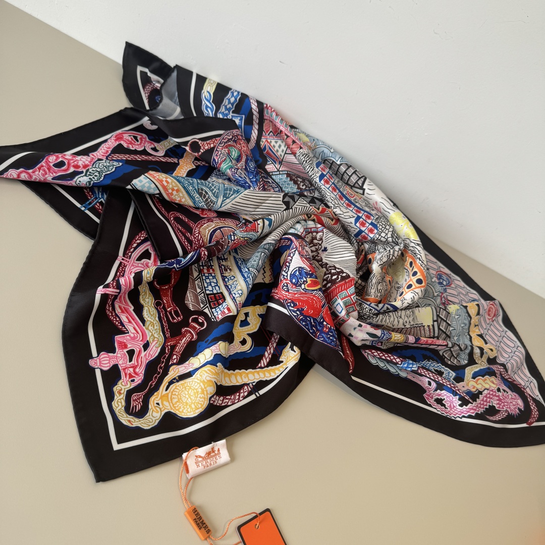 [에르메스] 슈퍼 실크 퀘스트 스카프 90 H004011S (3 COLORS)