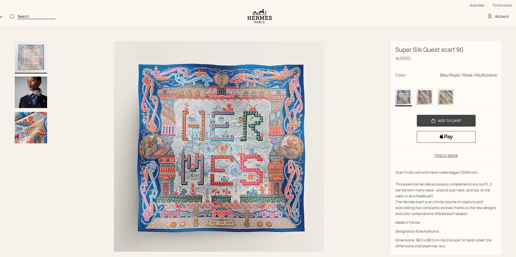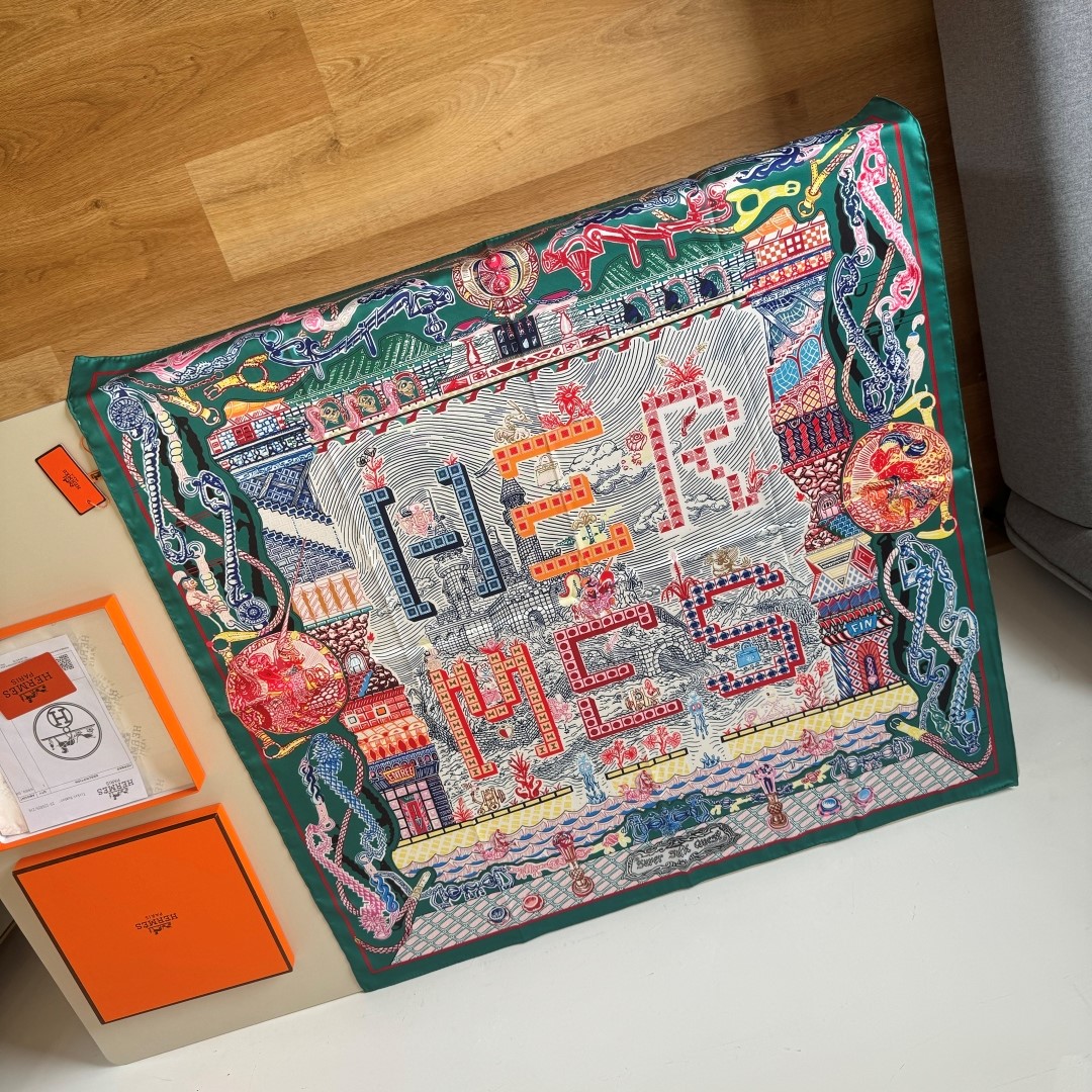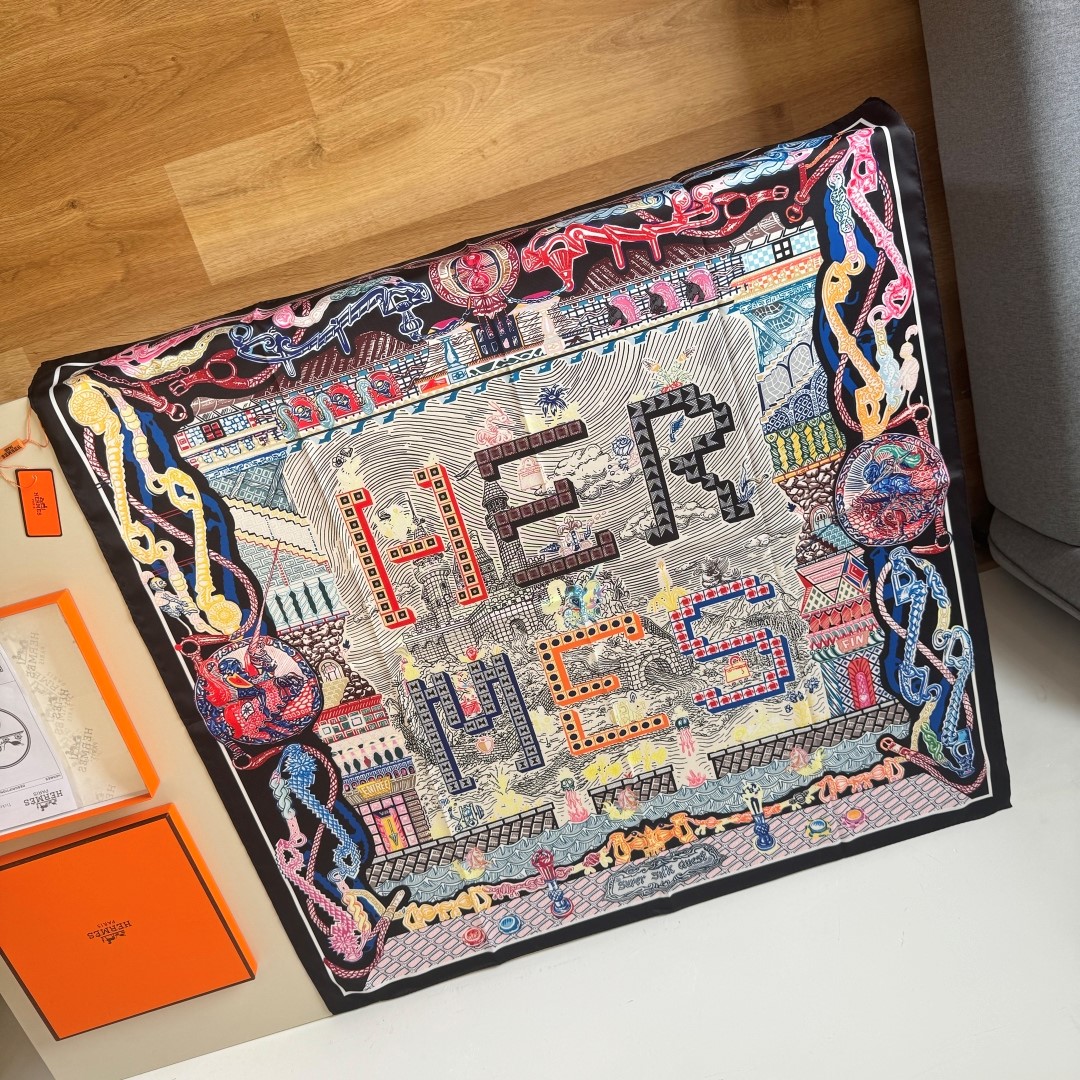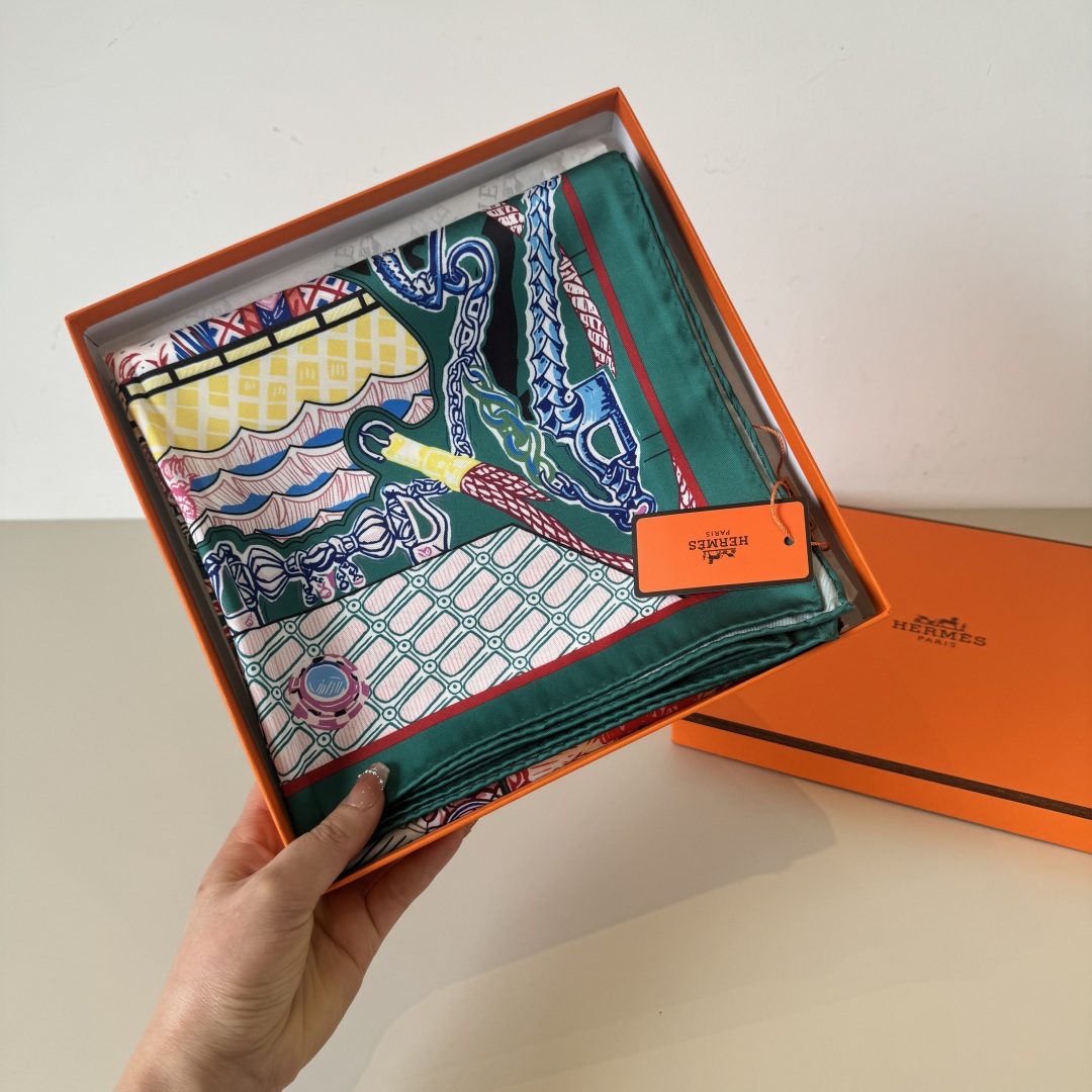 [에르메스] 슈퍼 실크 퀘스트 스카프 90 H004011S (3 COLORS)