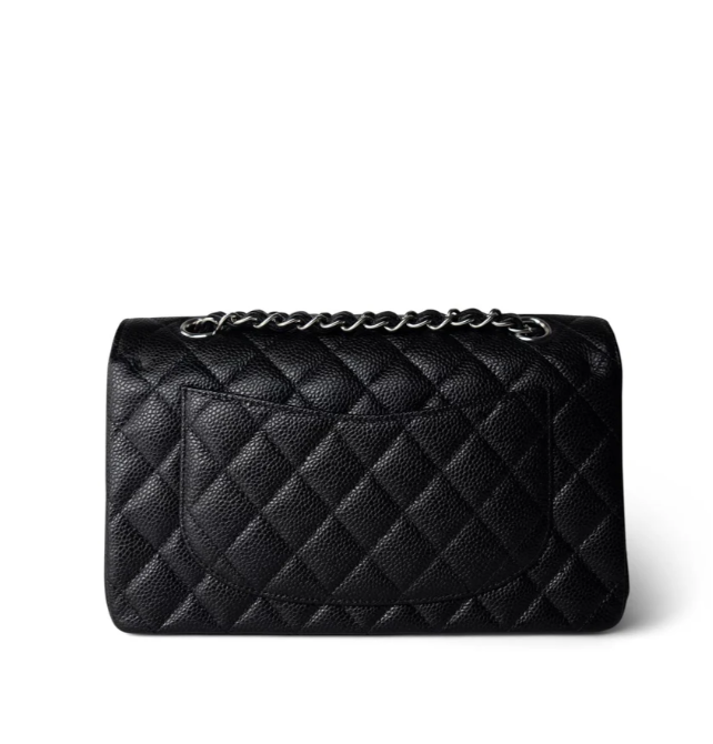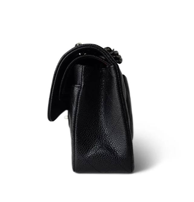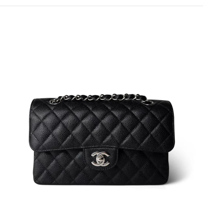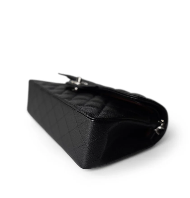 [샤넬] 스몰 클래식 플랩백 캐비어 카프스킨 은장 A01113