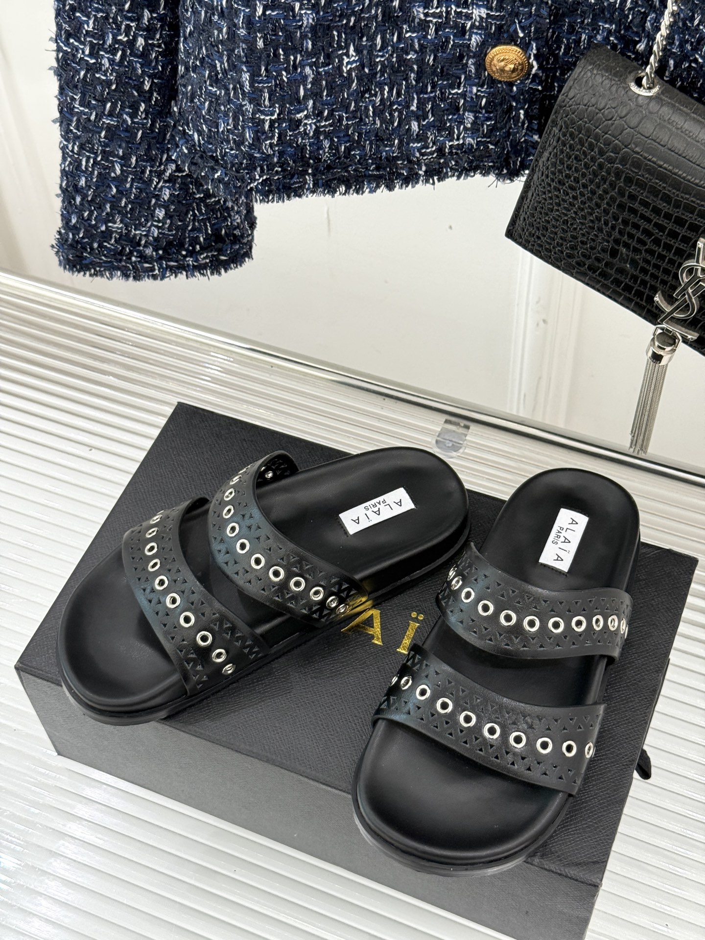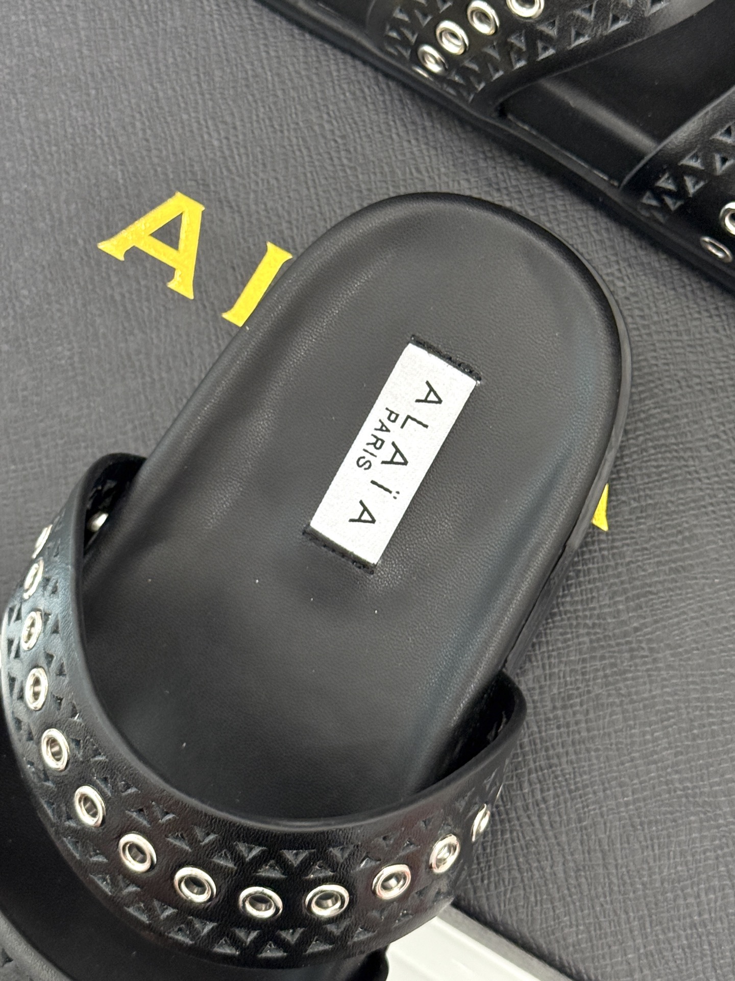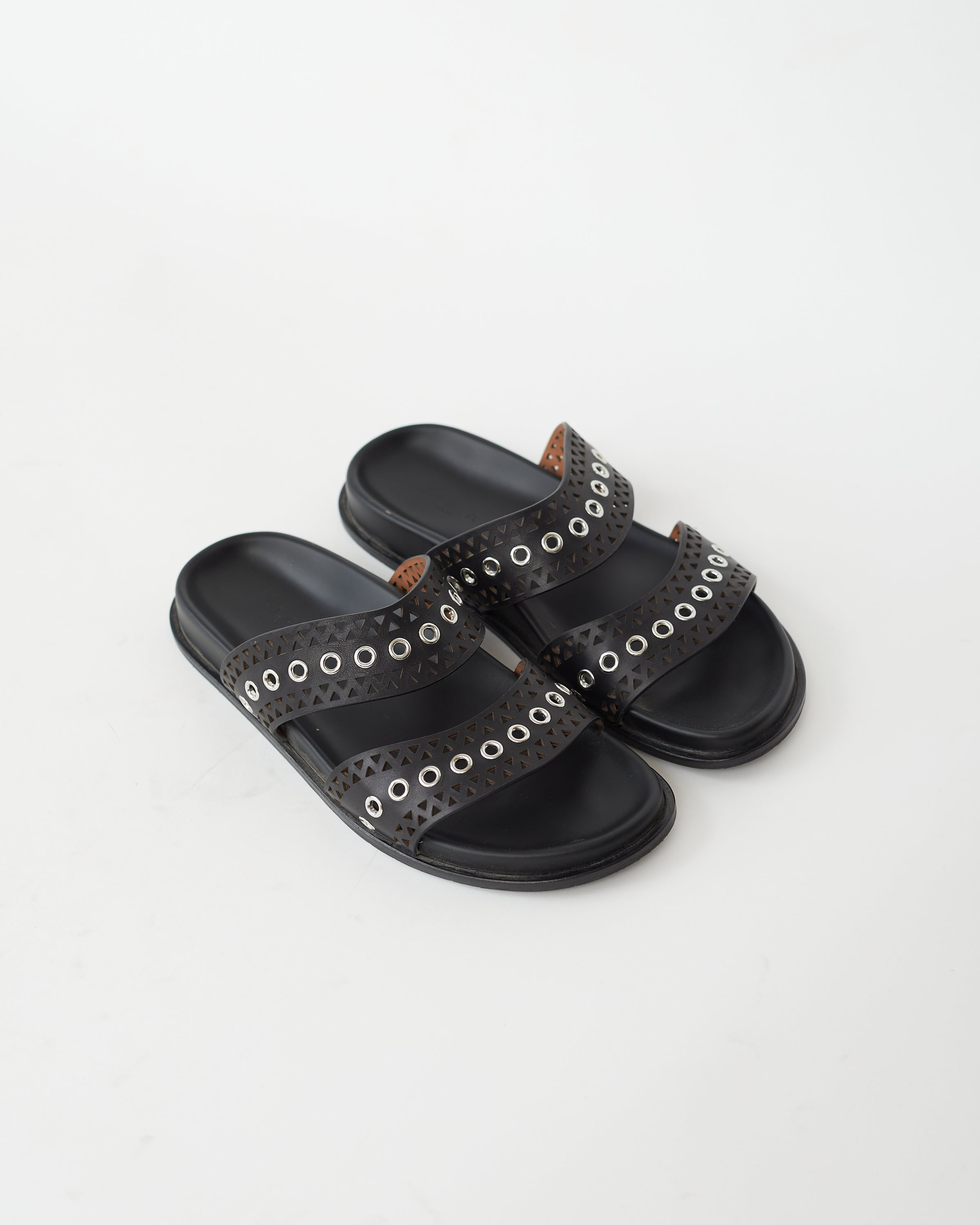 [알라이아] 아일렛 스트랩 플랫 뮬 AA3M022