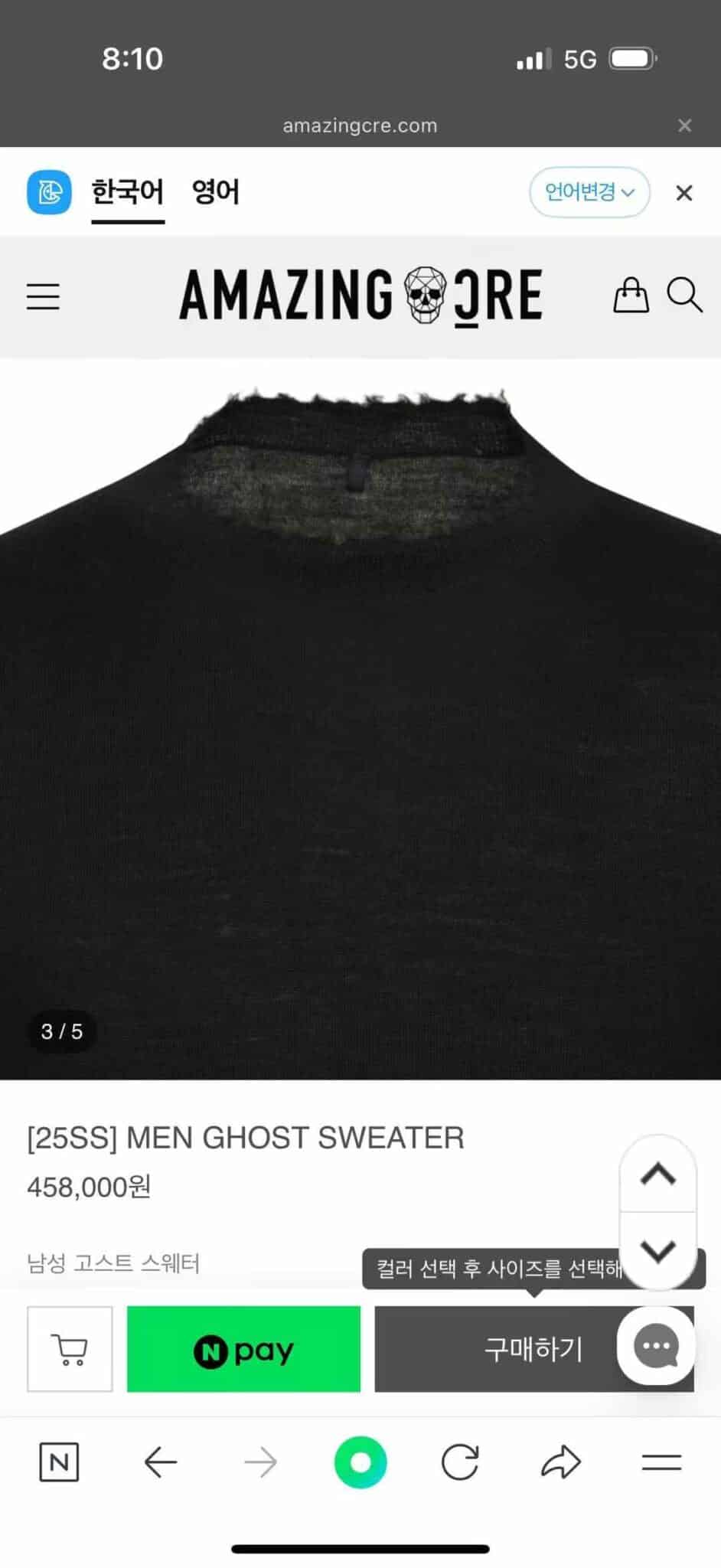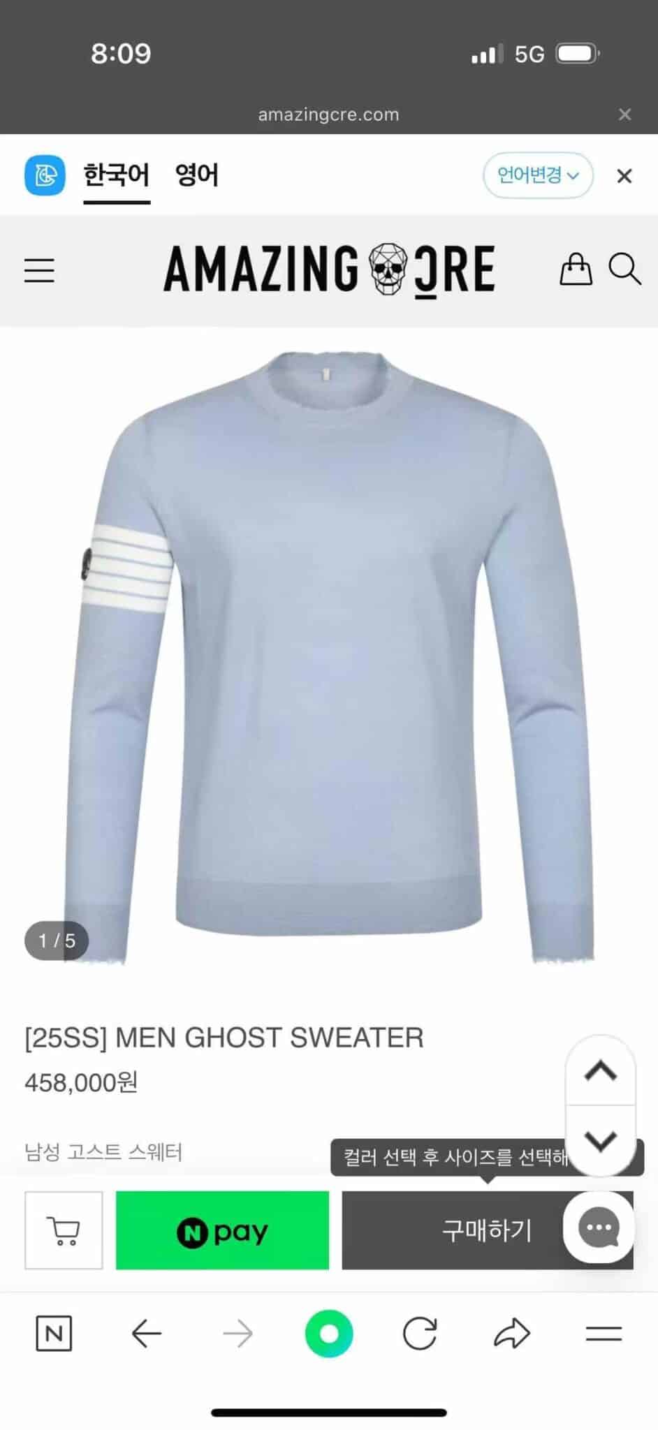 “[어메이징 크리] 남성 고스트 스웨터 A61MSW51 (2 COLOR)”의 첫 상품평을 남겨 주세요