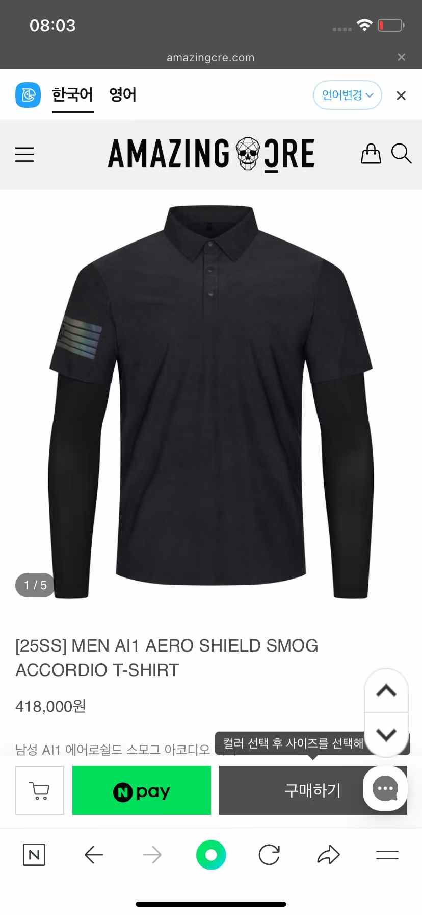 “[어메이징 크리] 남성 AI1 에어로쉴드 스모그 아코디오 티셔츠 A61MTS02 (3 COLOR)”의 첫 상품평을 남겨 주세요 응답 취소