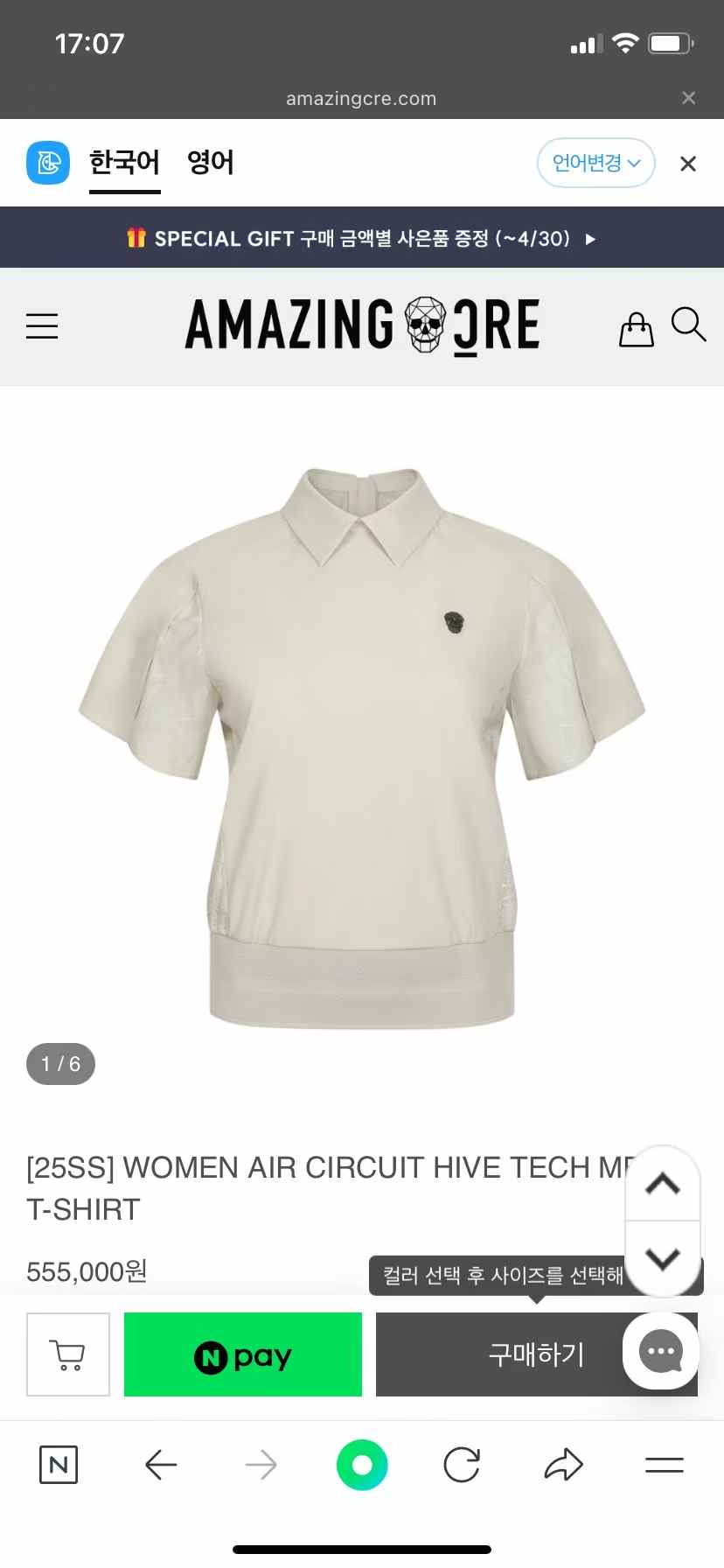 “[어메이징 크리] 에어서킷 하이브 테크메쉬 티셔츠 A62FTS17”의 첫 상품평을 남겨 주세요