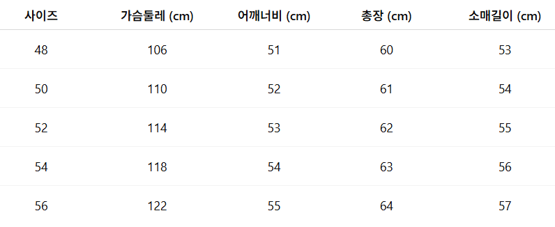 사이즈: 48 / 50 / 52 / 54 / 56