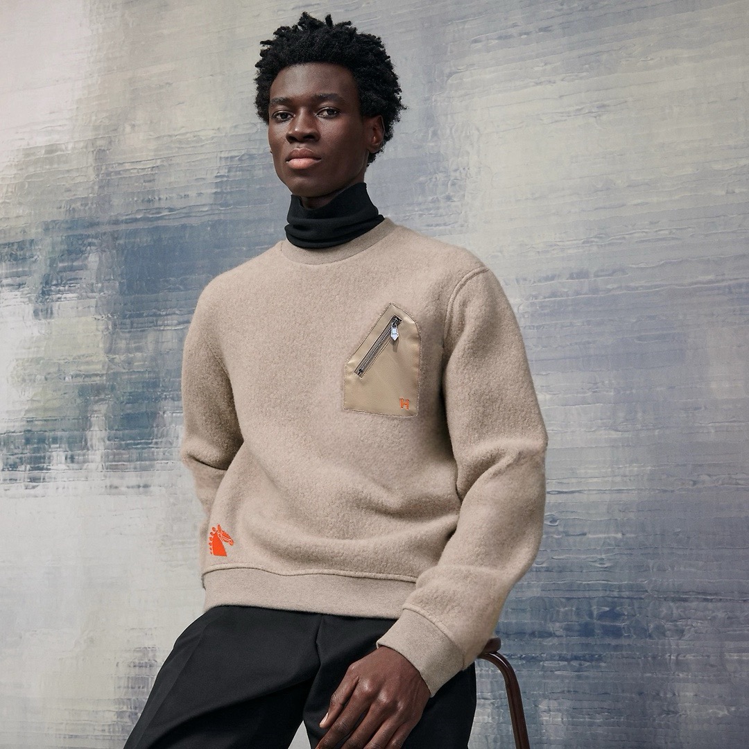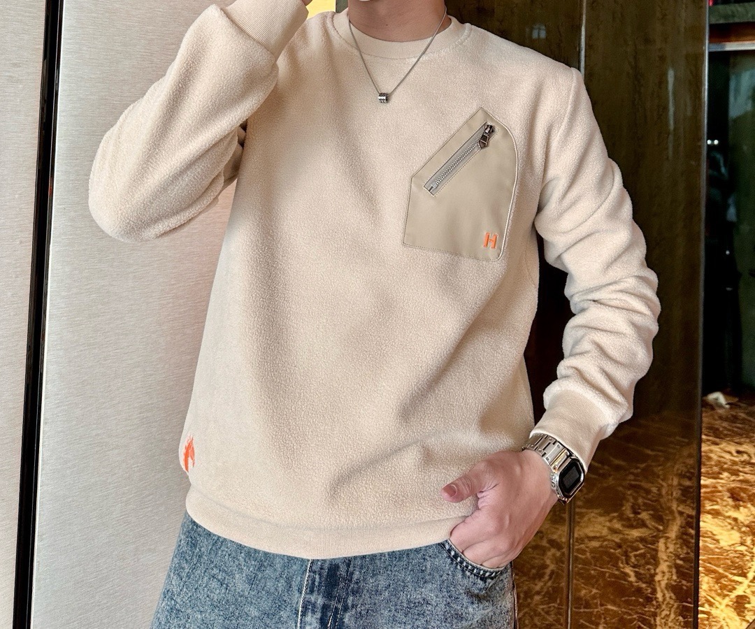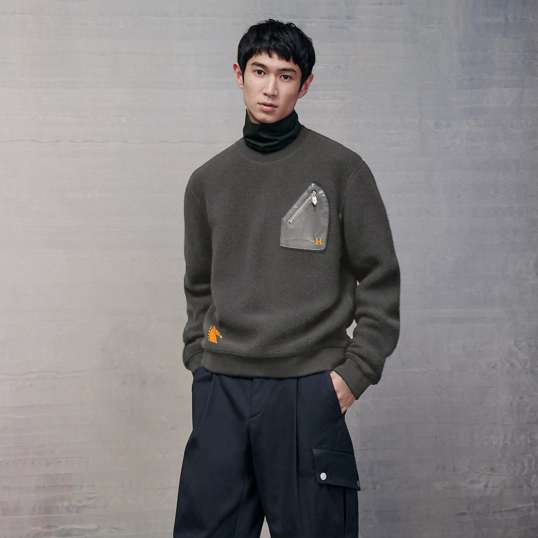 [에르메스] 레더 디테일 바시티 크루넥 셔츠 (3 COLORS)