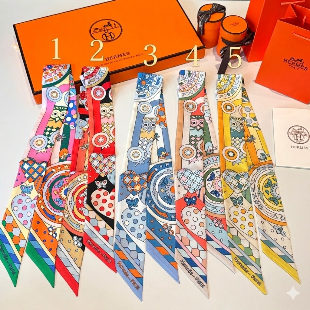 [에르메스] 클래식 모티브 100% 천연 실크 트윌리 (Twilly) (5 COLOR)