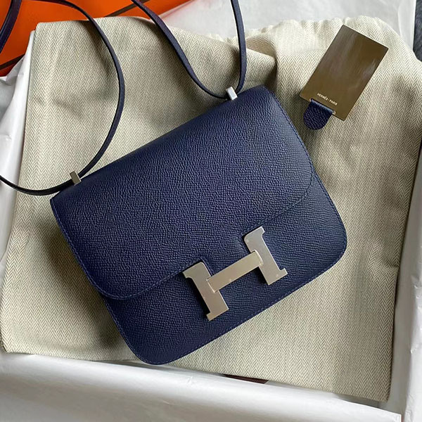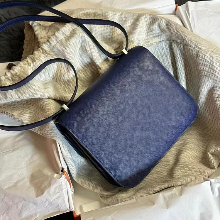 [에르메스] 콘스탄스 미니 19cm CC73 Blue Saphir Epsom송아지가죽 숄더백 은장