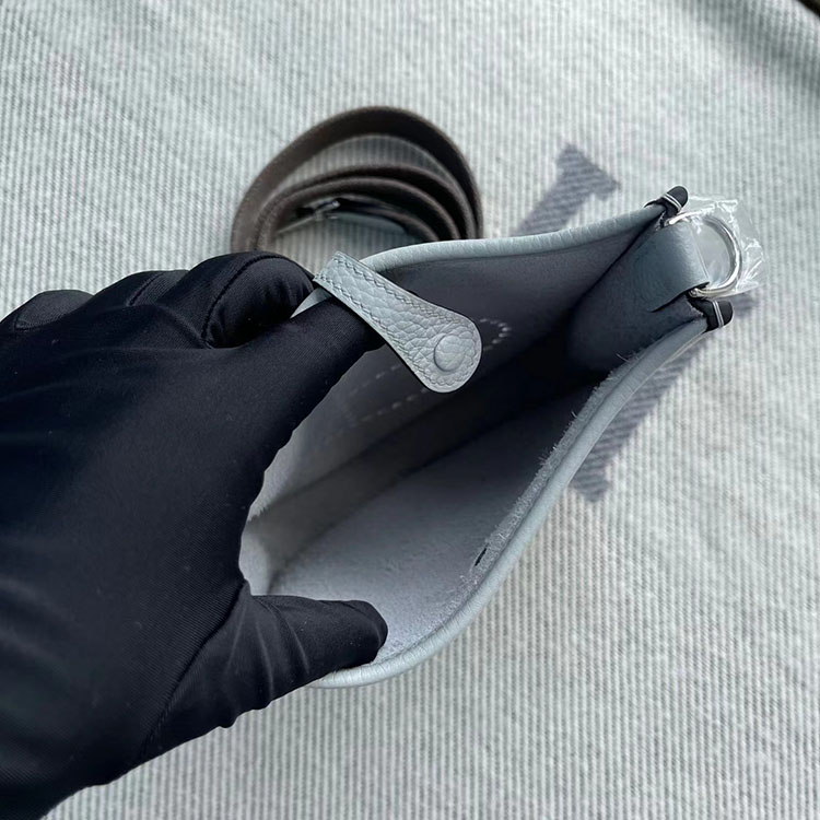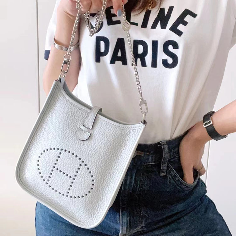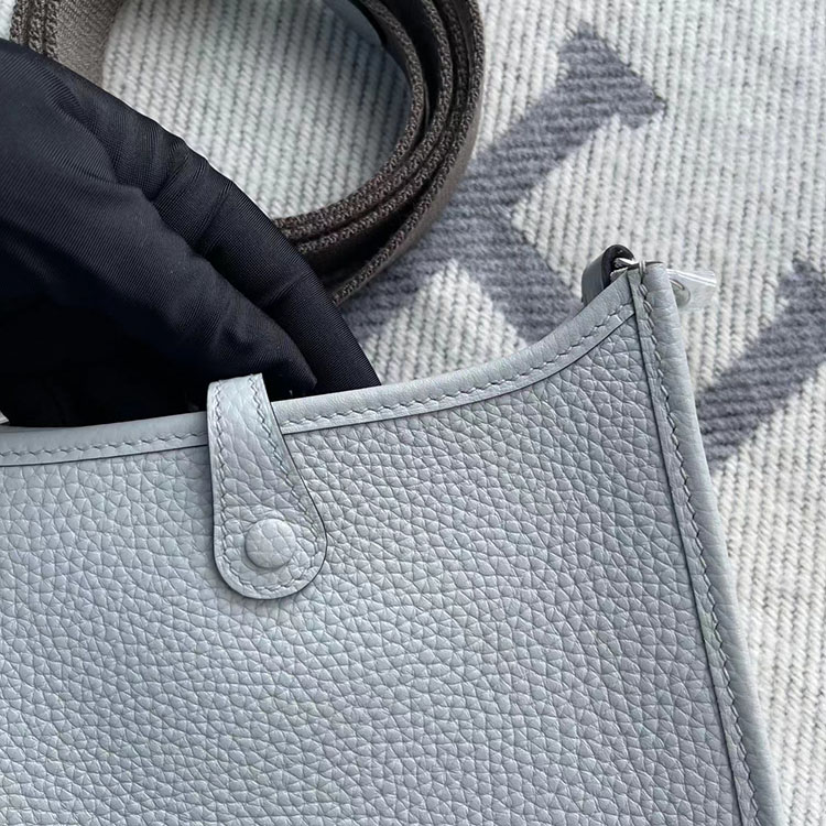 [에르메스] Evelyne 에블린 미니 16cm 08 Bleu Pale Clemence 송아지가죽 숄더백 은장/금장