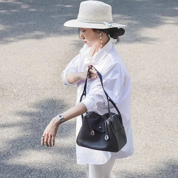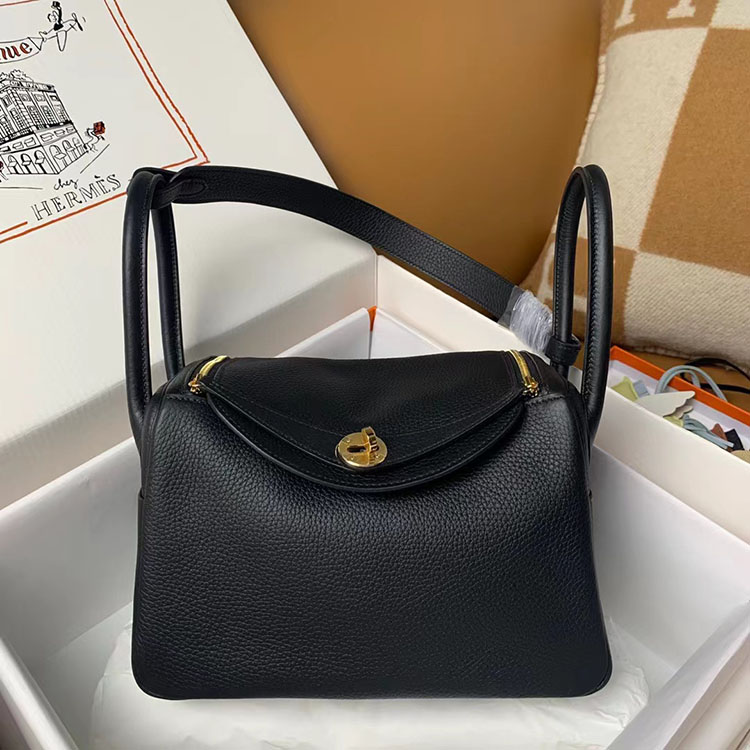 [에르메스] 린디 26(30cm)CK89 Noir Taurillon Clemence 송아지가죽 은장 금장 숄더백