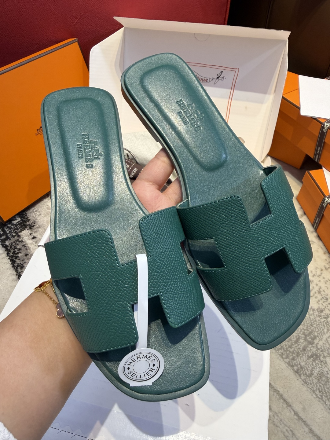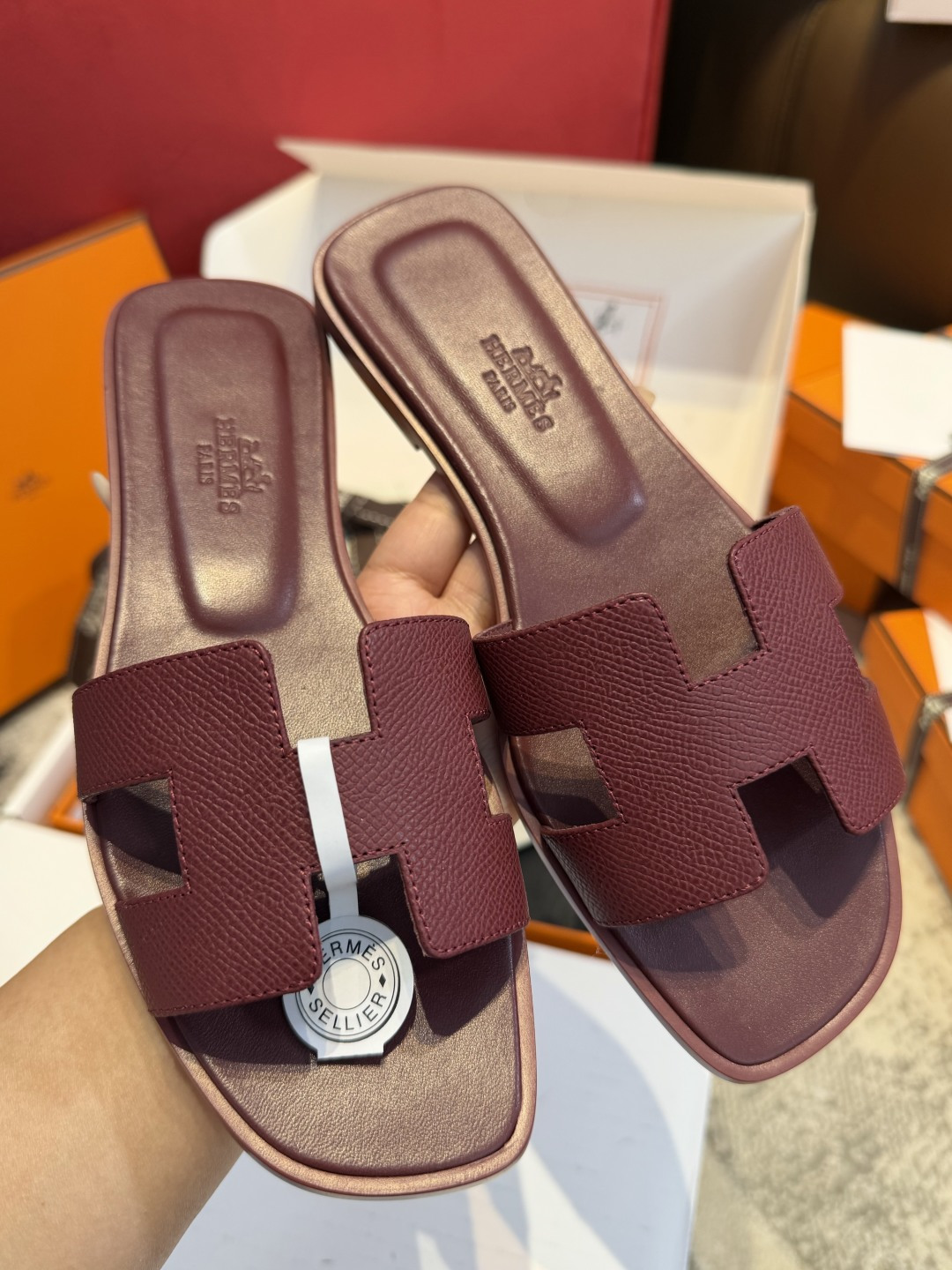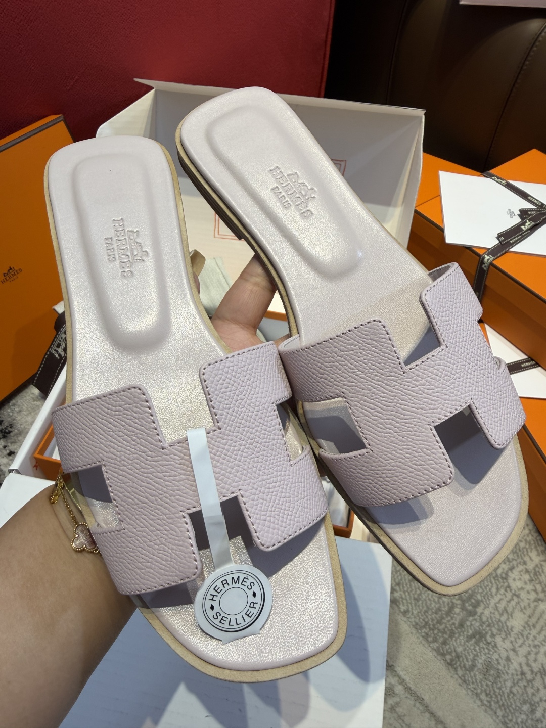 에르메스 오란 샌들 드디어 데려왔어요! 일반 가죽 모델이랑 고민하다가 이 브레이디드 디테일이 훨씬 유니크하고 고급스러워 보여서 선택했는데 실물 보고 감동했습니다. 자칫 밋밋할 수 있는 슬리퍼 디자인인데 꼬임 디테일 덕분에 우아한 느낌이 확 살아요. 가죽이 정말 부드러워서 처음 신었을 때도 발등 까짐 없이 편안했고, 어떤 착장에도 찰떡같이 어울리네요. 유행 타지 않는 클래식한 스타일이라 평생 소장 가치 충분한 것 같아요. 배송 상태도 완벽했고 정말 만족스러운 쇼핑이었습니다