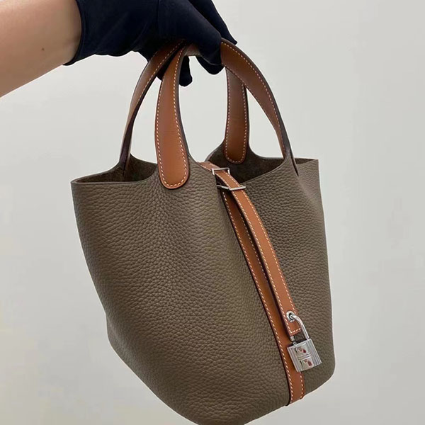 [에르메스] 피코탄 Picotin 18cm TC+Swift 금장 은장 송아지가죽 핸드백