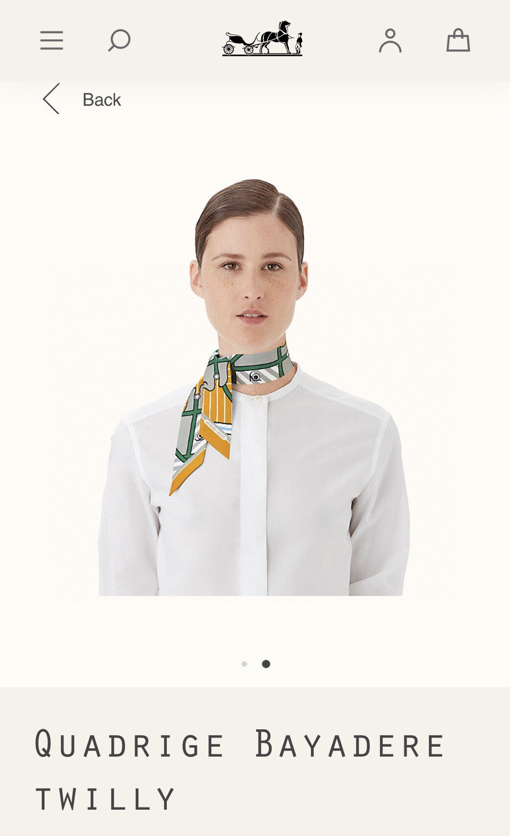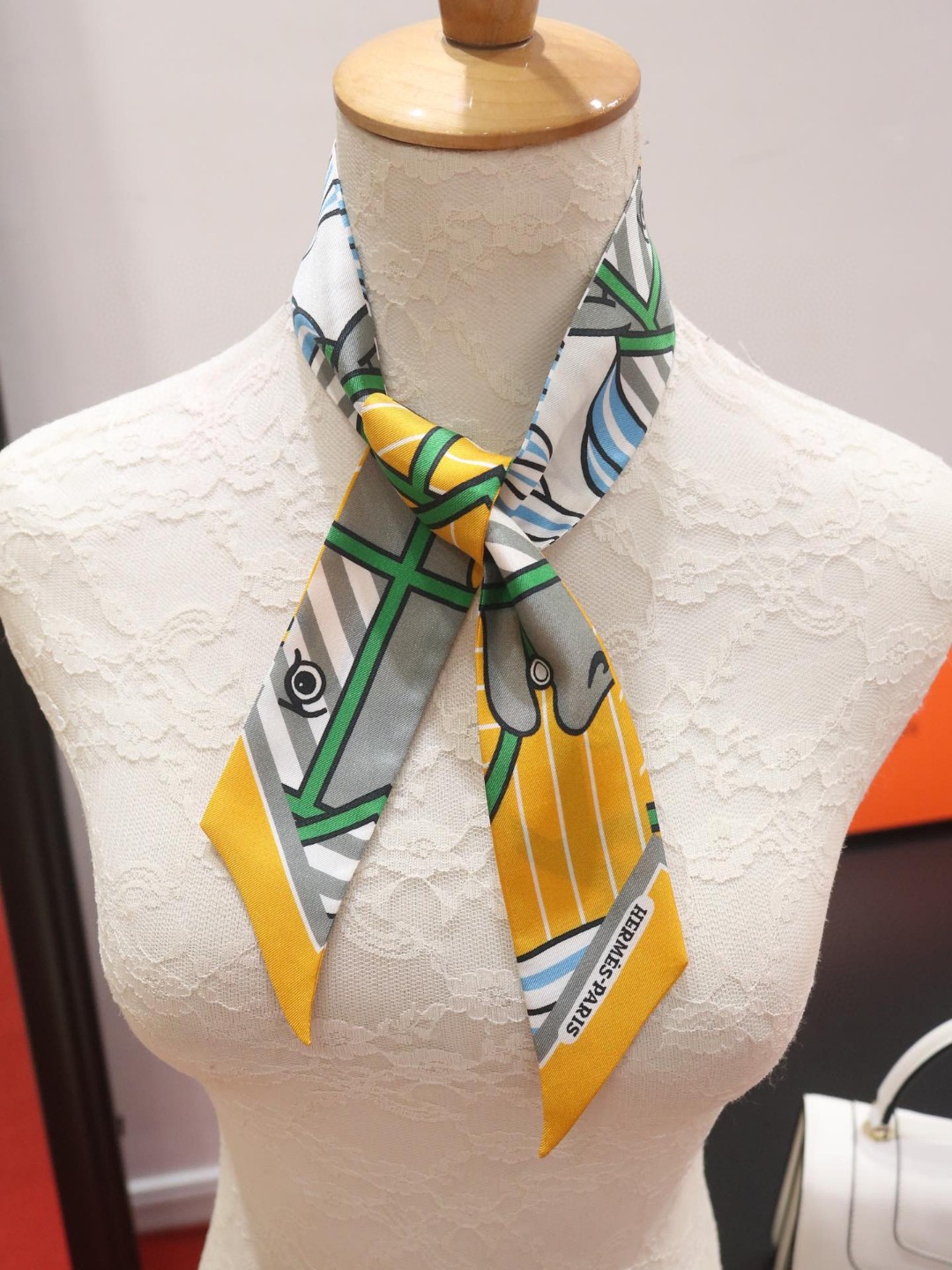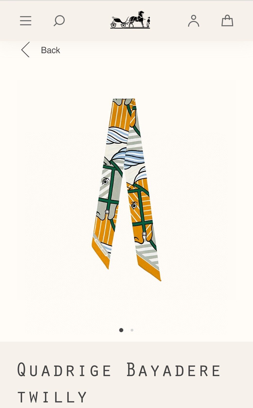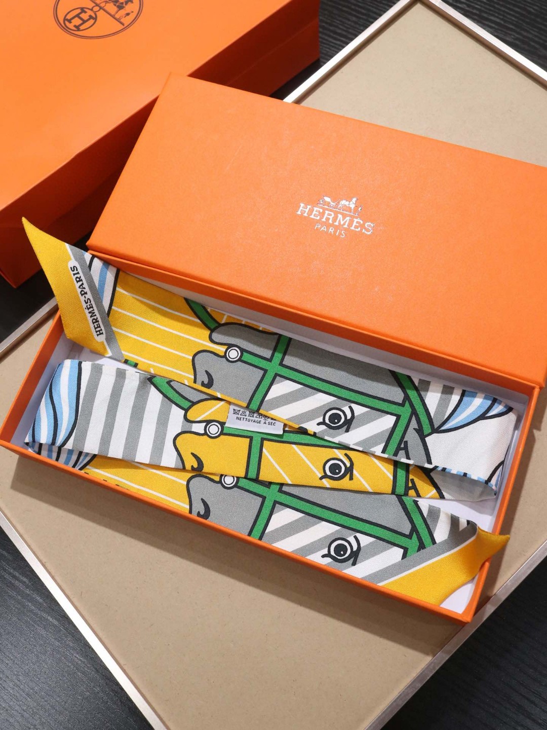 [에르메스] Quadrige Bayadere Twilly 스카프 Ocre Gris Vert