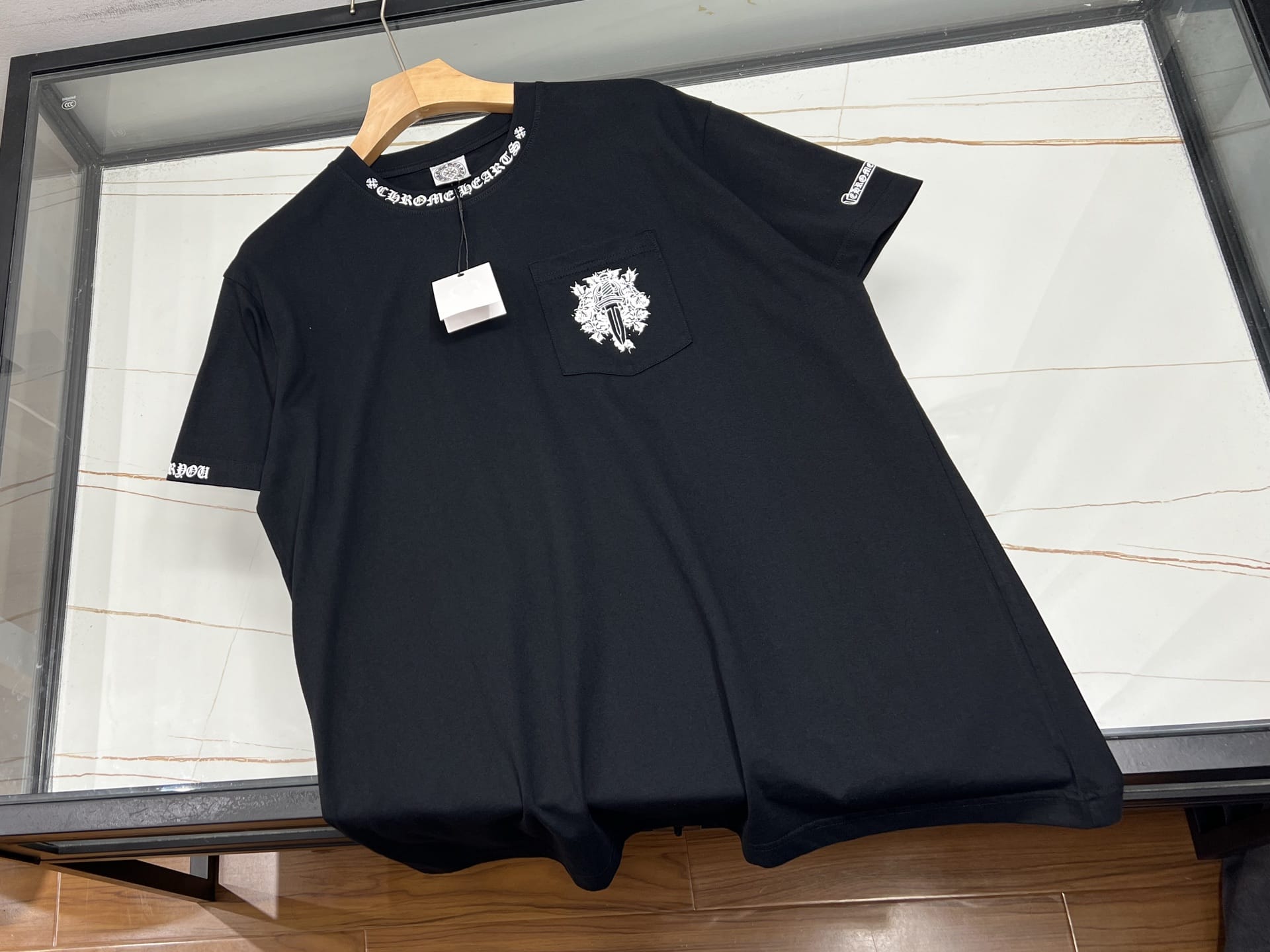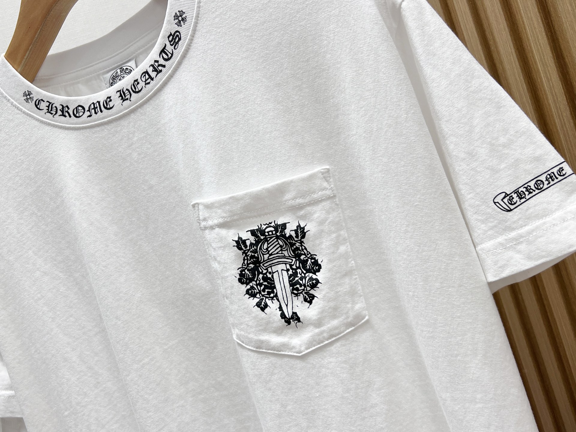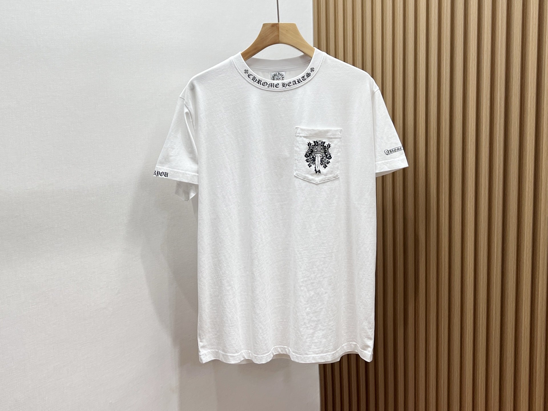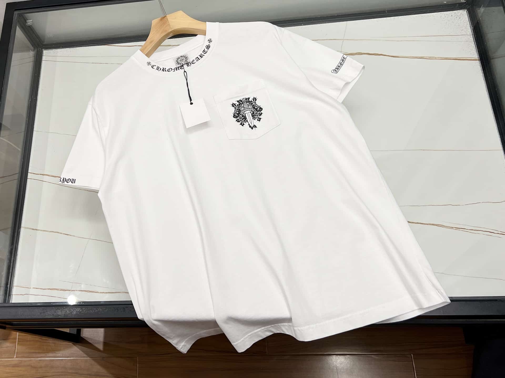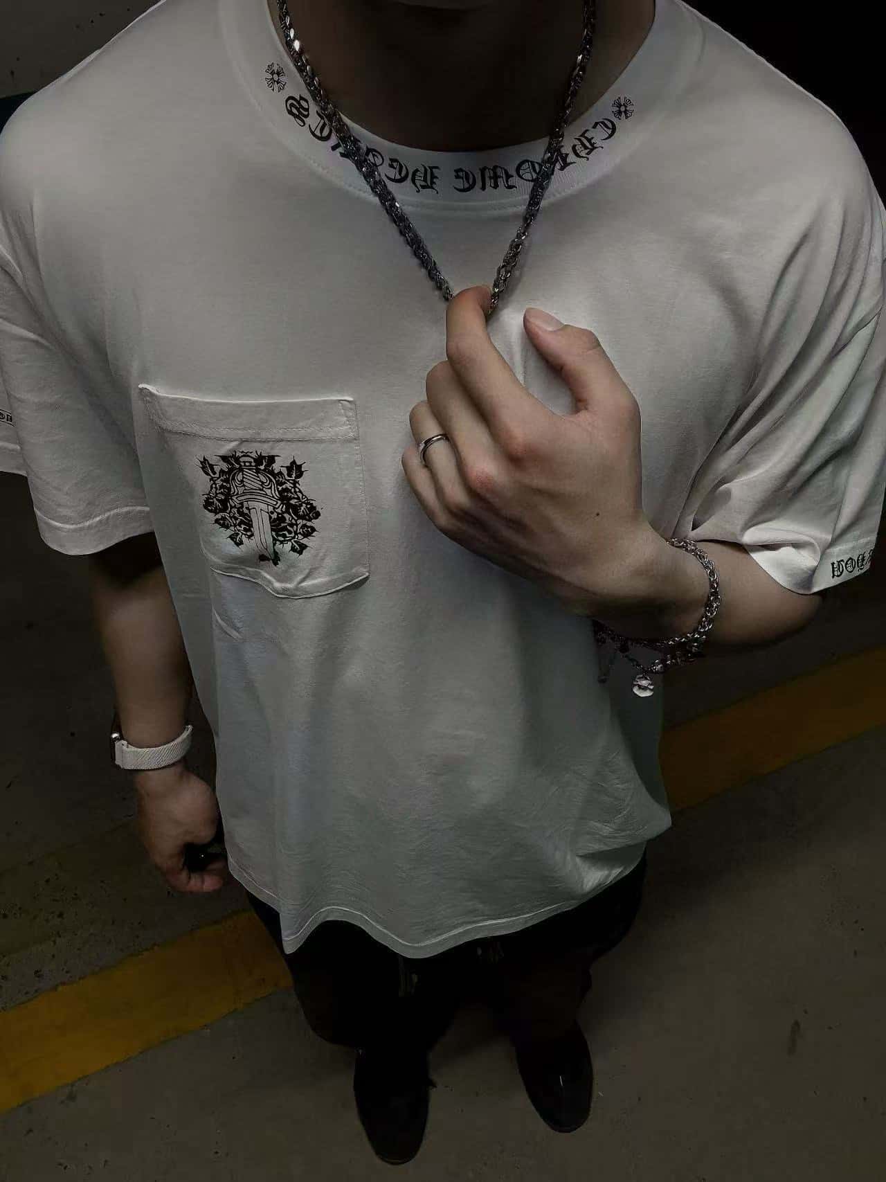 “[크롬하츠] 넥 로고 대거 포켓 반팔 티셔츠(2 COLORS)”의 첫 상품평을 남겨 주세요 응답 취소