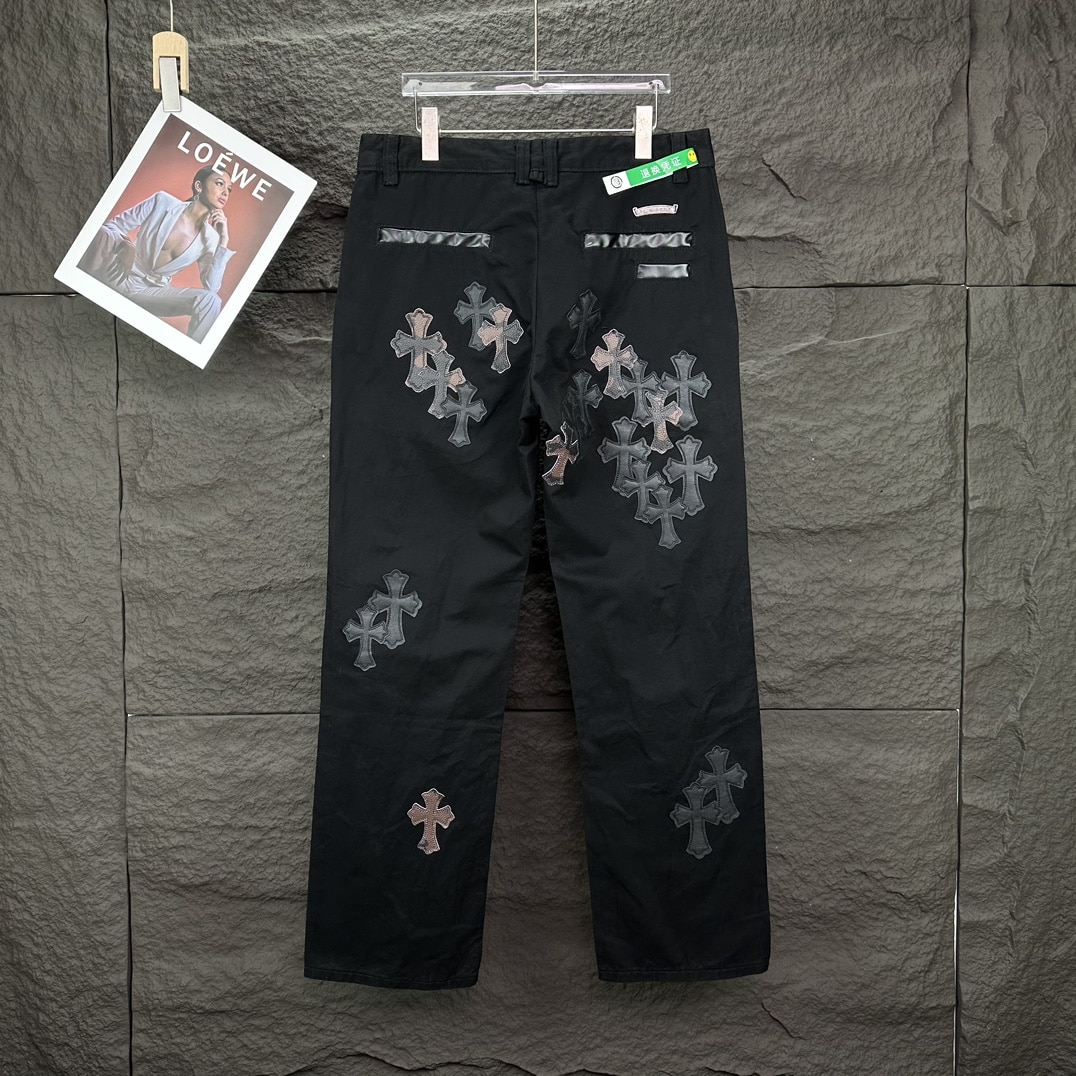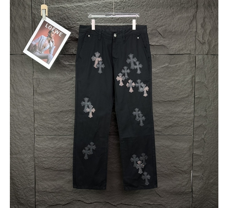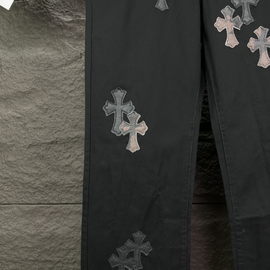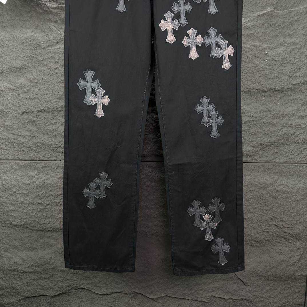 [크롬하츠] 레더 크로스 패치 블랙 데님 팬츠