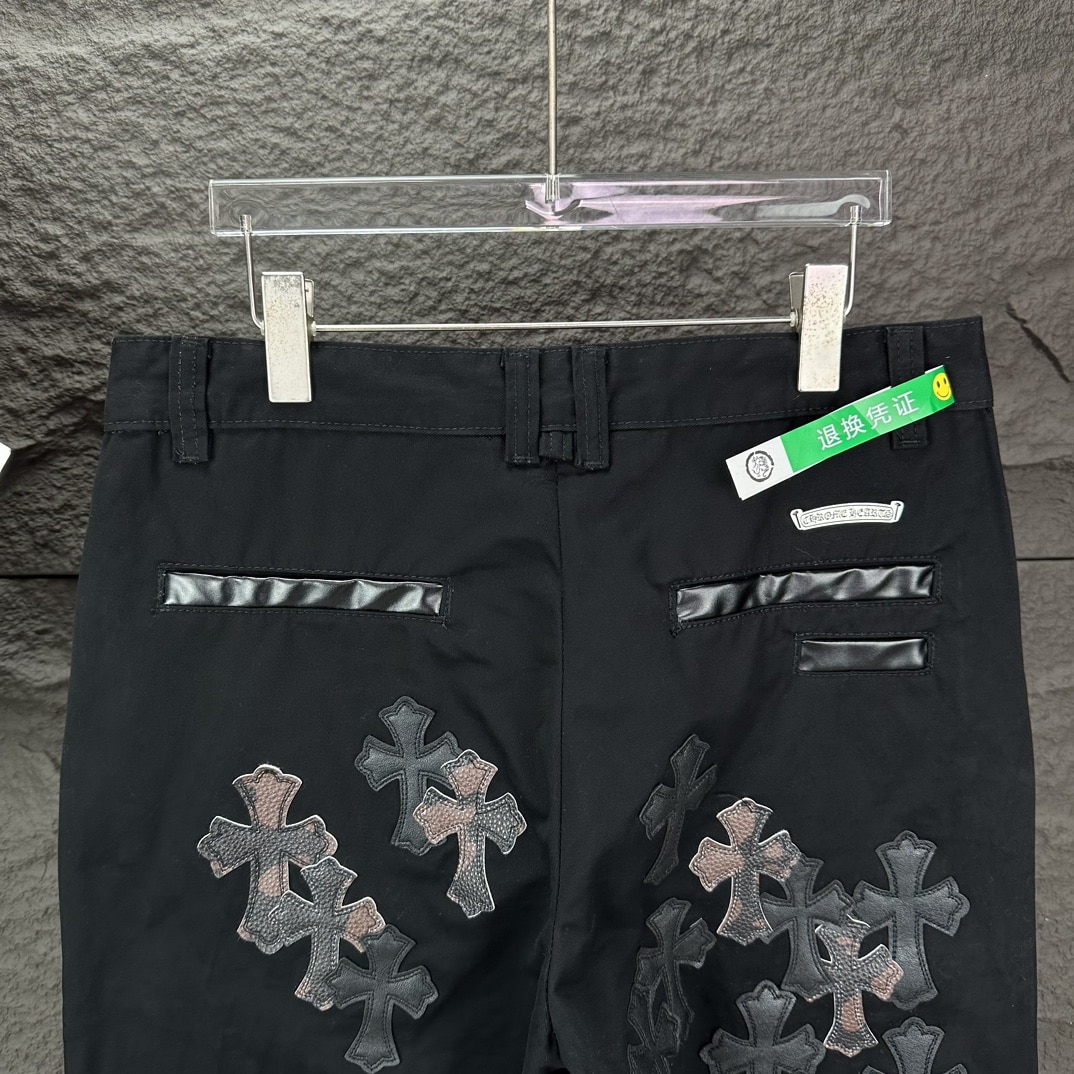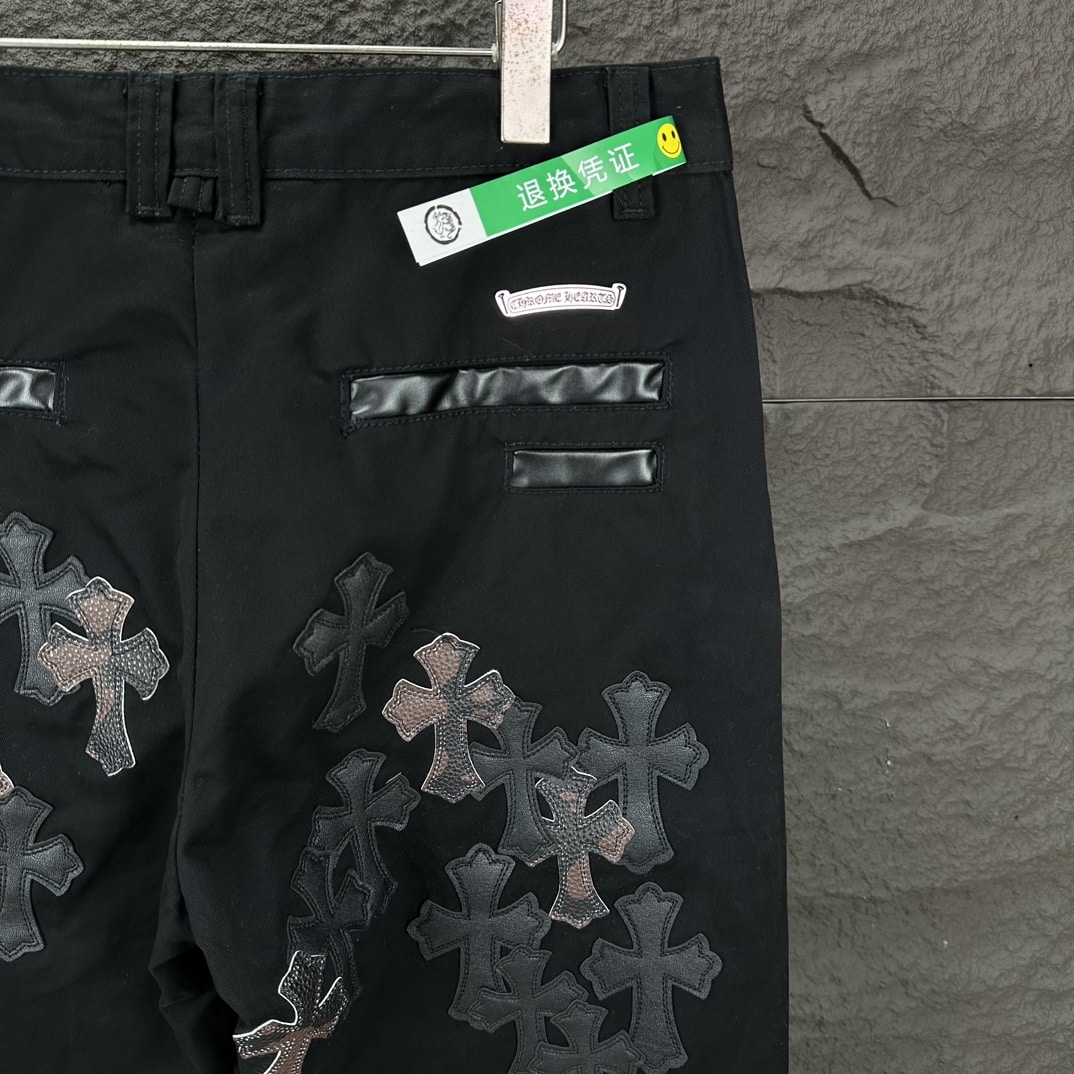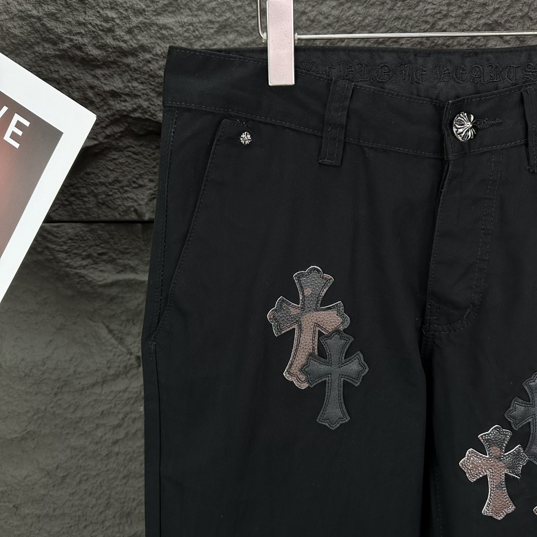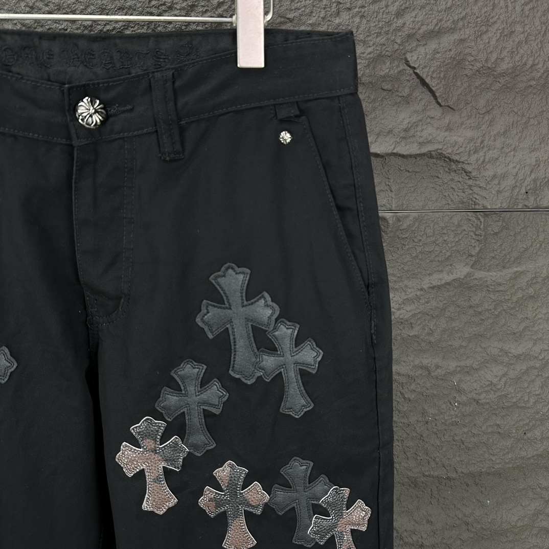 [크롬하츠] 레더 크로스 패치 블랙 데님 팬츠