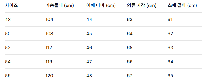 사이즈: 48 / 50 / 52 / 54 / 56