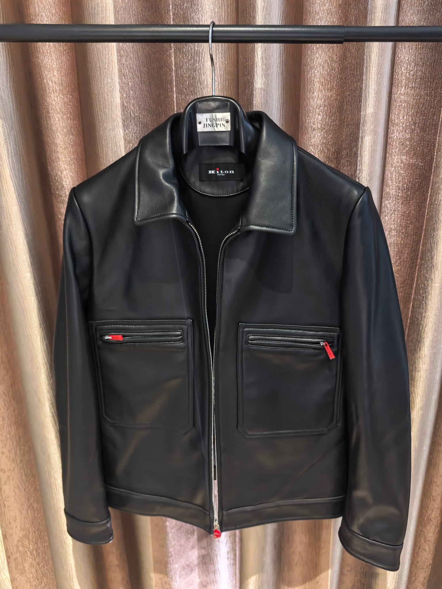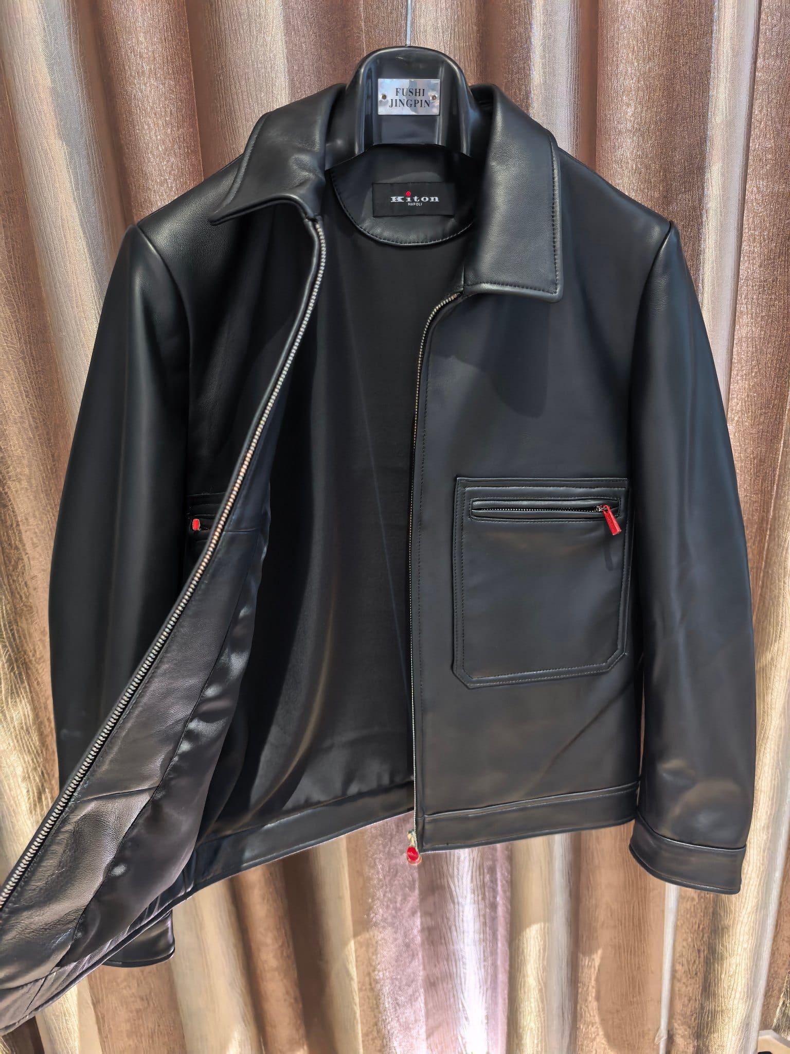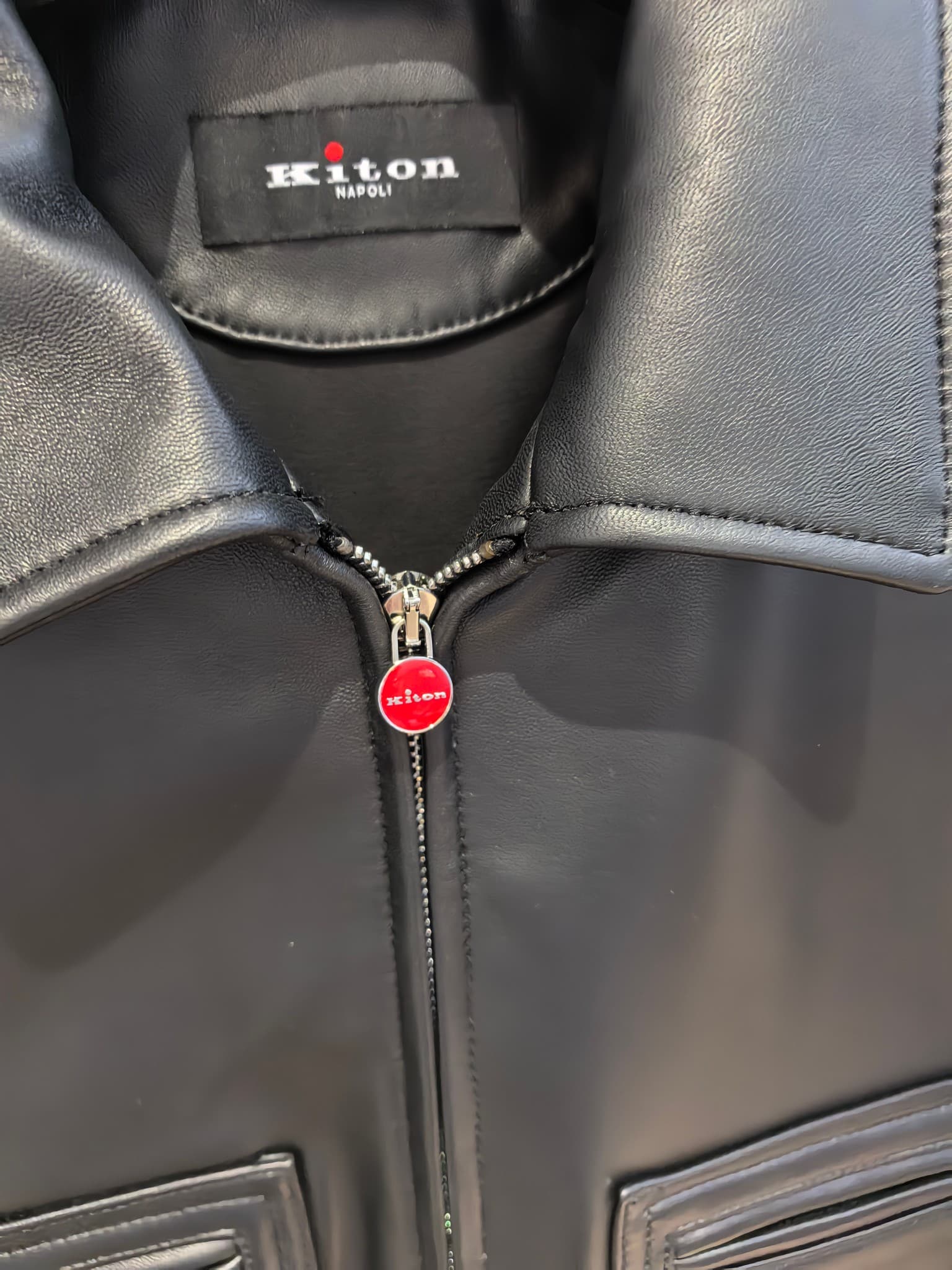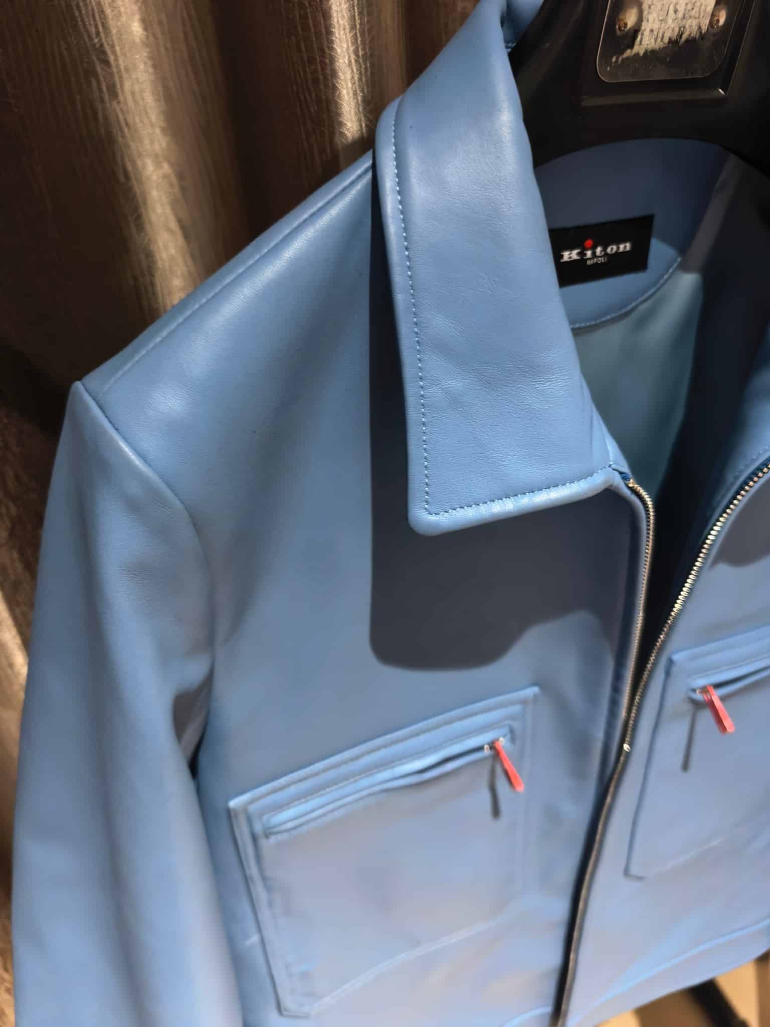 내부에는 부드러운 안감을 사용해 착용감을 높였으며, 정교한 봉제와 완성도 높은 마감이 이탈리아 하이엔드 브랜드 Kiton의 장인정신을 보여준다. 포멀과 캐주얼 스타일 모두에 세련된 무드를 더해주는 럭셔리 남성 레더 아우터웨어 아이템이다.