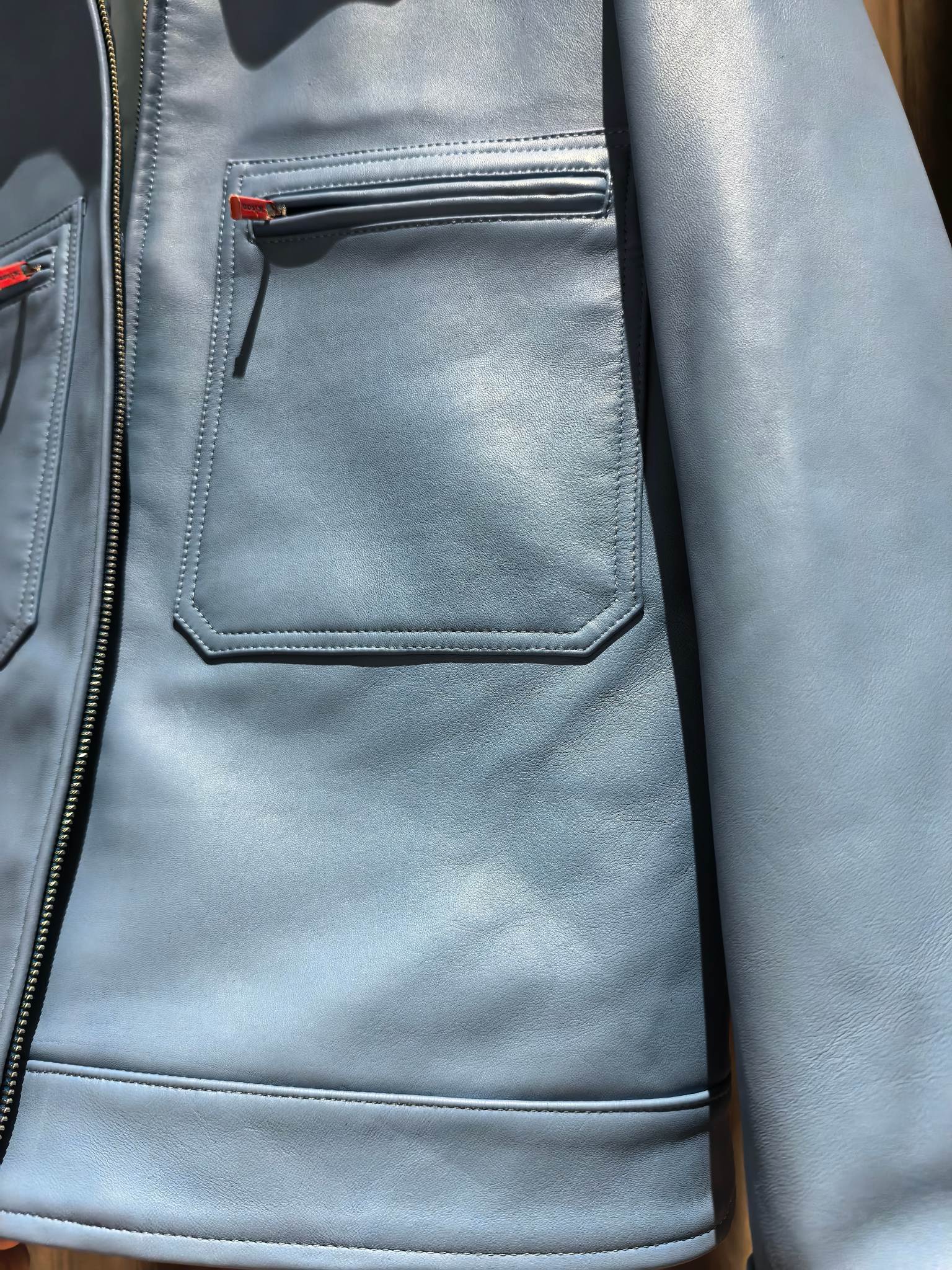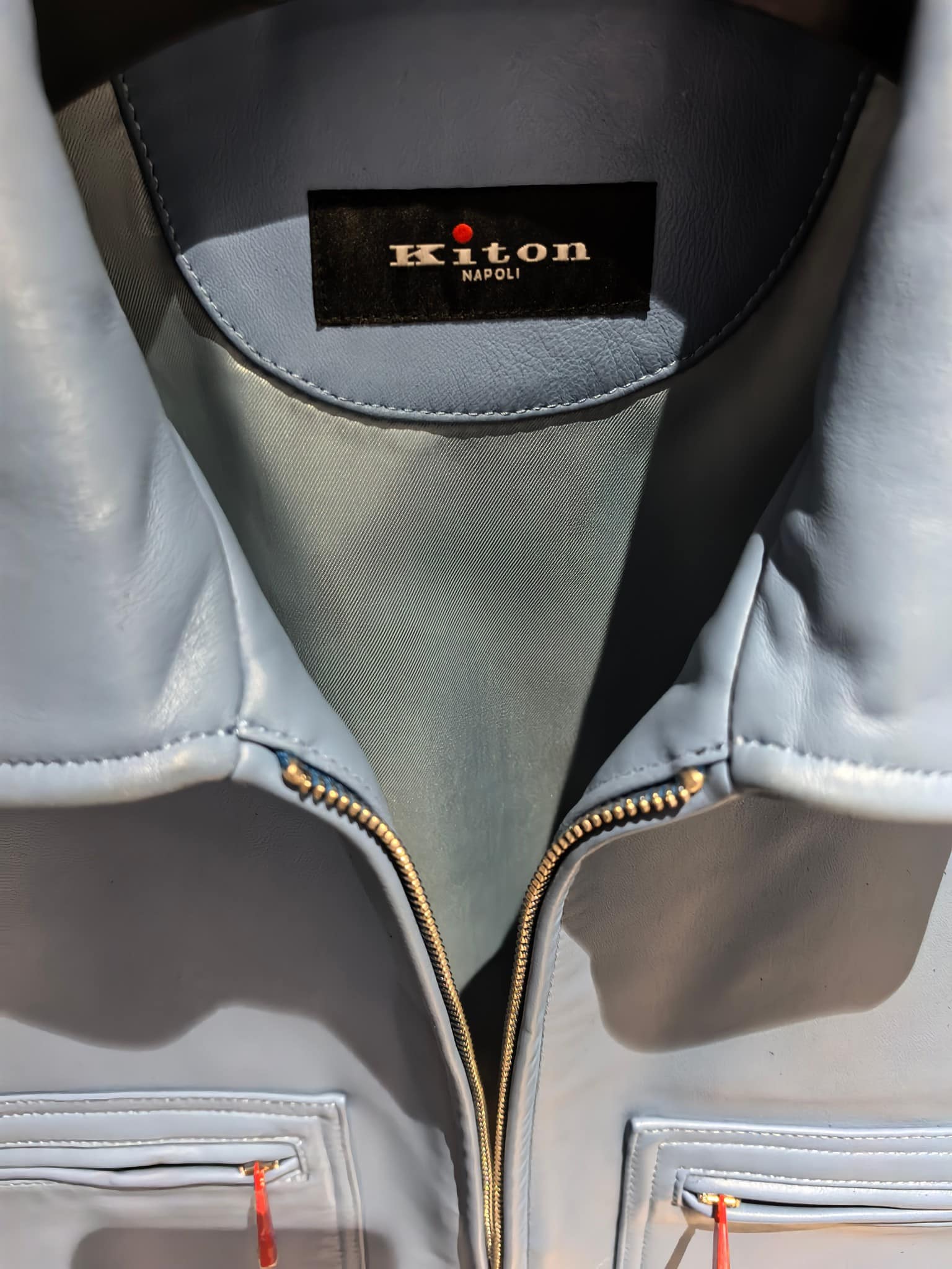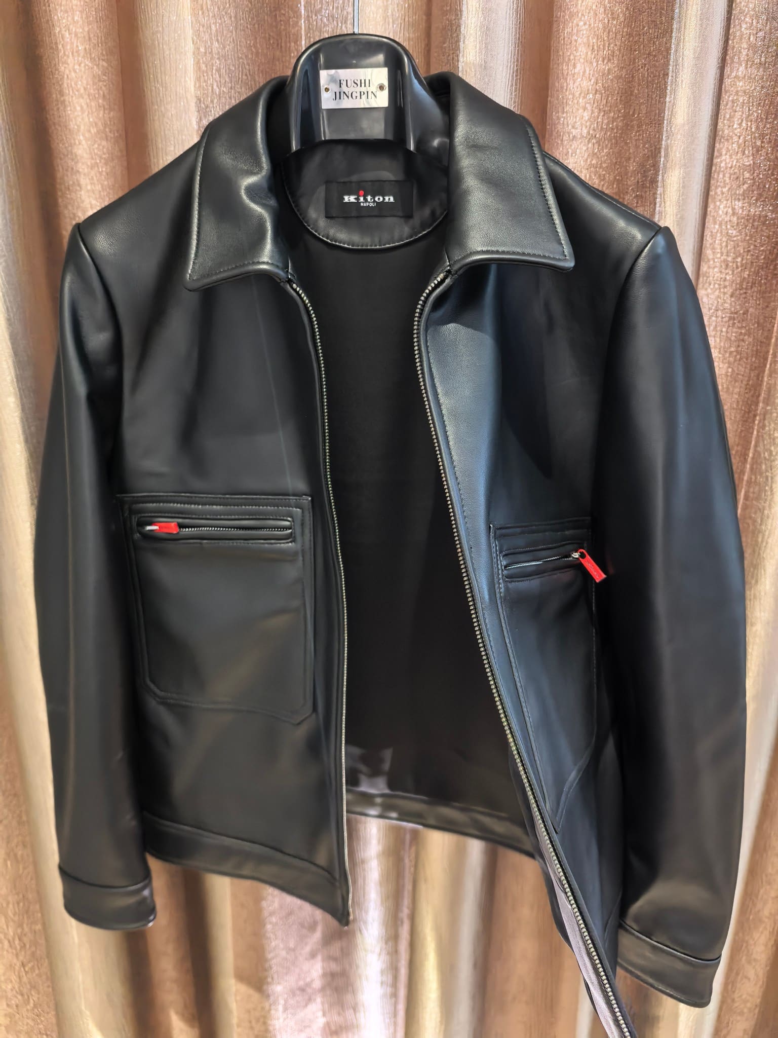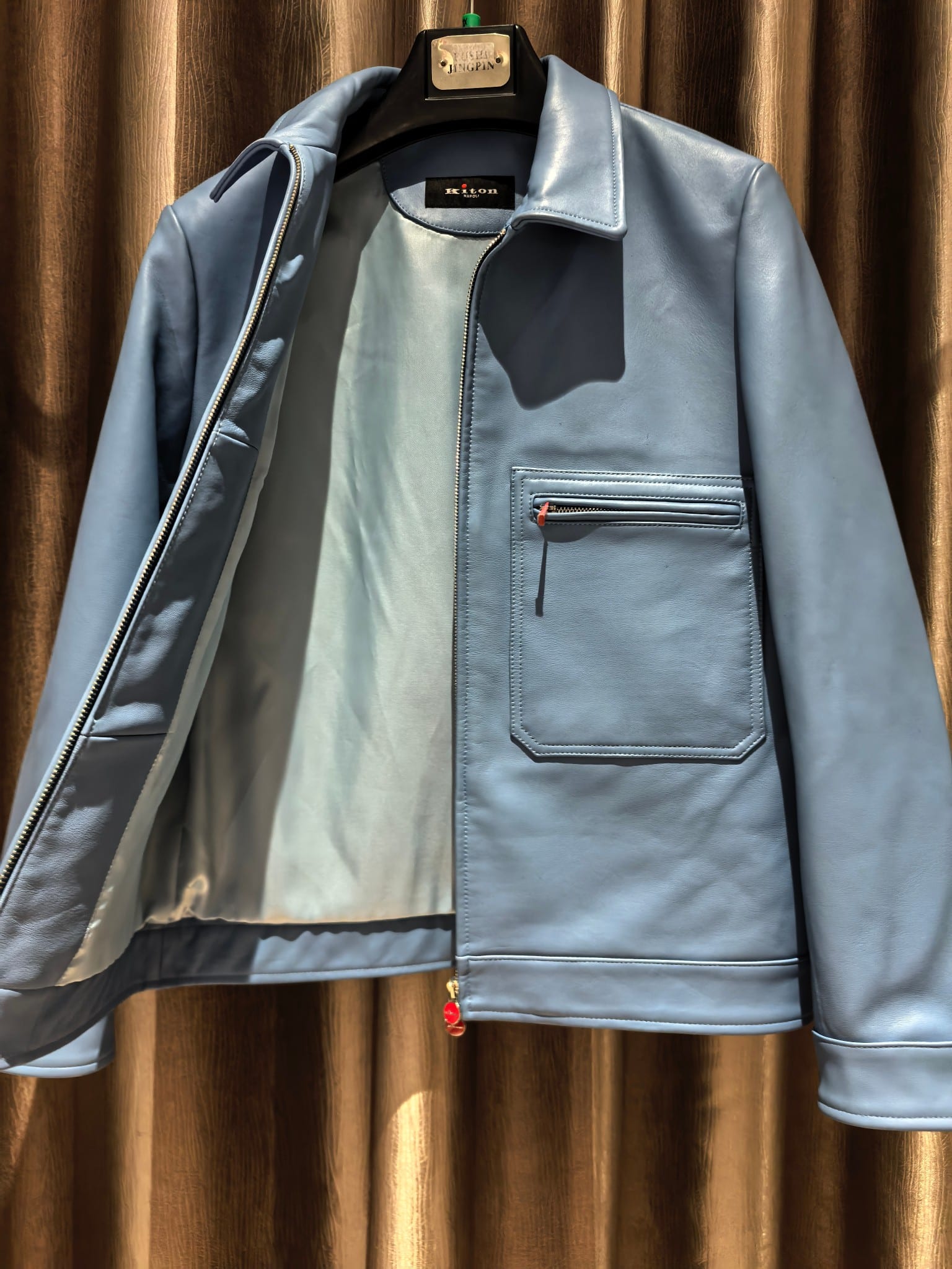 내부에는 부드러운 안감을 사용해 착용감을 높였으며, 정교한 봉제와 완성도 높은 마감이 이탈리아 하이엔드 브랜드 Kiton의 장인정신을 보여준다. 포멀과 캐주얼 스타일 모두에 세련된 무드를 더해주는 럭셔리 남성 레더 아우터웨어 아이템이다.