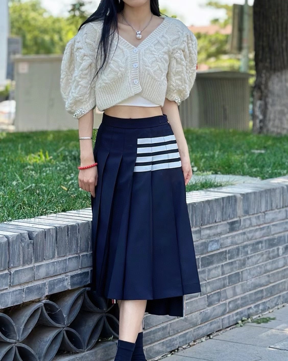 ![[톰브라운] 플레인 위브 4-바 플리츠 미디 스커트 (2 COLORS) - 이미지 5](https://www.skyshop77.com/wp-content/uploads/2026/04/426062main-8.jpg)