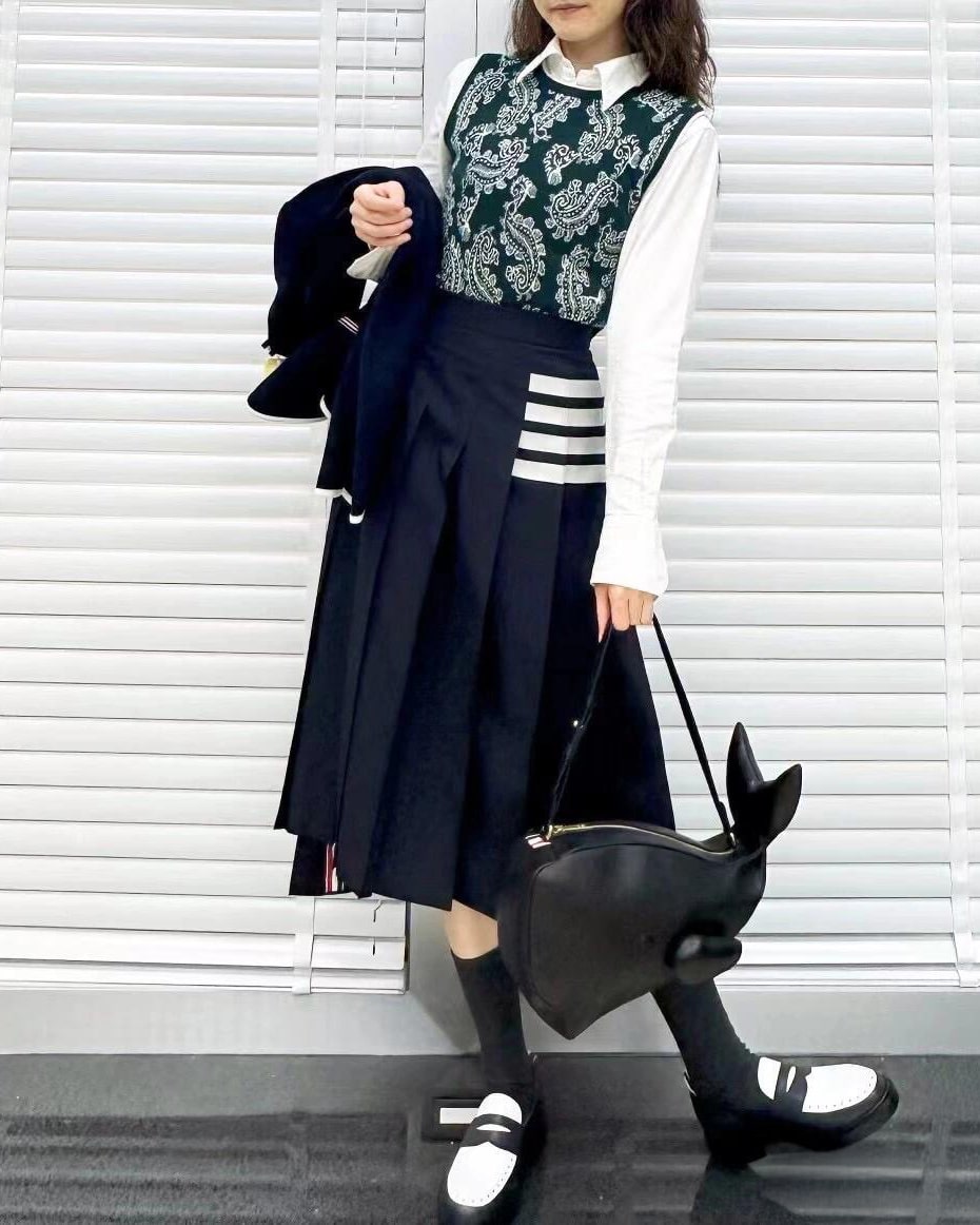 ![[톰브라운] 플레인 위브 4-바 플리츠 미디 스커트 (2 COLORS) - 이미지 4](https://www.skyshop77.com/wp-content/uploads/2026/04/426062main-7.jpg)