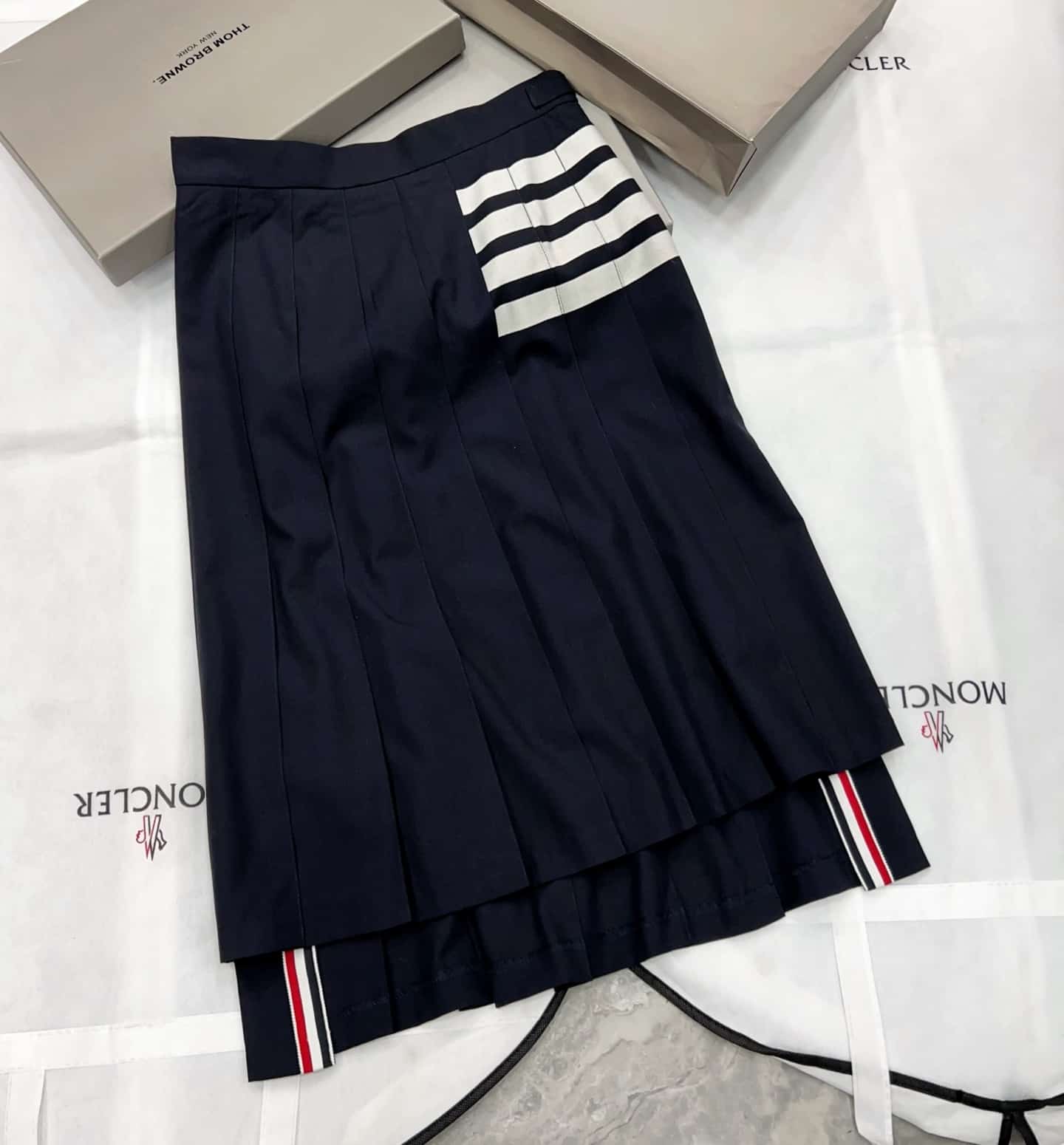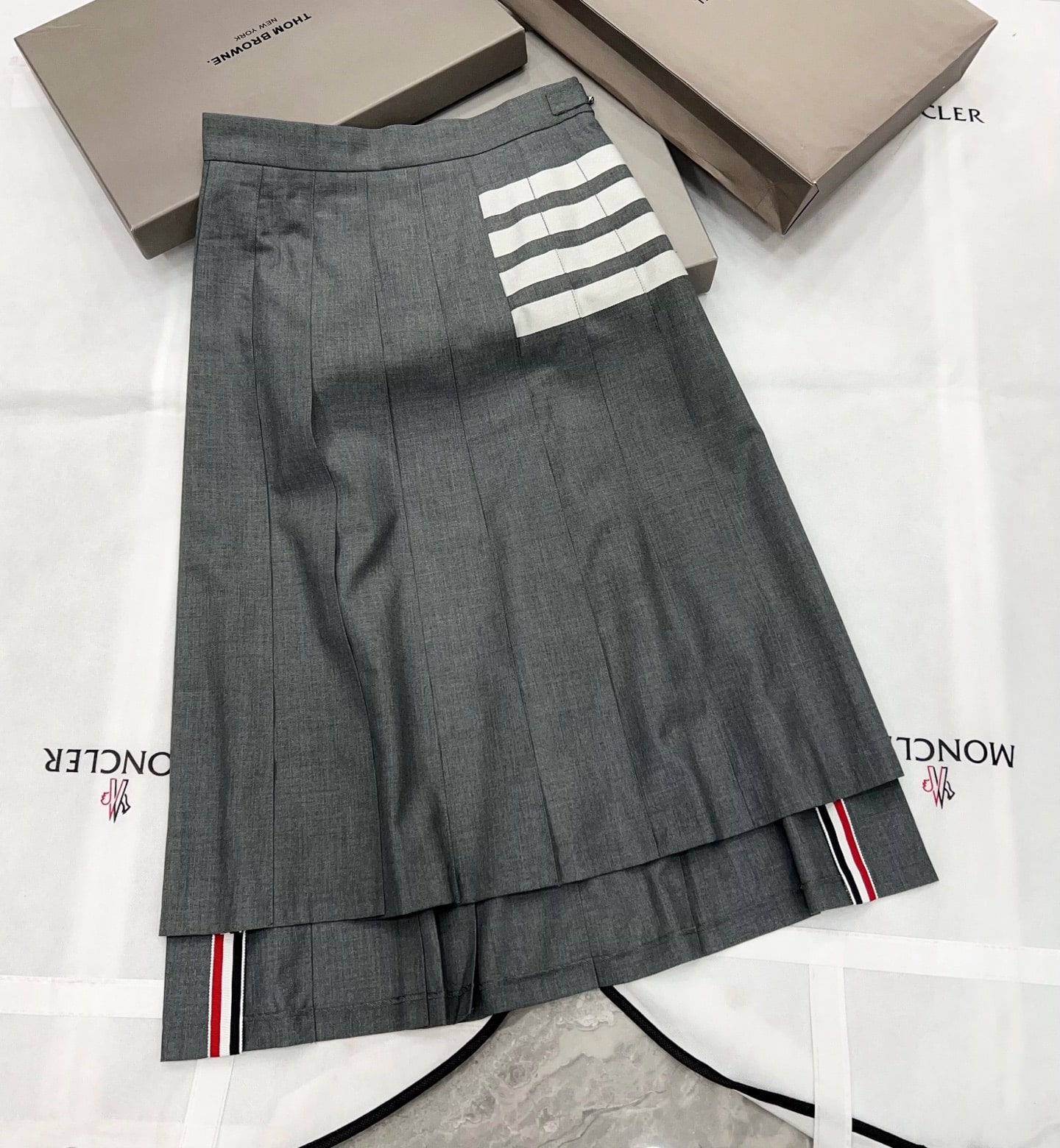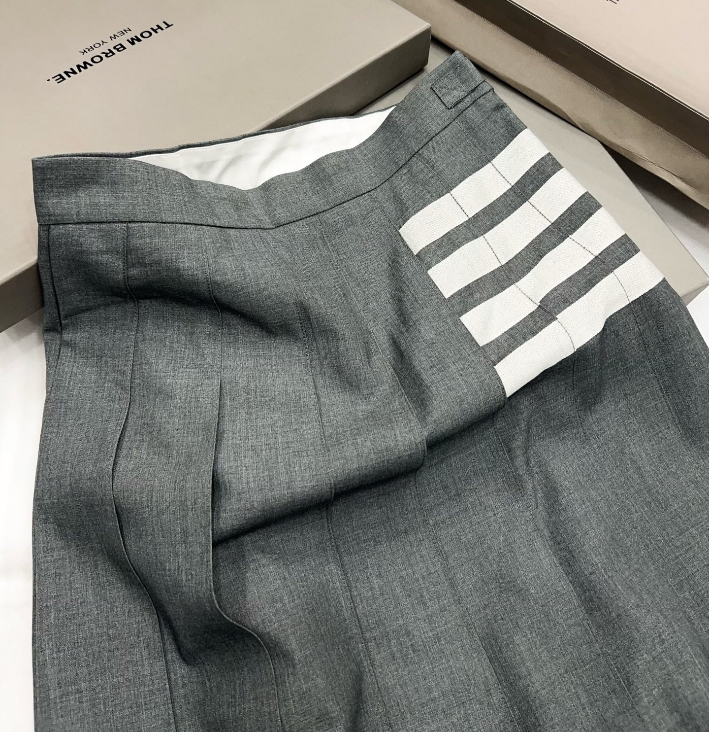 ![[톰브라운] 플레인 위브 4-바 플리츠 미디 스커트 (2 COLORS) - 이미지 3](https://www.skyshop77.com/wp-content/uploads/2026/04/426062main-6.jpg)