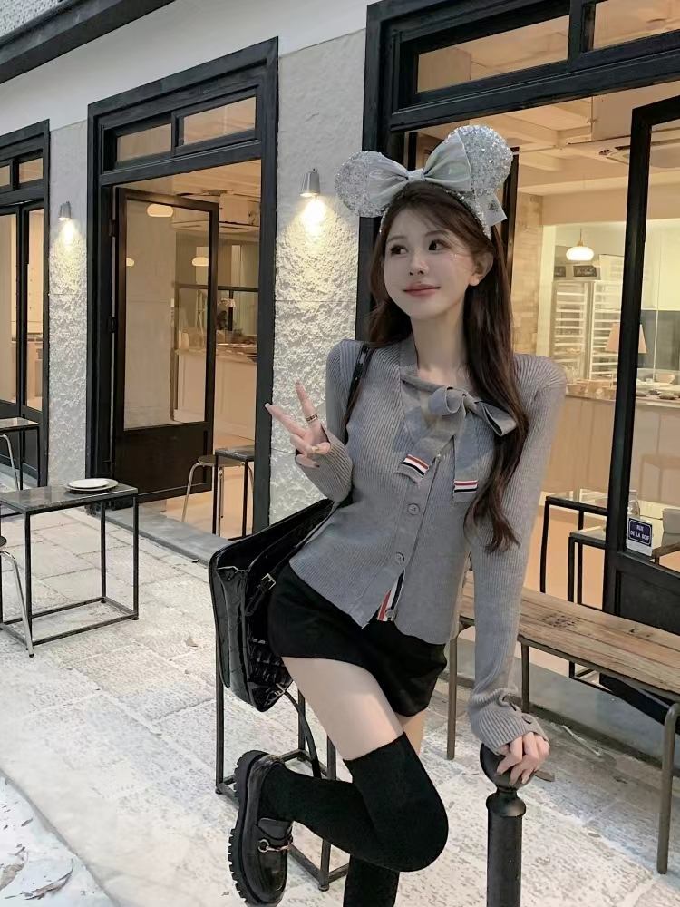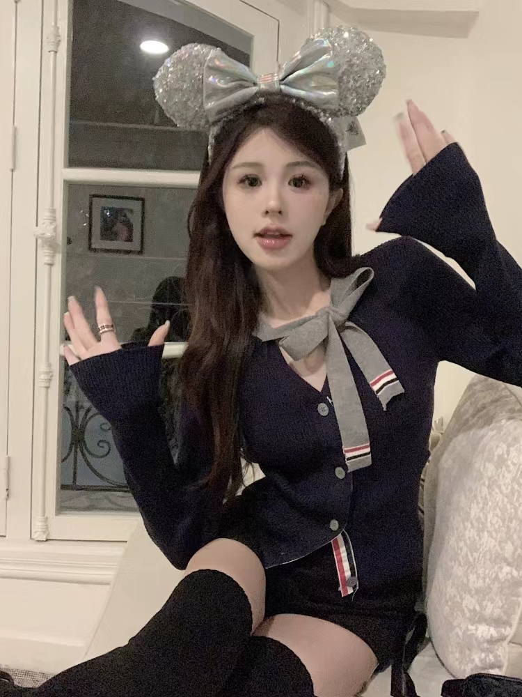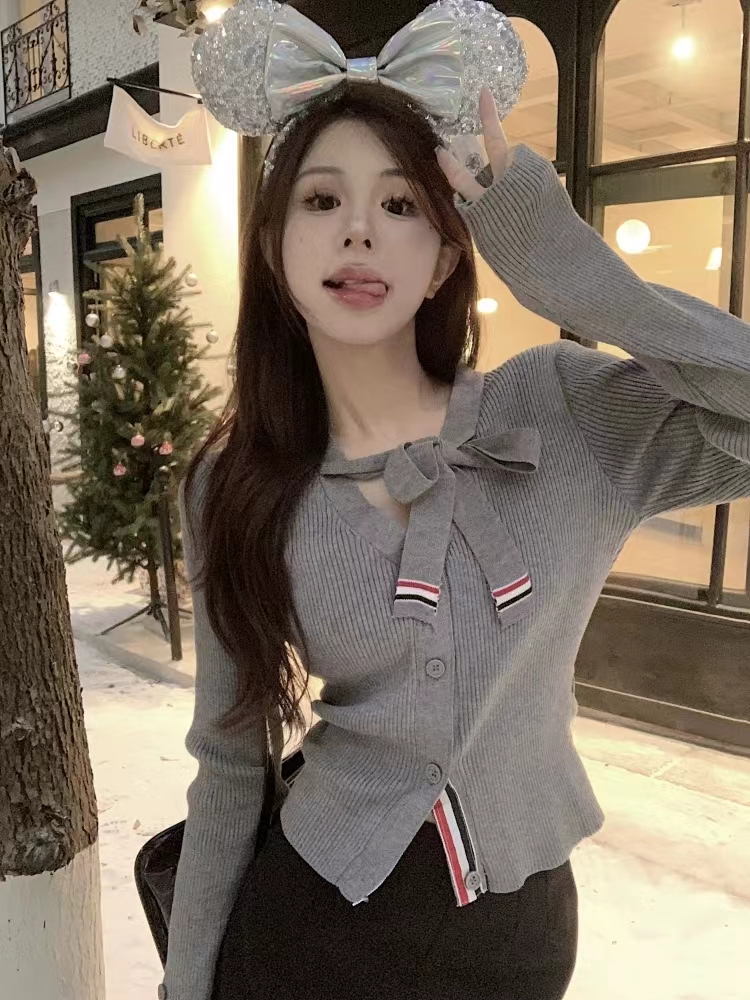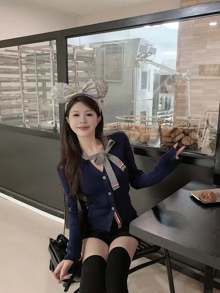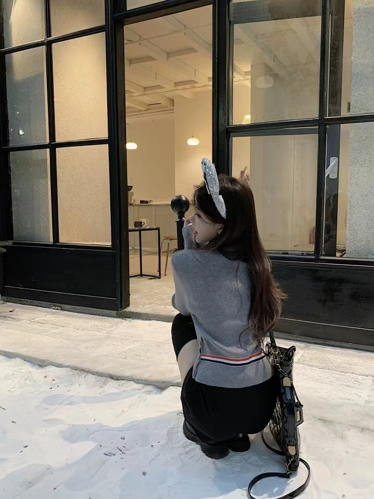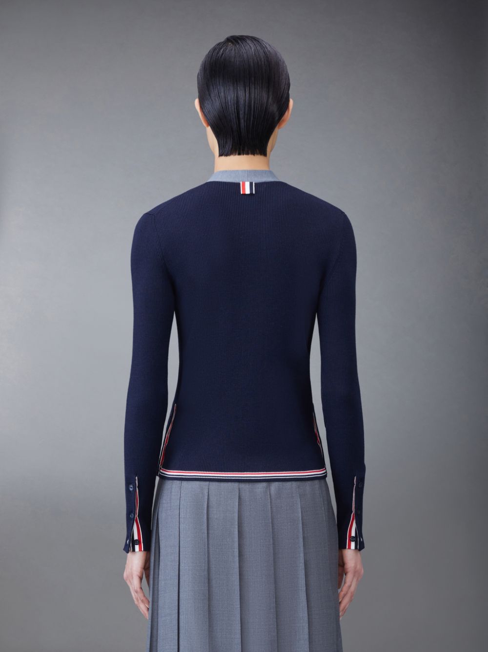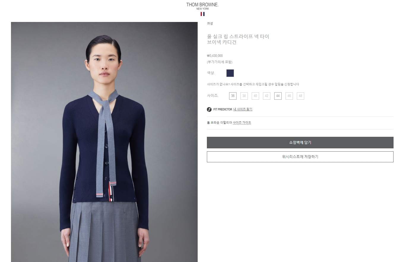 [톰브라운] 울 실크 립 스트라이프 넥 타이 브이넥 카디건 FKC548A (2 COLORS)