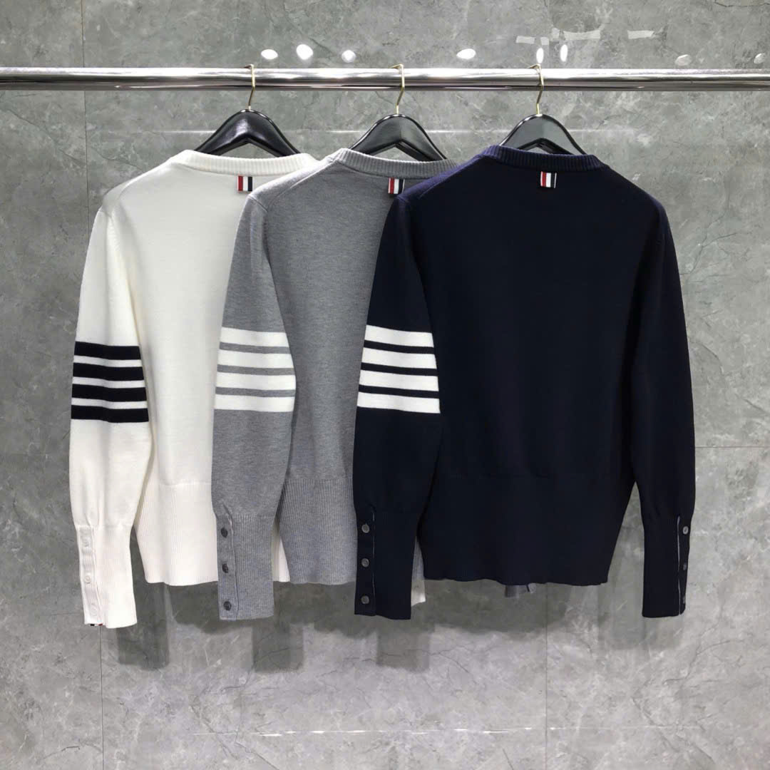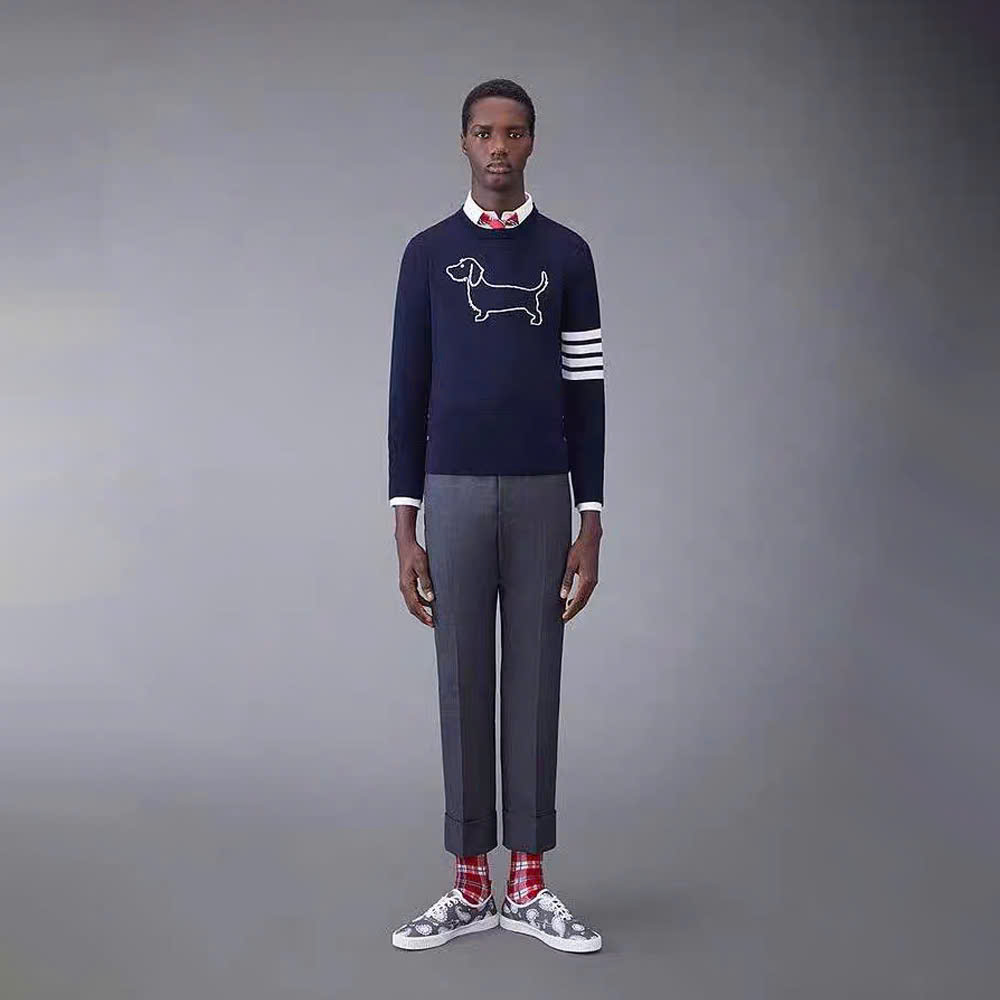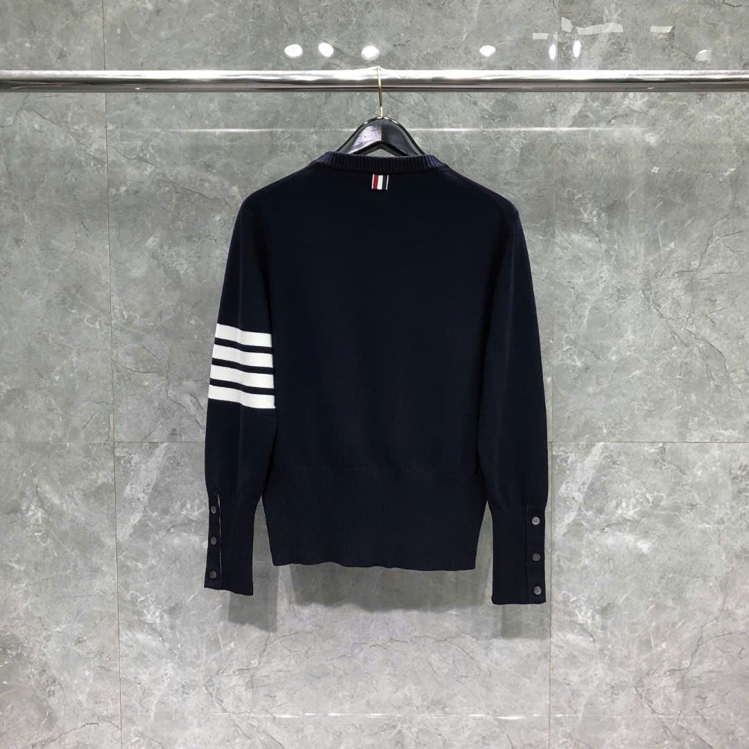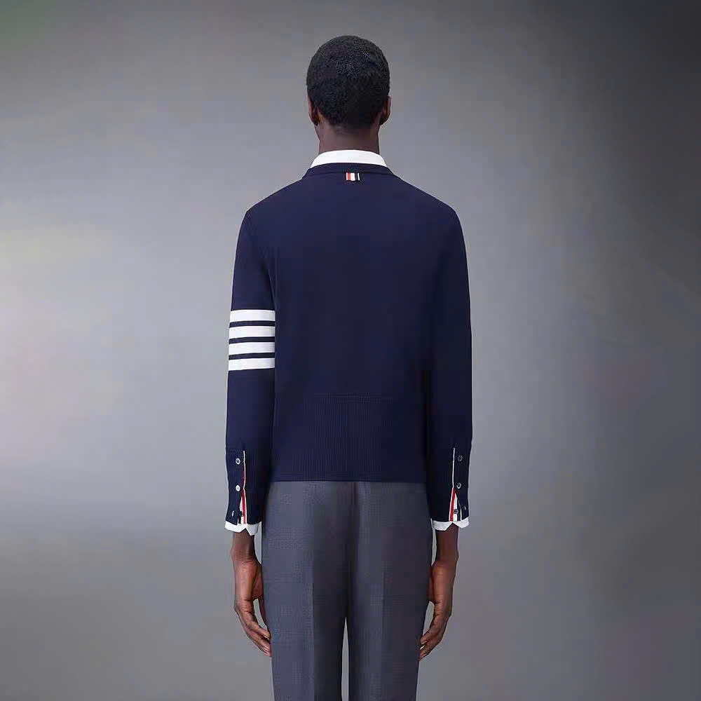 [톰브라운] 4선 헥터 크루넥 니트 네이비/그레이/화이트