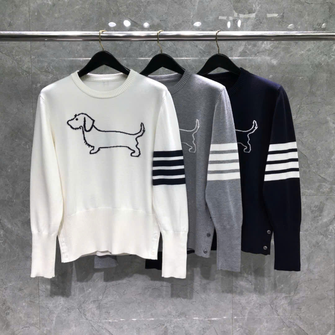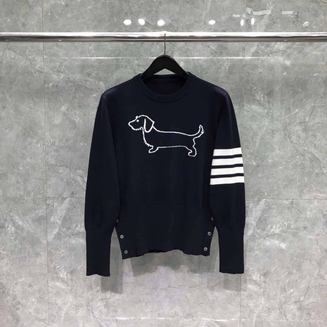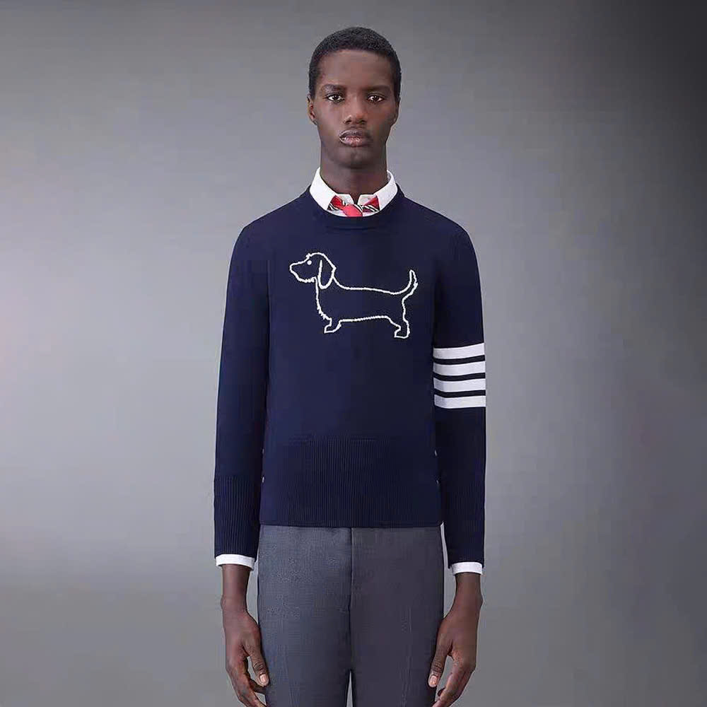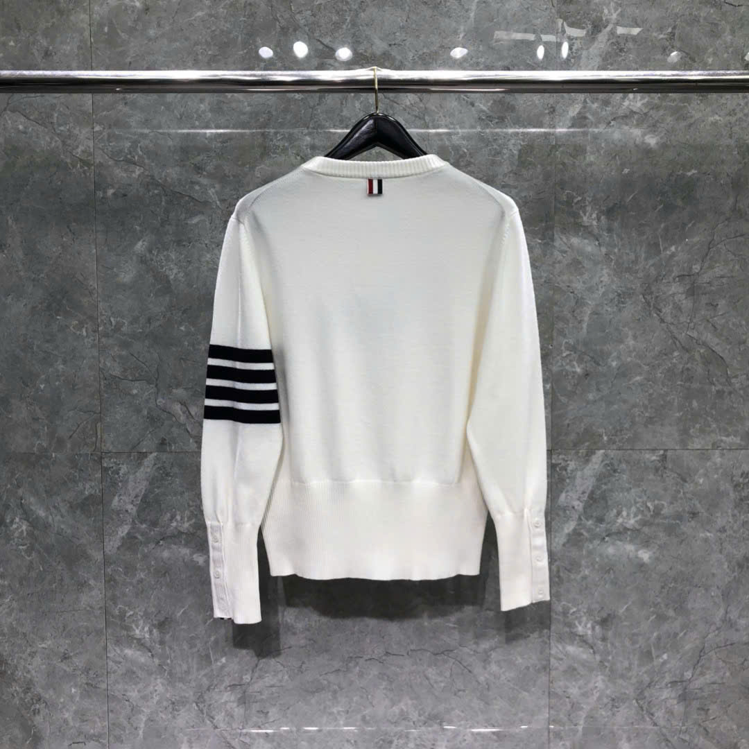 [톰브라운] 4선 헥터 크루넥 니트 네이비/그레이/화이트