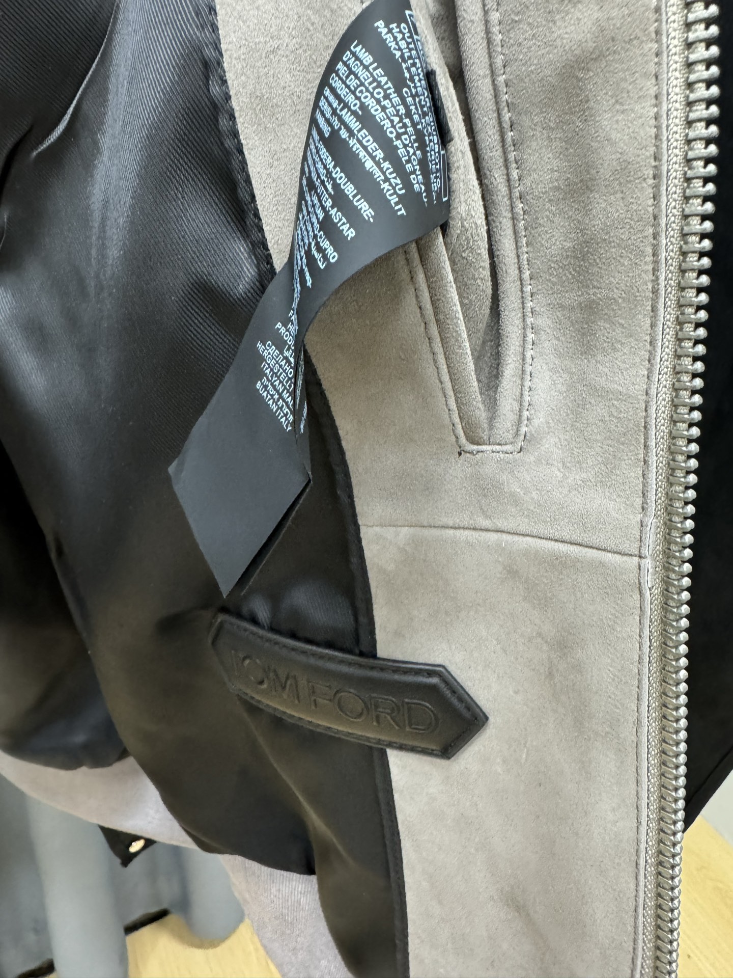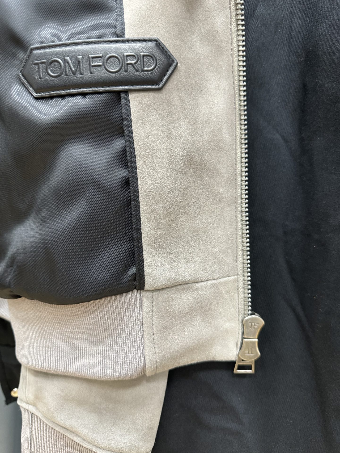 Tom Ford 2025 봄·여름 시즌에 선보이는 스웨이드 봄버 재킷.