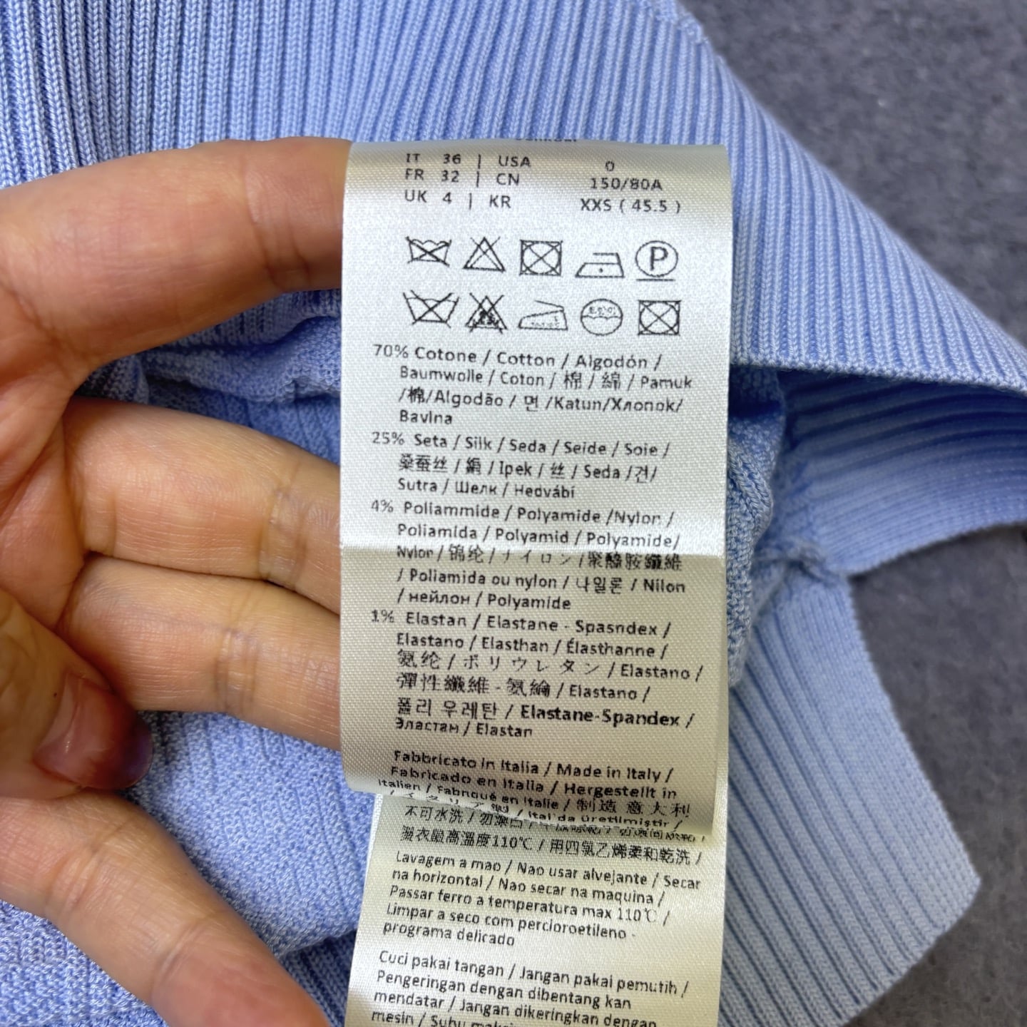 소재: 코튼 70%, 실크 25%, 나일론 4%, 스판덱스 1%
