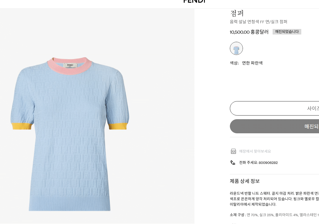 특징: 이탈리아 생산, FF 자카드 패턴, 라운드 넥, 컬러 블록 립 디테일