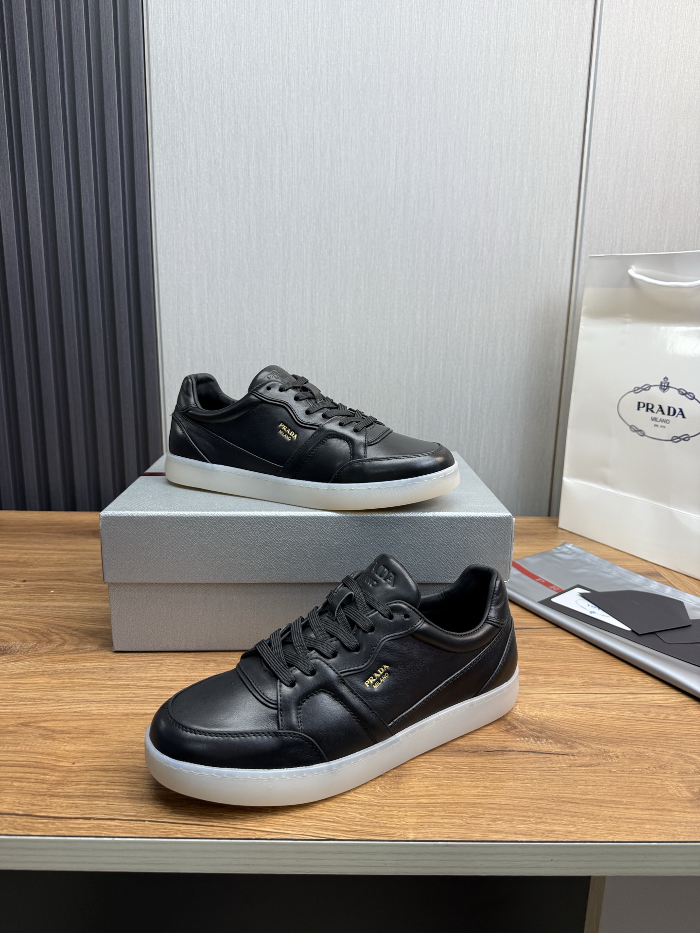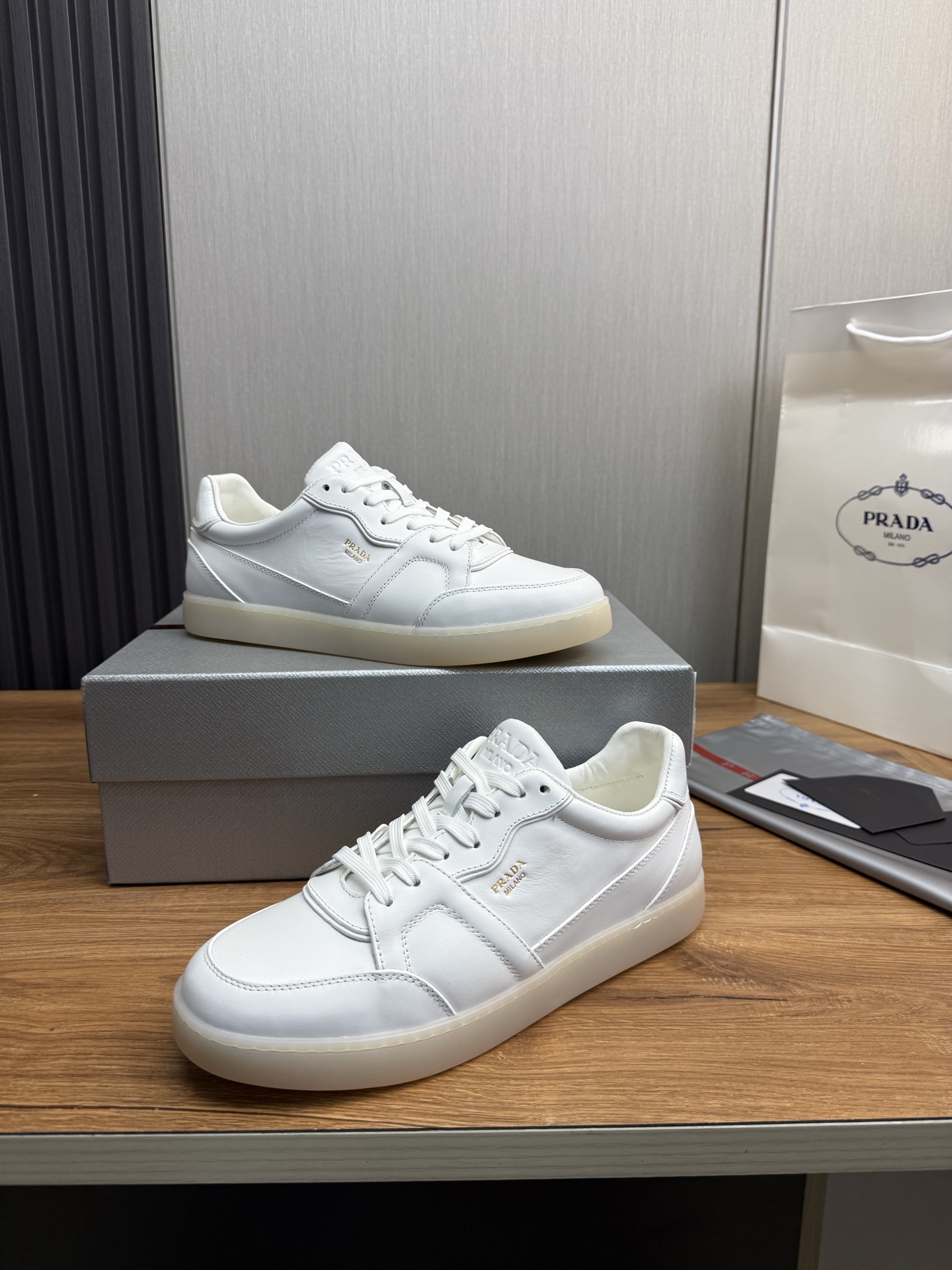 [프라다] 나파 가죽 스니커즈 1T800N