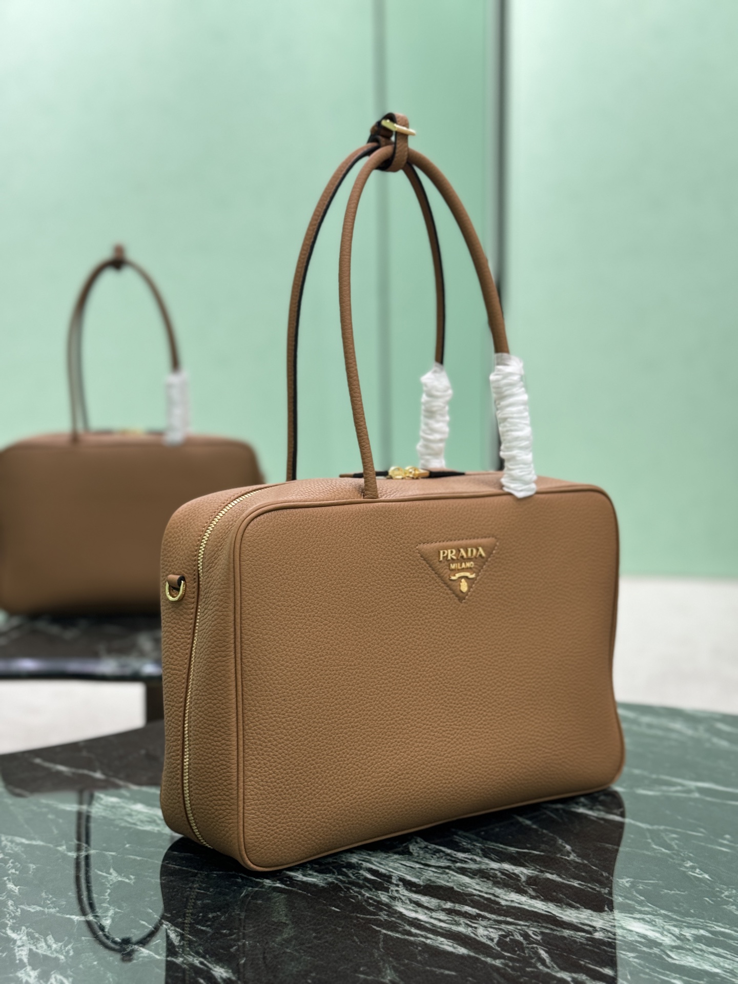 [프라다] 라지 레더 탑 핸들 백 1BB128
