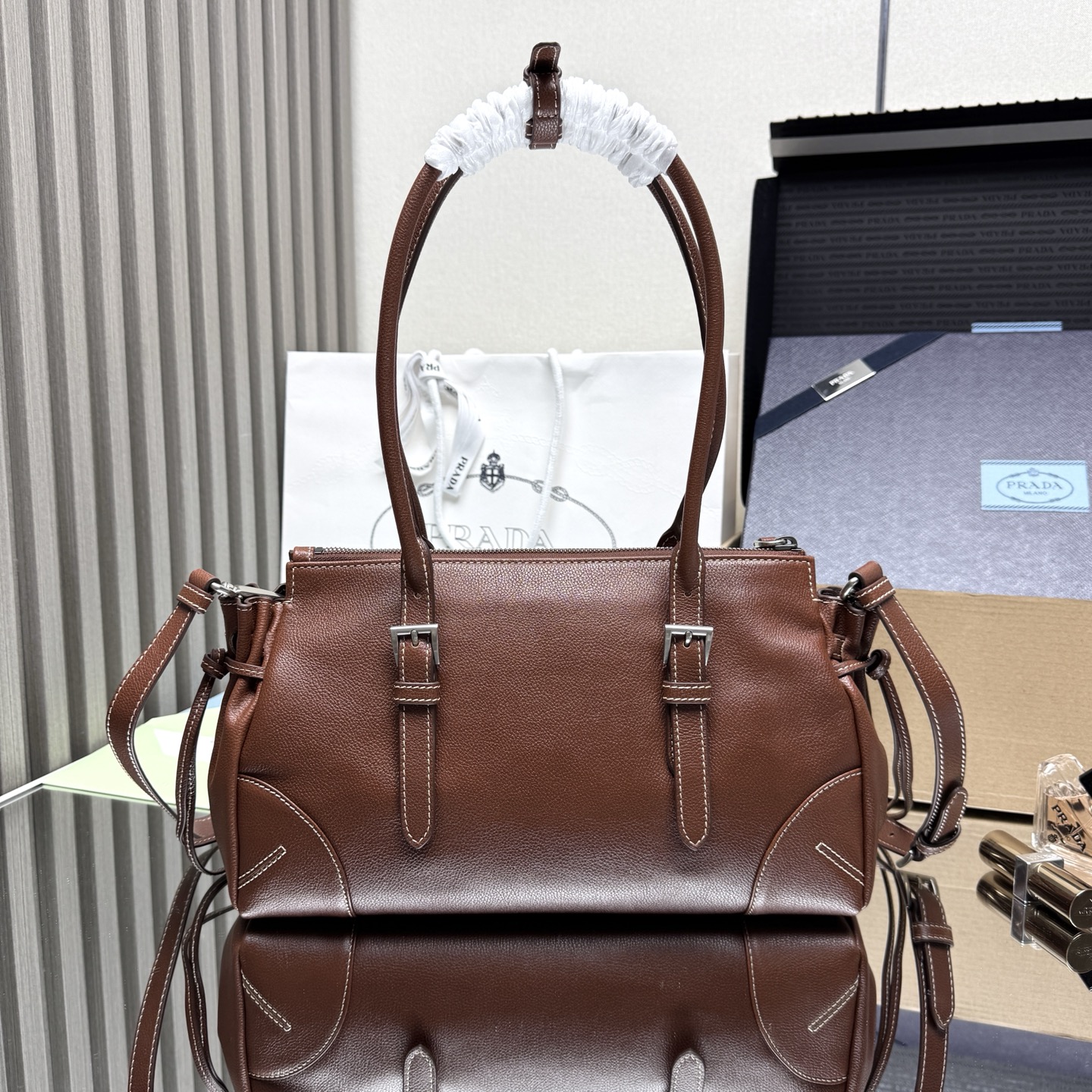 “[프라다] 보니 미디엄 글라쎄 가죽 토트백 1BG628”의 첫 상품평을 남겨 주세요 응답 취소