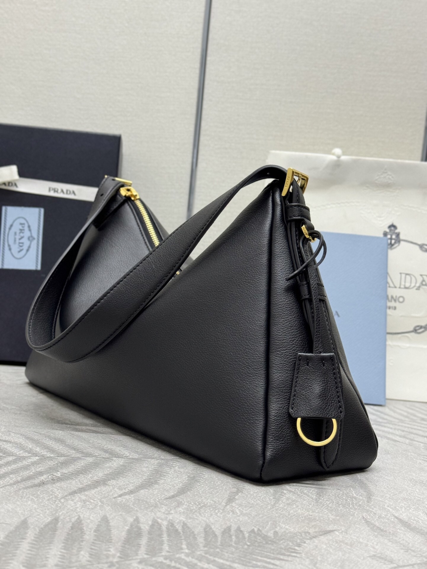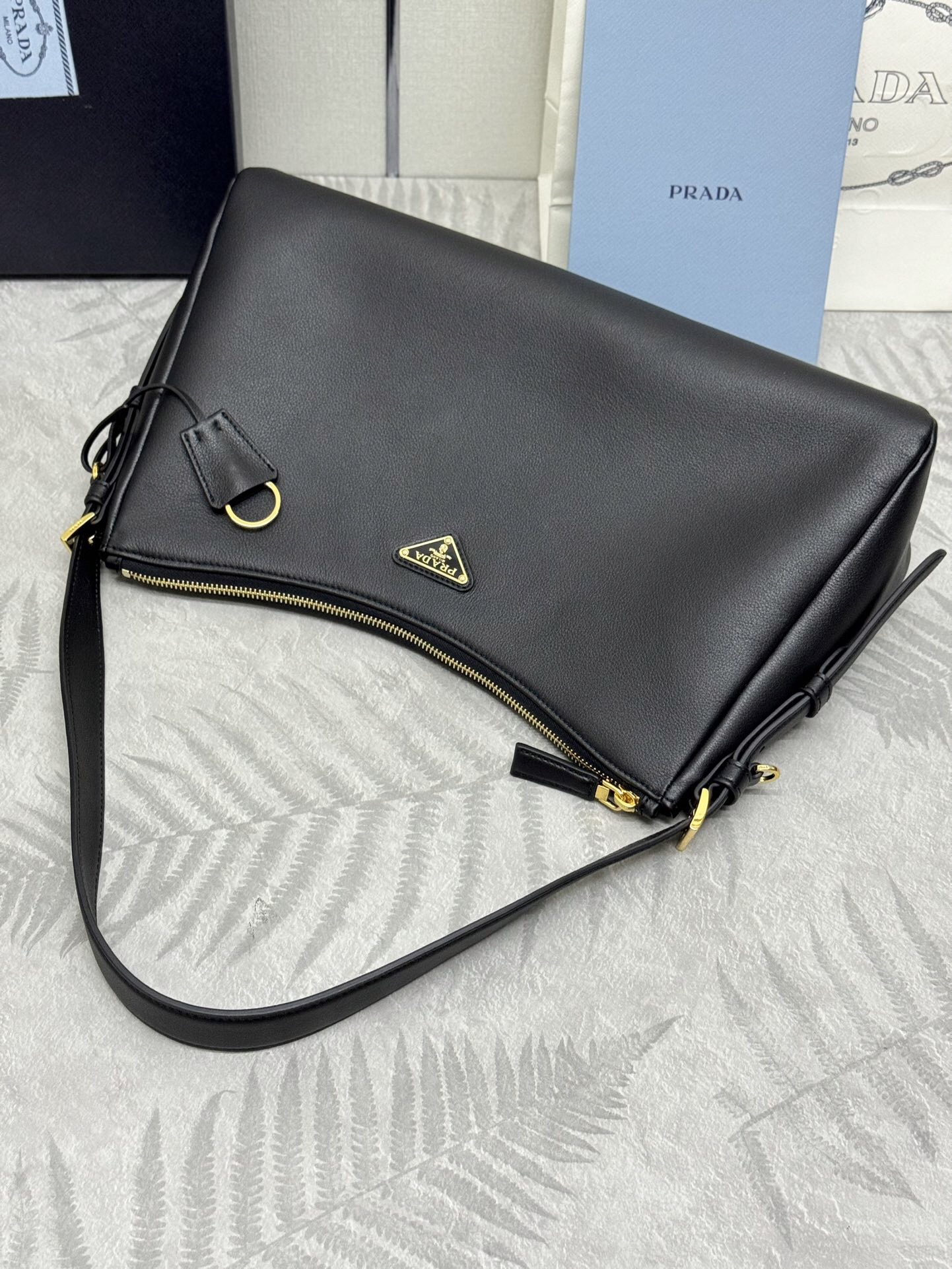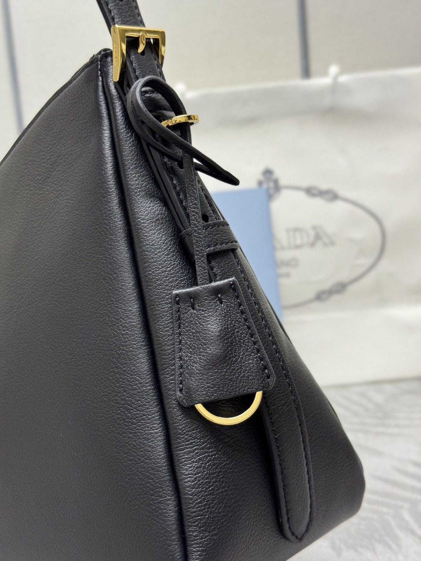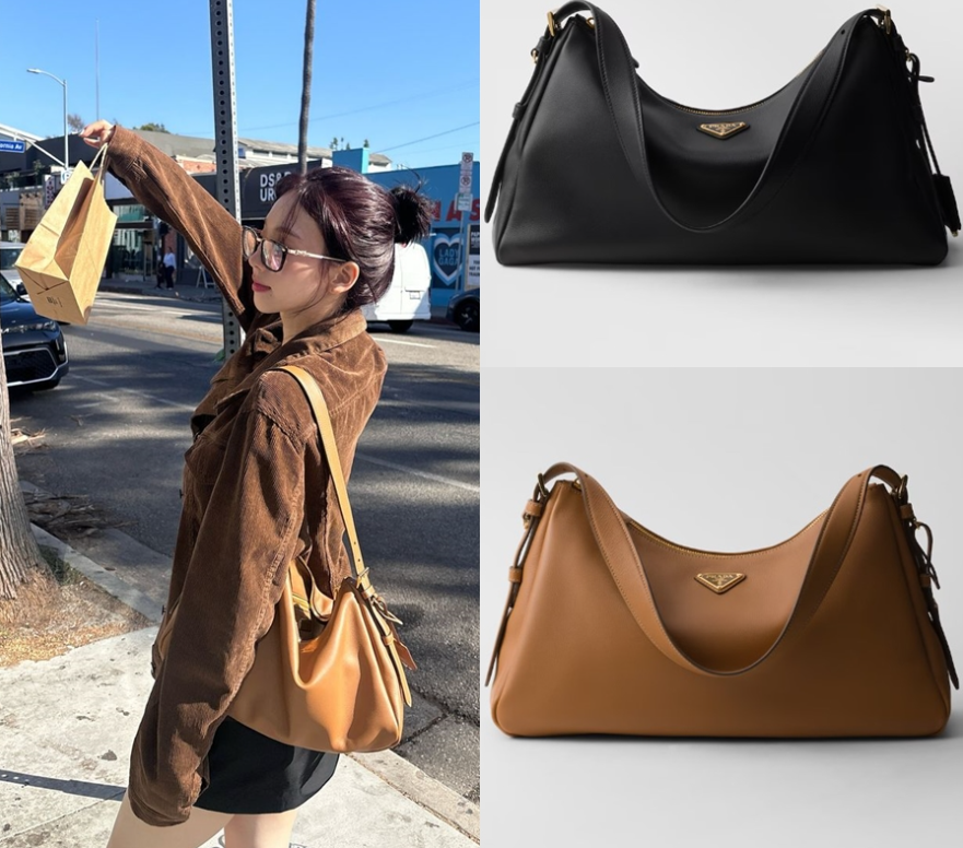 2024 가을/겨울 캠페인에서 선보인 새로운 프라다 에메 백은 90년대의 세련된 미니멀리즘에서 영감을 받았습니다. 백을 드는 직관적인 제스처를 연상시키는 부드러운 디자인이 특징이며 어깨에 자연스럽게 착용하거나 크로스바디 스타일로 연출할 수 있습니다.