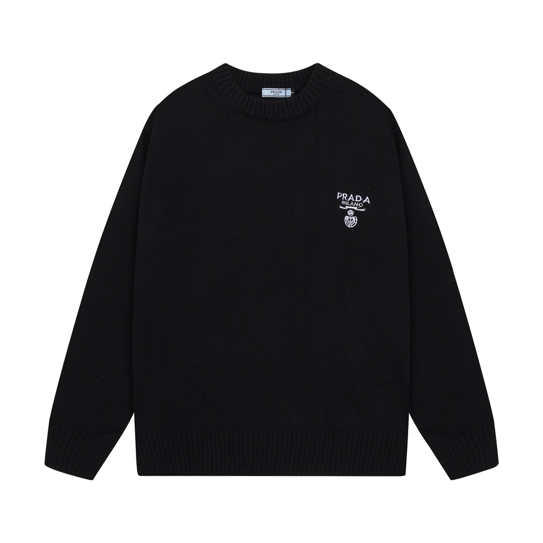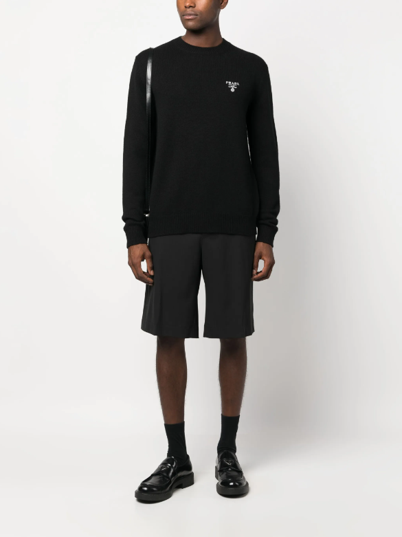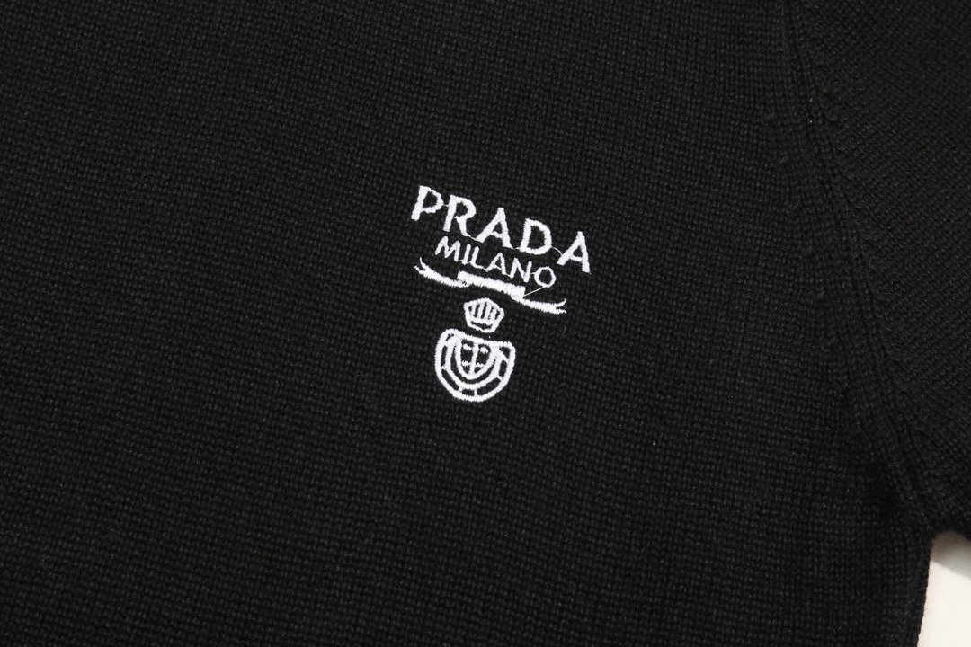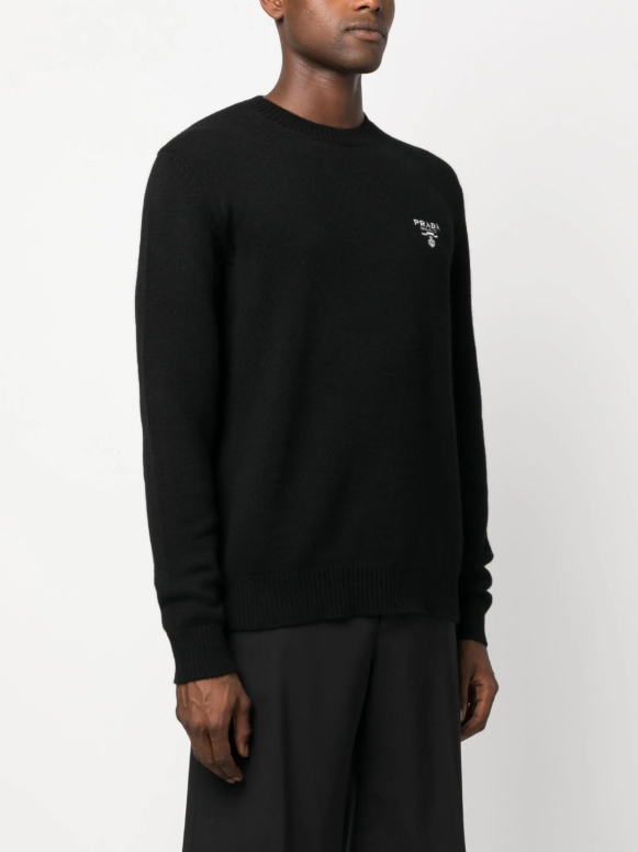 [프라다] 엠브로이드 크루넥 니트 스웨터 블랙