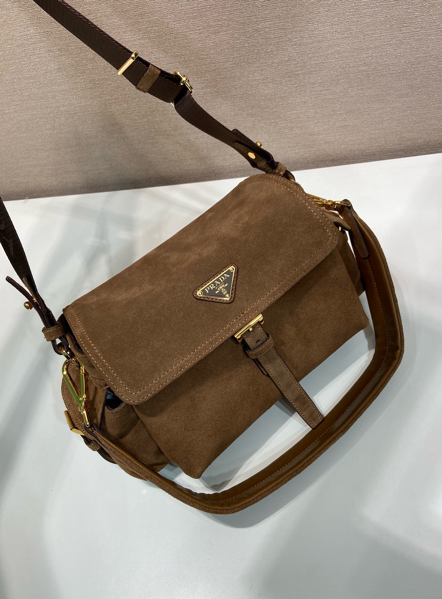 [프라다] 익스플로어 미디엄 스웨이드 숄더백 1BD394