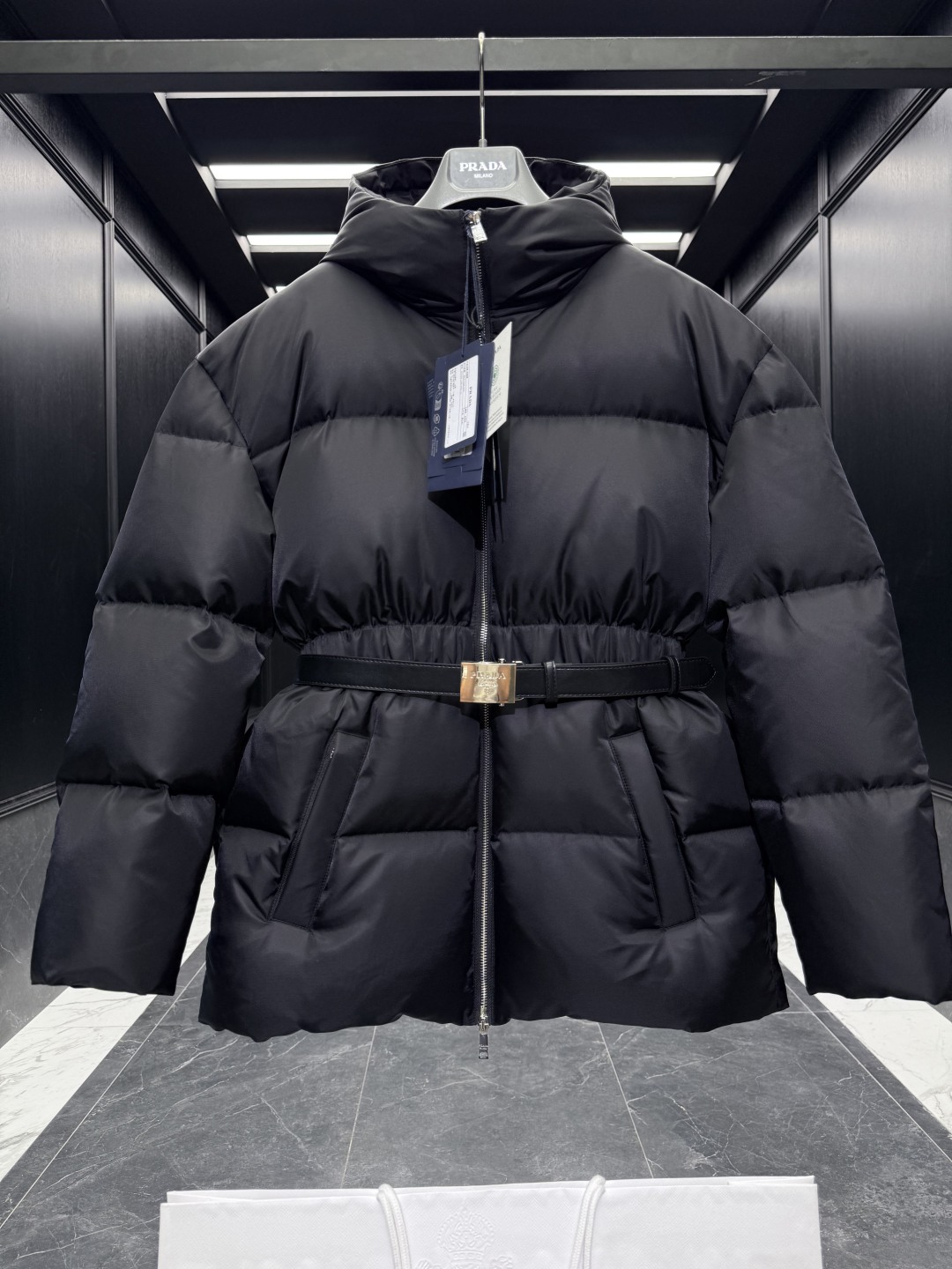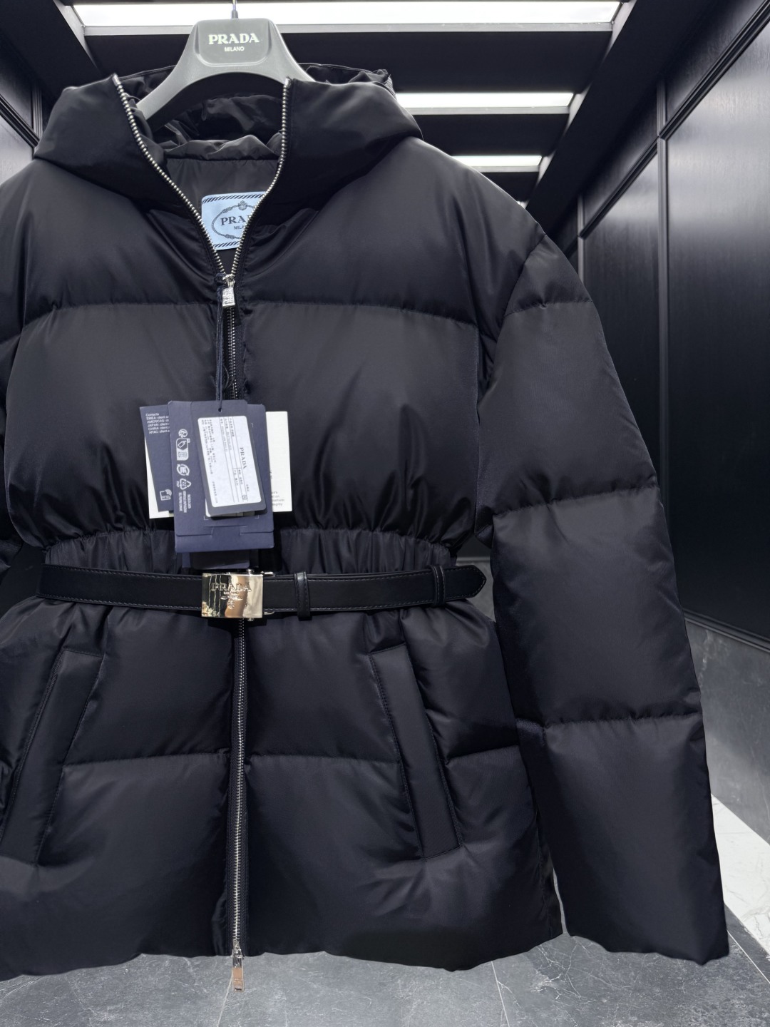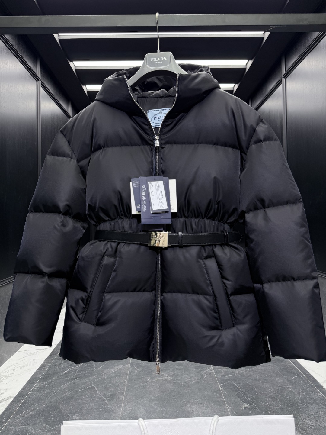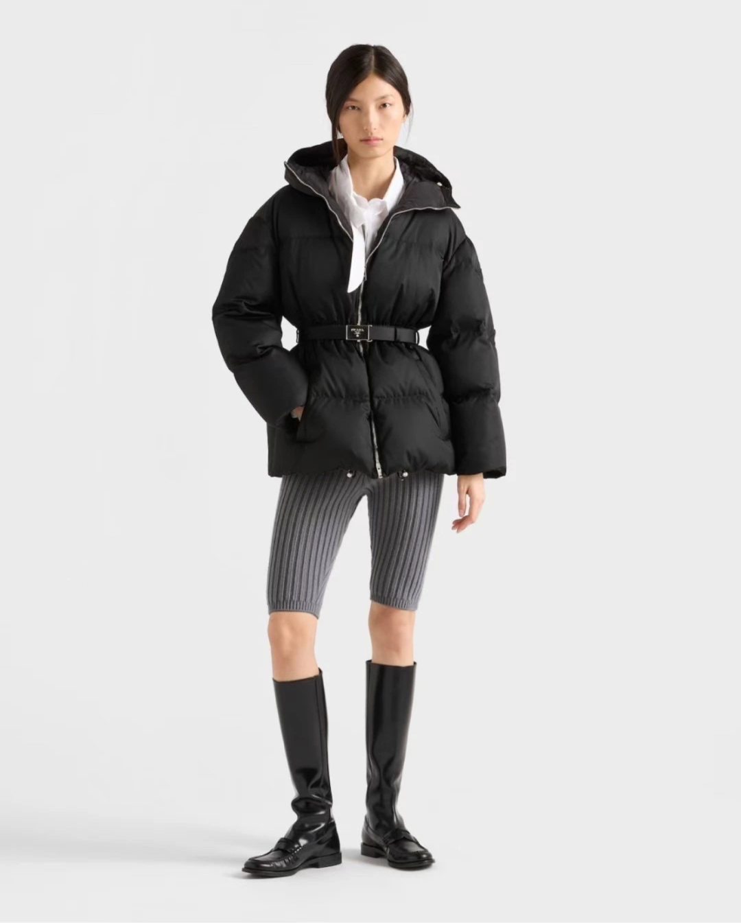 [프라다] 후드 벨트 푸퍼 자켓 패딩