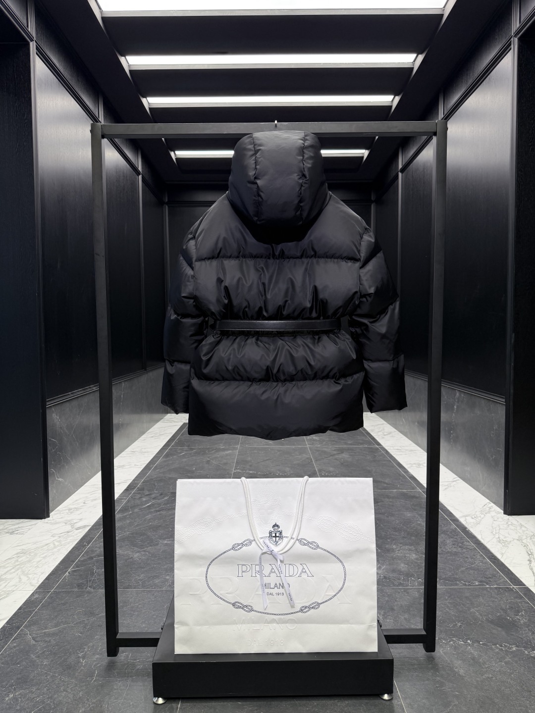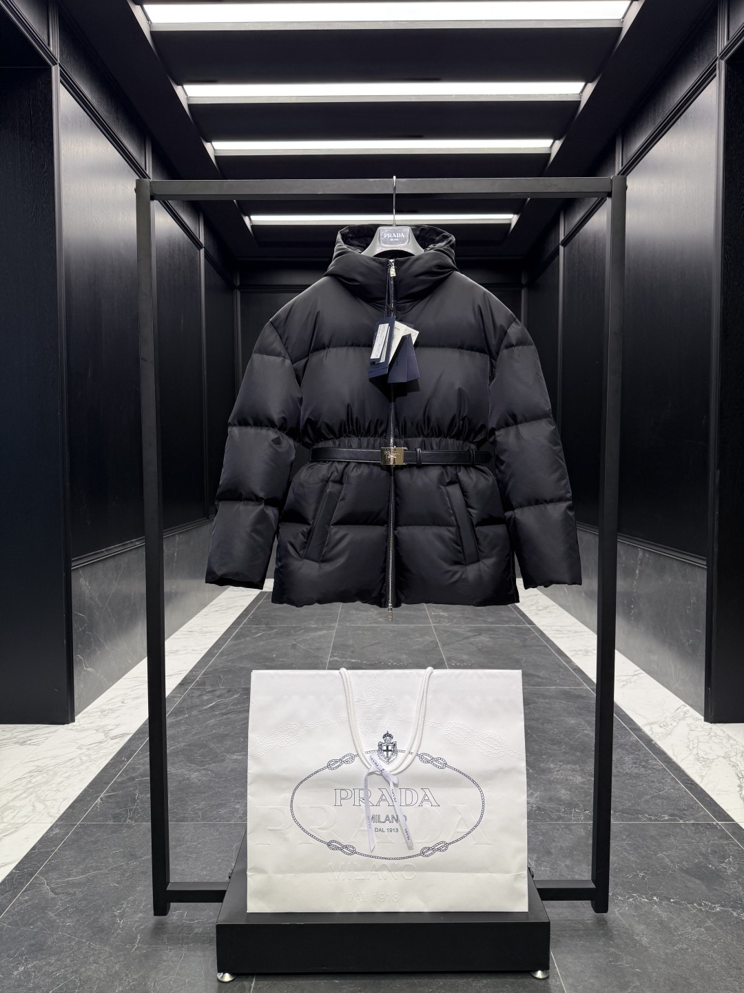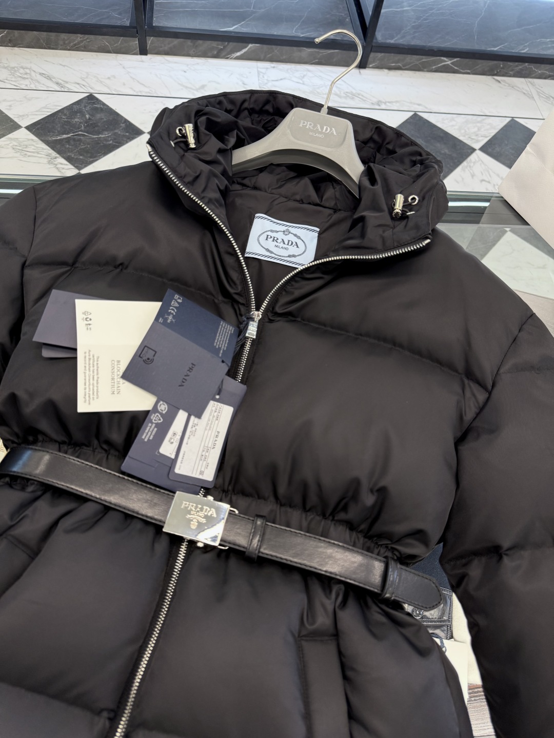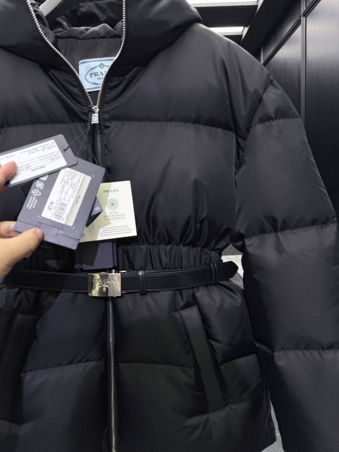 [프라다] 후드 벨트 푸퍼 자켓 패딩