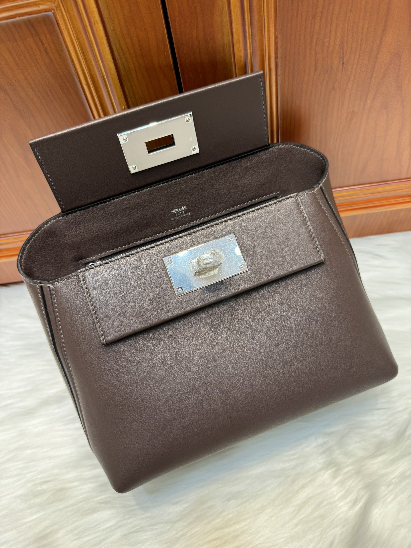 제품 이름: 24/24 Mini 사이즈: 21*16*14 가죽 종류: Swift 색상: Rouge Sellier