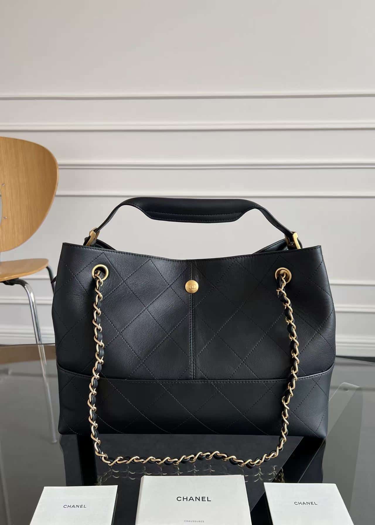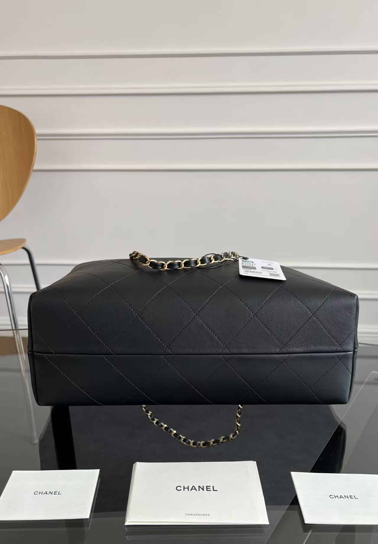 [샤넬] 쇼핑백 카프스킨 & 골드 메탈 블랙 AS4921