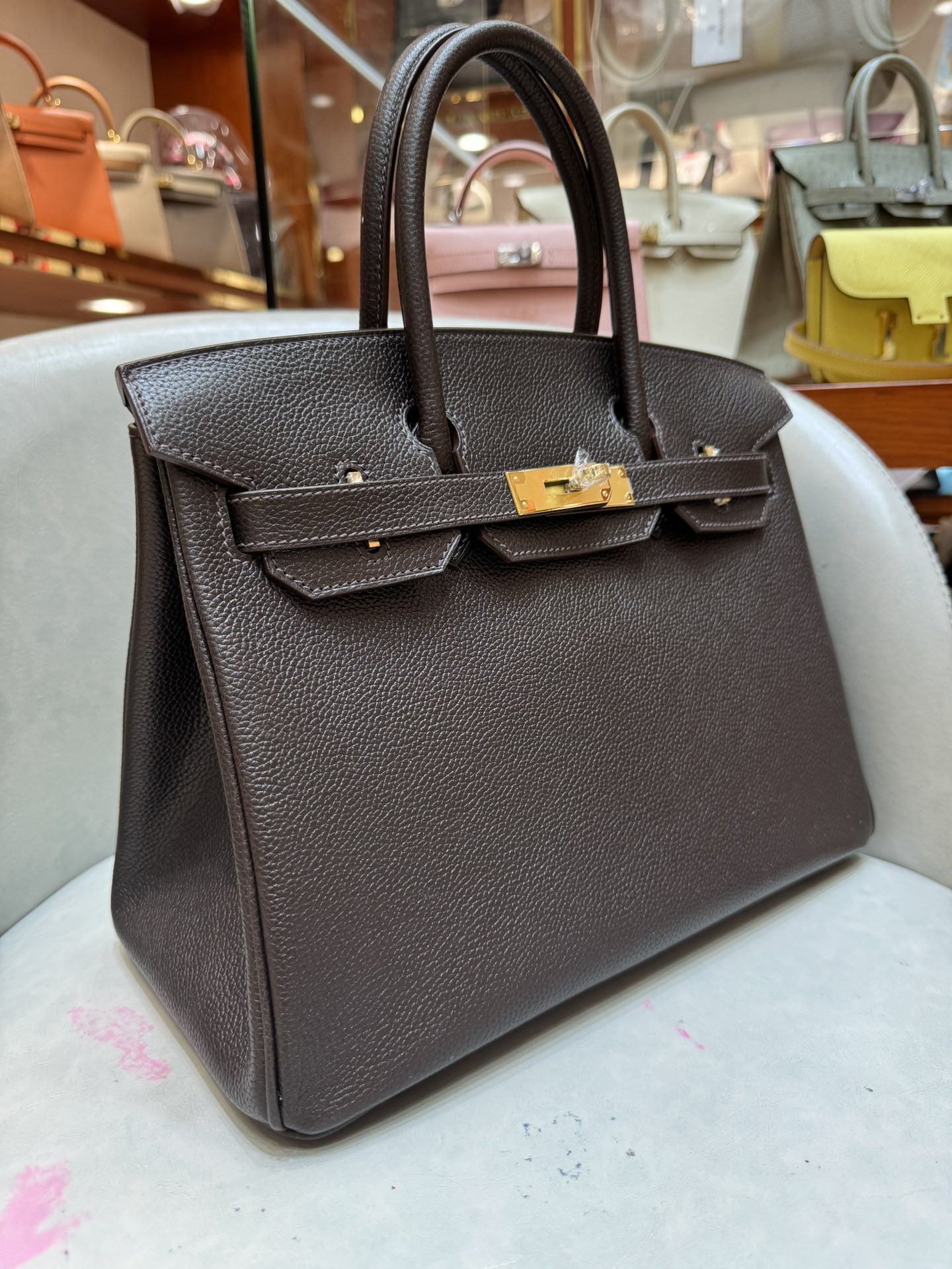 제품 이름: Birkin 사이즈: 30*22*16 가죽 종류: Barenia Faubourg 색상: Ebene
